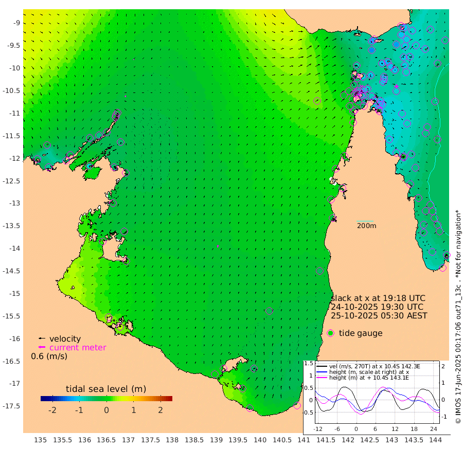 10cm/s -52T +3cm/s rms + 7cm/s -42T. ARA-GOC87 57m 23cm/s 8T +3cm/s rms + 2cm/s -2T. ARA-GOC87 60m 5cm/s -74T +2cm/s rms + 3cm/s 61T. ARA-GOC87 47m -114cm Daru -108cm Bobo Island -58cm Meer Island Barge -82cm Bramble Cay -101cm Unnamed Cay -102cm Pearce Cay -88cm Stephens Island -96cm Merrie England Shoals -112cm Mutacomal Reef -84cm Darnley Island Barge -64cm East Cay -96cm Yorke Island Barge -98cm Rennel Island -98cm Aureed Island -110cm Dungeness Reef -114cm Zagai Island -111cm Yam Island -122cm Dauan Island -115cm Saibai Island -142cm Phipi Reef -129cm Warrior Reef - West -87cm Mabuiag Island Barge -89cm Half Way Island -108cm Coconut Island -97cm Dugong Islet -105cm Poll Island -104cm Kirkcaldie Reef -110cm Suarji Island -104cm Sue Islet -58cm Hawkesbury Island -99cm Alert Patches -97cm Twin Island -78cm Badu Island -101cm St Pauls (Moa Island) -67cm Kubin (Moa Island) -83cm Ince Point -72cm Thursday Island -77cm Nardana Patches -71cm Turtle Head -60cm Round Island -50cm Goods Island -21cm Booby Island -27cm White Rocks Area 25cm Carpentaria -86cm Papou Point -28cm Bampfield Head -10cm Crab Island -19cm Red Wallis Island -56cm Packe Island -102cm Harrington Reef -43cm Herald Camp -28cm Sharp Point -64cm Red Island Point -76cm Possession Island -88cm Alpha Rock -102cm Frederick Point -111cm Wyborn Reef Light -111cm Tetley Island -64cm Triangle Reef -102cm Turtle Head Island -57cm Maclennan Cay -44cm Raine Island -90cm Mcsweeny Reef -86cm Collette Reef -63cm Shadwell Reef -92cm Hannibal Island -82cm Round Point 12cm Vrilya Point -68cm Cape Grenville -67cm Hicks Island -74cm Sir Charles Hardy Island -20cm Harvey Island -61cm Kay Reef -55cm Rocky Island -52cm Chapman Island -44cm Ham Reef -50cm Jubilee Reef -44cm Night Island -44cm Unnamed Reef No. 3 -53cm Morris Island -46cm 1st 3 Mile Opening -47cm Creech Reef -45cm Fife Island -54cm Eden Reef -48cm Stanley Island -52cm Normanby River -39cm Yabooma Island -68cm Hutchison River -39cm Elcho Island -37cm North West Crocodile Island -26cm Cape Wessel -42cm Stevens Island -64cm Guluwuru Island -36cm Hopeful Bay -29cm Auster Point -23cm Two Island Bay -66cm Cadell Strait -103cm Mallison Island -56cm Melville Bay (Gove Harbour) -53cm Truant Island -37cm Cape Arnhem -26cm Cape Grey -19cm Hawk Island 18cm Milner Bay (Groote Eylandt) 16cm Cape Beatrice 42cm West Island 46cm Centre Island -15cm Mornington Island -7cm West Wellesley Islands -48cm Bountiful Island -25cm Albert River Mouth -18cm Sweers Island -33cm Karumba -41cm Nassau River Offshore -50cm Christmas Creek -33cm Archer River -22cm Boyd Point -31cm Weipa (Humbug Point) 1cm Pennefather River 1cm Cullen Point