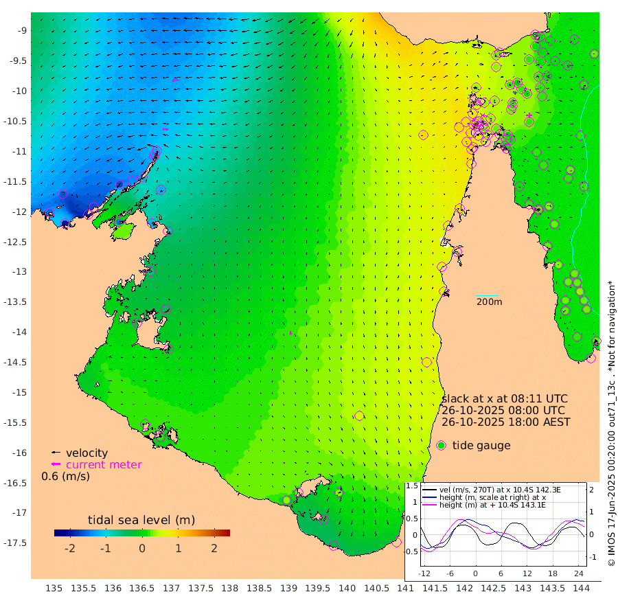 38cm/s -89T +3cm/s rms + 7cm/s -42T. ARA-GOC87 57m 24cm/s 172T +3cm/s rms + 2cm/s -2T. ARA-GOC87 60m 44cm/s -97T +2cm/s rms + 3cm/s 61T. ARA-GOC87 47m 9cm Daru 4cm Bobo Island 17cm Meer Island Barge 11cm Bramble Cay 10cm Unnamed Cay 12cm Pearce Cay 15cm Stephens Island 11cm Merrie England Shoals 11cm Mutacomal Reef 15cm Darnley Island Barge 23cm East Cay 13cm Yorke Island Barge 16cm Rennel Island 17cm Aureed Island 19cm Dungeness Reef 6cm Zagai Island 18cm Yam Island 26cm Dauan Island 26cm Saibai Island 30cm Phipi Reef 18cm Warrior Reef - West 36cm Mabuiag Island Barge 15cm Half Way Island 12cm Coconut Island 21cm Dugong Islet 17cm Poll Island 24cm Kirkcaldie Reef 35cm Suarji Island 20cm Sue Islet 79cm Hawkesbury Island 42cm Alert Patches 35cm Twin Island 59cm Badu Island 32cm St Pauls (Moa Island) 59cm Kubin (Moa Island) 46cm Ince Point 55cm Thursday Island 51cm Nardana Patches 66cm Turtle Head 65cm Round Island 78cm Goods Island 93cm Booby Island 85cm White Rocks Area 90cm Carpentaria 24cm Papou Point 92cm Bampfield Head 75cm Crab Island 91cm Red Wallis Island 78cm Packe Island 21cm Harrington Reef 100cm Herald Camp 9cm Sharp Point 63cm Red Island Point 48cm Possession Island 25cm Alpha Rock 27cm Frederick Point 5cm Wyborn Reef Light 7cm Tetley Island 20cm Triangle Reef 8cm Turtle Head Island 26cm Maclennan Cay 22cm Raine Island 16cm Mcsweeny Reef 16cm Collette Reef 19cm Shadwell Reef 13cm Hannibal Island 16cm Round Point 79cm Vrilya Point 24cm Cape Grenville 21cm Hicks Island 31cm Sir Charles Hardy Island 8cm Harvey Island 25cm Kay Reef 26cm Rocky Island 30cm Chapman Island 29cm Ham Reef 23cm Jubilee Reef 24cm Night Island 31cm Unnamed Reef No. 3 24cm Morris Island 24cm 1st 3 Mile Opening 28cm Creech Reef 28cm Fife Island 22cm Eden Reef 27cm Stanley Island 25cm Normanby River -156cm Yabooma Island -197cm Hutchison River -172cm Elcho Island -162cm North West Crocodile Island -125cm Cape Wessel -170cm Stevens Island -138cm Guluwuru Island -141cm Hopeful Bay -133cm Auster Point -139cm Two Island Bay -185cm Cadell Strait -145cm Mallison Island -120cm Melville Bay (Gove Harbour) -127cm Truant Island -84cm Cape Arnhem -60cm Cape Grey -47cm Hawk Island -34cm Milner Bay (Groote Eylandt) -20cm Cape Beatrice 19cm West Island 20cm Centre Island 27cm Mornington Island 31cm West Wellesley Islands 34cm Bountiful Island -25cm Albert River Mouth -21cm Sweers Island 1cm Karumba 60cm Nassau River Offshore 78cm Christmas Creek 75cm Archer River 74cm Boyd Point 81cm Weipa (Humbug Point) 60cm Pennefather River 84cm Cullen Point