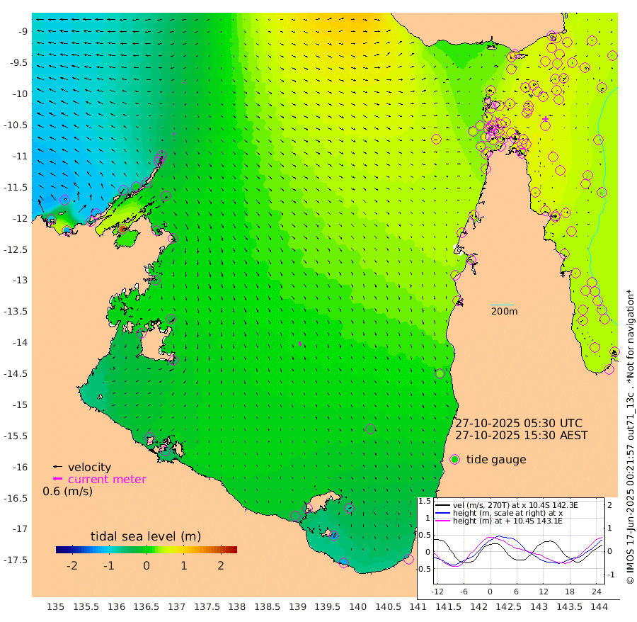10cm/s 125T +3cm/s rms + 7cm/s -42T. ARA-GOC87 57m 30cm/s 159T +3cm/s rms + 2cm/s -2T. ARA-GOC87 60m 4cm/s -141T +2cm/s rms + 3cm/s 61T. ARA-GOC87 47m 59cm Daru 53cm Bobo Island 44cm Meer Island Barge 49cm Bramble Cay 59cm Unnamed Cay 48cm Pearce Cay 50cm Stephens Island 58cm Merrie England Shoals 64cm Mutacomal Reef 57cm Darnley Island Barge 44cm East Cay 59cm Yorke Island Barge 51cm Rennel Island 54cm Aureed Island 53cm Dungeness Reef 61cm Zagai Island 58cm Yam Island 72cm Dauan Island 79cm Saibai Island 60cm Phipi Reef 67cm Warrior Reef - West 58cm Mabuiag Island Barge 49cm Half Way Island 56cm Coconut Island 54cm Dugong Islet 54cm Poll Island 53cm Kirkcaldie Reef 53cm Suarji Island 65cm Sue Islet 57cm Hawkesbury Island 60cm Alert Patches 58cm Twin Island 52cm Badu Island 58cm St Pauls (Moa Island) 53cm Kubin (Moa Island) 55cm Ince Point 55cm Thursday Island 55cm Nardana Patches 54cm Turtle Head 56cm Round Island 50cm Goods Island 51cm Booby Island 41cm White Rocks Area 61cm Carpentaria 45cm Papou Point 71cm Bampfield Head 40cm Crab Island 52cm Red Wallis Island 60cm Packe Island 51cm Harrington Reef 70cm Herald Camp 18cm Sharp Point 39cm Red Island Point 51cm Possession Island 63cm Alpha Rock 58cm Frederick Point 64cm Wyborn Reef Light 65cm Tetley Island 49cm Triangle Reef 52cm Turtle Head Island 43cm Maclennan Cay 37cm Raine Island 55cm Mcsweeny Reef 58cm Collette Reef 51cm Shadwell Reef 59cm Hannibal Island 51cm Round Point 44cm Vrilya Point 51cm Cape Grenville 44cm Hicks Island 60cm Sir Charles Hardy Island 14cm Harvey Island 51cm Kay Reef 43cm Rocky Island 50cm Chapman Island 47cm Ham Reef 44cm Jubilee Reef 40cm Night Island 46cm Unnamed Reef No. 3 41cm Morris Island 40cm 1st 3 Mile Opening 43cm Creech Reef 42cm Fife Island 45cm Eden Reef 46cm Stanley Island 40cm Normanby River -109cm Yabooma Island -126cm Hutchison River -119cm Elcho Island -124cm North West Crocodile Island -35cm Cape Wessel -79cm Stevens Island -2cm Guluwuru Island -69cm Hopeful Bay -55cm Auster Point -58cm Two Island Bay -74cm Cadell Strait 191cm Mallison Island -14cm Melville Bay (Gove Harbour) -8cm Truant Island -1cm Cape Arnhem -22cm Cape Grey -23cm Hawk Island -48cm Milner Bay (Groote Eylandt) -51cm Cape Beatrice -56cm West Island -54cm Centre Island -48cm Mornington Island -44cm West Wellesley Islands -68cm Bountiful Island -125cm Albert River Mouth -128cm Sweers Island -112cm Karumba -10cm Nassau River Offshore 29cm Christmas Creek 40cm Archer River 51cm Boyd Point 46cm Weipa (Humbug Point) 38cm Pennefather River 53cm Cullen Point