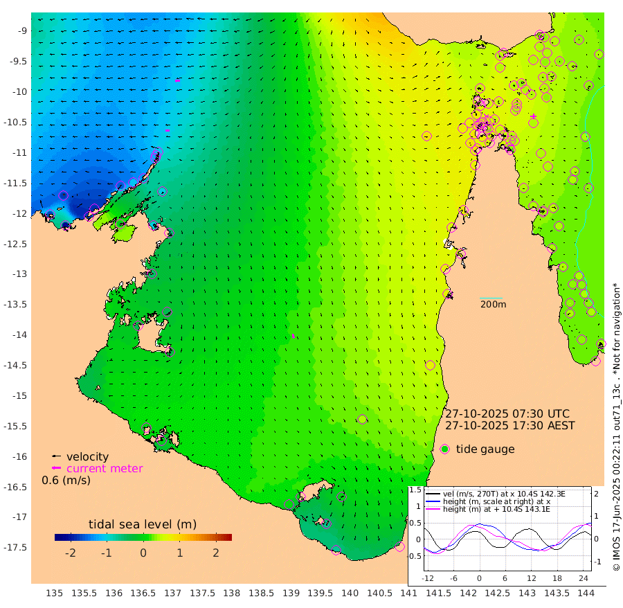 27cm/s -90T +3cm/s rms + 7cm/s -42T. ARA-GOC87 57m 30cm/s 166T +3cm/s rms + 2cm/s -2T. ARA-GOC87 60m 36cm/s -97T +2cm/s rms + 3cm/s 61T. ARA-GOC87 47m 38cm Daru 31cm Bobo Island 32cm Meer Island Barge 34cm Bramble Cay 39cm Unnamed Cay 34cm Pearce Cay 37cm Stephens Island 42cm Merrie England Shoals 45cm Mutacomal Reef 38cm Darnley Island Barge 38cm East Cay 38cm Yorke Island Barge 39cm Rennel Island 40cm Aureed Island 39cm Dungeness Reef 31cm Zagai Island 39cm Yam Island 44cm Dauan Island 49cm Saibai Island 41cm Phipi Reef 42cm Warrior Reef - West 48cm Mabuiag Island Barge 37cm Half Way Island 39cm Coconut Island 43cm Dugong Islet 40cm Poll Island 44cm Kirkcaldie Reef 49cm Suarji Island 45cm Sue Islet 76cm Hawkesbury Island 58cm Alert Patches 52cm Twin Island 57cm Badu Island 48cm St Pauls (Moa Island) 61cm Kubin (Moa Island) 57cm Ince Point 62cm Thursday Island 59cm Nardana Patches 67cm Turtle Head 67cm Round Island 71cm Goods Island 81cm Booby Island 74cm White Rocks Area 86cm Carpentaria 36cm Papou Point 90cm Bampfield Head 65cm Crab Island 84cm Red Wallis Island 81cm Packe Island 44cm Harrington Reef 96cm Herald Camp 15cm Sharp Point 58cm Red Island Point 54cm Possession Island 51cm Alpha Rock 49cm Frederick Point 40cm Wyborn Reef Light 42cm Tetley Island 38cm Triangle Reef 32cm Turtle Head Island 39cm Maclennan Cay 31cm Raine Island 41cm Mcsweeny Reef 42cm Collette Reef 38cm Shadwell Reef 41cm Hannibal Island 40cm Round Point 71cm Vrilya Point 45cm Cape Grenville 36cm Hicks Island 50cm Sir Charles Hardy Island 13cm Harvey Island 45cm Kay Reef 39cm Rocky Island 45cm Chapman Island 42cm Ham Reef 36cm Jubilee Reef 36cm Night Island 44cm Unnamed Reef No. 3 37cm Morris Island 32cm 1st 3 Mile Opening 39cm Creech Reef 42cm Fife Island 36cm Eden Reef 42cm Stanley Island 38cm Normanby River -169cm Yabooma Island -208cm Hutchison River -183cm Elcho Island -178cm North West Crocodile Island -109cm Cape Wessel -161cm Stevens Island -108cm Guluwuru Island -135cm Hopeful Bay -126cm Auster Point -132cm Two Island Bay -176cm Cadell Strait -11cm Mallison Island -98cm Melville Bay (Gove Harbour) -100cm Truant Island -64cm Cape Arnhem -57cm Cape Grey -44cm Hawk Island -44cm Milner Bay (Groote Eylandt) -33cm Cape Beatrice -5cm West Island -4cm Centre Island 3cm Mornington Island 7cm West Wellesley Islands -5cm Bountiful Island -70cm Albert River Mouth -68cm Sweers Island -45cm Karumba 42cm Nassau River Offshore 69cm Christmas Creek 69cm Archer River 72cm Boyd Point 73cm Weipa (Humbug Point) 57cm Pennefather River 79cm Cullen Point