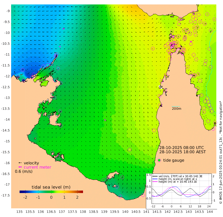 26cm/s -92T +3cm/s rms + 7cm/s -42T. ARA-GOC87 57m 32cm/s 167T +3cm/s rms + 2cm/s -2T. ARA-GOC87 60m 36cm/s -97T +2cm/s rms + 3cm/s 61T. ARA-GOC87 47m 60cm Daru 50cm Bobo Island 42cm Meer Island Barge 52cm Bramble Cay 62cm Unnamed Cay 52cm Pearce Cay 56cm Stephens Island 67cm Merrie England Shoals 70cm Mutacomal Reef 53cm Darnley Island Barge 51cm East Cay 54cm Yorke Island Barge 60cm Rennel Island 55cm Aureed Island 56cm Dungeness Reef 42cm Zagai Island 53cm Yam Island 48cm Dauan Island 50cm Saibai Island 46cm Phipi Reef 54cm Warrior Reef - West 52cm Mabuiag Island Barge 57cm Half Way Island 58cm Coconut Island 63cm Dugong Islet 56cm Poll Island 61cm Kirkcaldie Reef 59cm Suarji Island 59cm Sue Islet 81cm Hawkesbury Island 70cm Alert Patches 66cm Twin Island 62cm Badu Island 60cm St Pauls (Moa Island) 69cm Kubin (Moa Island) 67cm Ince Point 70cm Thursday Island 67cm Nardana Patches 74cm Turtle Head 72cm Round Island 75cm Goods Island 81cm Booby Island 77cm White Rocks Area 82cm Carpentaria 46cm Papou Point 90cm Bampfield Head 65cm Crab Island 86cm Red Wallis Island 90cm Packe Island 65cm Harrington Reef 98cm Herald Camp 18cm Sharp Point 62cm Red Island Point 61cm Possession Island 67cm Alpha Rock 66cm Frederick Point 64cm Wyborn Reef Light 65cm Tetley Island 49cm Triangle Reef 54cm Turtle Head Island 49cm Maclennan Cay 39cm Raine Island 60cm Mcsweeny Reef 60cm Collette Reef 50cm Shadwell Reef 61cm Hannibal Island 60cm Round Point 70cm Vrilya Point 61cm Cape Grenville 50cm Hicks Island 62cm Sir Charles Hardy Island 17cm Harvey Island 60cm Kay Reef 48cm Rocky Island 53cm Chapman Island 49cm Ham Reef 45cm Jubilee Reef 46cm Night Island 53cm Unnamed Reef No. 3 48cm Morris Island 40cm 1st 3 Mile Opening 48cm Creech Reef 54cm Fife Island 47cm Eden Reef 53cm Stanley Island 51cm Normanby River -153cm Yabooma Island -189cm Hutchison River -168cm Elcho Island -163cm North West Crocodile Island -99cm Cape Wessel -142cm Stevens Island -97cm Guluwuru Island -121cm Hopeful Bay -116cm Auster Point -120cm Two Island Bay -161cm Cadell Strait 16cm Mallison Island -88cm Melville Bay (Gove Harbour) -90cm Truant Island -59cm Cape Arnhem -56cm Cape Grey -42cm Hawk Island -47cm Milner Bay (Groote Eylandt) -35cm Cape Beatrice -11cm West Island -13cm Centre Island -1cm Mornington Island 3cm West Wellesley Islands -12cm Bountiful Island -73cm Albert River Mouth -76cm Sweers Island -49cm Karumba 42cm Nassau River Offshore 70cm Christmas Creek 69cm Archer River 71cm Boyd Point 72cm Weipa (Humbug Point) 57cm Pennefather River 78cm Cullen Point