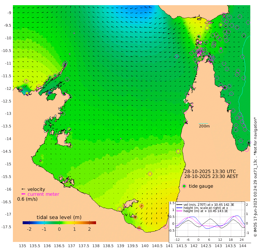 19cm/s -83T +3cm/s rms + 7cm/s -42T. ARA-GOC87 57m 16cm/s -107T +3cm/s rms + 2cm/s -2T. ARA-GOC87 60m 16cm/s -73T +2cm/s rms + 3cm/s 61T. ARA-GOC87 47m -14cm Daru -18cm Bobo Island -25cm Meer Island Barge -29cm Bramble Cay -29cm Unnamed Cay -15cm Pearce Cay -26cm Stephens Island -37cm Merrie England Shoals -27cm Mutacomal Reef -27cm Darnley Island Barge -29cm East Cay -21cm Yorke Island Barge -20cm Rennel Island -16cm Aureed Island 1cm Dungeness Reef 9cm Zagai Island 9cm Yam Island 47cm Dauan Island 26cm Saibai Island 68cm Phipi Reef 24cm Warrior Reef - West 14cm Mabuiag Island Barge -21cm Half Way Island -17cm Coconut Island -16cm Dugong Islet -2cm Poll Island -5cm Kirkcaldie Reef 14cm Suarji Island -9cm Sue Islet 1cm Hawkesbury Island 1cm Alert Patches -3cm Twin Island 12cm Badu Island 9cm St Pauls (Moa Island) 6cm Kubin (Moa Island) 3cm Ince Point 0cm Thursday Island 3cm Nardana Patches 7cm Turtle Head 2cm Round Island 0cm Goods Island -15cm Booby Island -16cm White Rocks Area -61cm Carpentaria 2cm Papou Point -36cm Bampfield Head -16cm Crab Island -20cm Red Wallis Island -3cm Packe Island -22cm Harrington Reef -3cm Herald Camp 4cm Sharp Point 6cm Red Island Point 4cm Possession Island -19cm Alpha Rock -11cm Frederick Point -29cm Wyborn Reef Light -27cm Tetley Island -22cm Triangle Reef -25cm Turtle Head Island -24cm Maclennan Cay -26cm Raine Island -28cm Mcsweeny Reef -30cm Collette Reef -28cm Shadwell Reef -33cm Hannibal Island -33cm Round Point -32cm Vrilya Point -34cm Cape Grenville -26cm Hicks Island -32cm Sir Charles Hardy Island -9cm Harvey Island -40cm Kay Reef -26cm Rocky Island -32cm Chapman Island -33cm Ham Reef -30cm Jubilee Reef -25cm Night Island -35cm Unnamed Reef No. 3 -29cm Morris Island -26cm 1st 3 Mile Opening -29cm Creech Reef -33cm Fife Island -31cm Eden Reef -36cm Stanley Island -35cm Normanby River 45cm Yabooma Island 63cm Hutchison River 52cm Elcho Island 59cm North West Crocodile Island -20cm Cape Wessel 15cm Stevens Island -18cm Guluwuru Island 19cm Hopeful Bay 2cm Auster Point 7cm Two Island Bay 33cm Cadell Strait -160cm Mallison Island -4cm Melville Bay (Gove Harbour) -17cm Truant Island -9cm Cape Arnhem 9cm Cape Grey 24cm Hawk Island 23cm Milner Bay (Groote Eylandt) 34cm Cape Beatrice 37cm West Island 36cm Centre Island 92cm Mornington Island 80cm West Wellesley Islands 134cm Bountiful Island 166cm Albert River Mouth 169cm Sweers Island 172cm Karumba 83cm Nassau River Offshore 51cm Christmas Creek 16cm Archer River -4cm Boyd Point 10cm Weipa (Humbug Point) -16cm Pennefather River -21cm Cullen Point