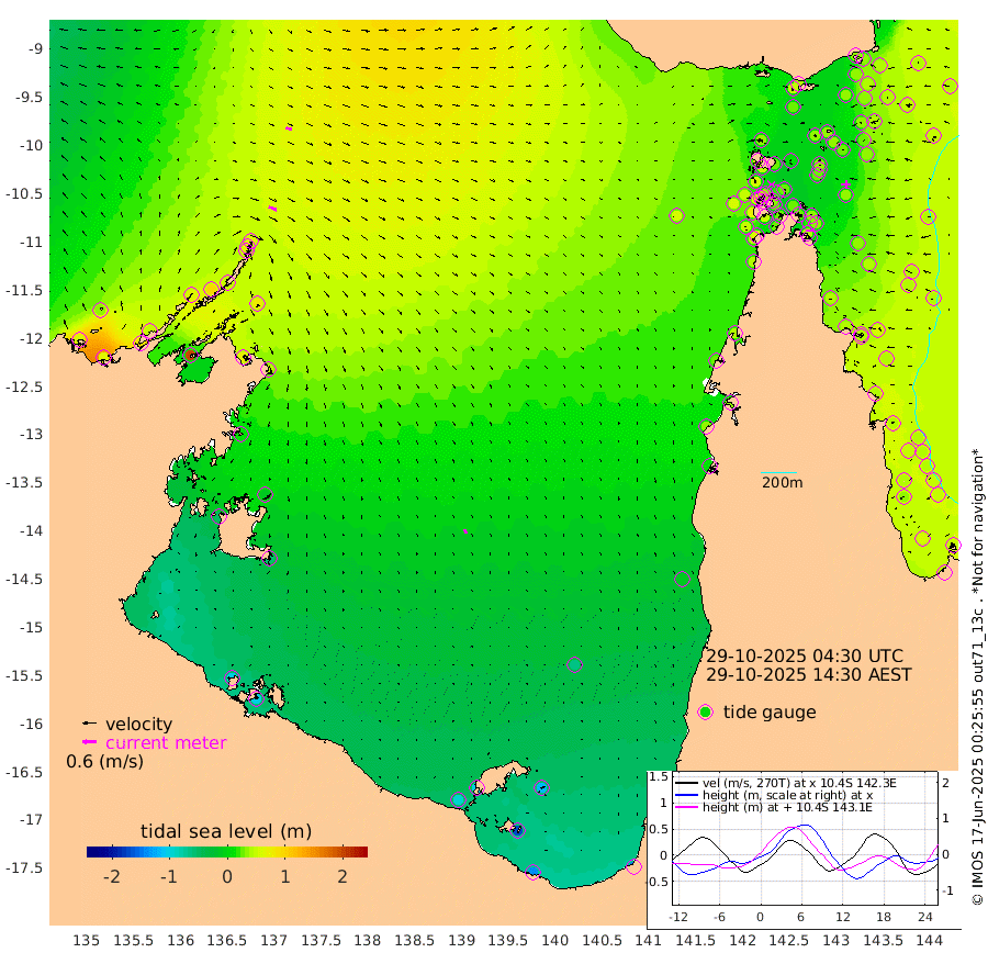 36cm/s 114T +3cm/s rms + 7cm/s -42T. ARA-GOC87 57m 19cm/s 153T +3cm/s rms + 2cm/s -2T. ARA-GOC87 60m 28cm/s 110T +2cm/s rms + 3cm/s 61T. ARA-GOC87 47m 35cm Daru 31cm Bobo Island 47cm Meer Island Barge 43cm Bramble Cay 42cm Unnamed Cay 33cm Pearce Cay 40cm Stephens Island 38cm Merrie England Shoals 33cm Mutacomal Reef 47cm Darnley Island Barge 40cm East Cay 42cm Yorke Island Barge 32cm Rennel Island 30cm Aureed Island 31cm Dungeness Reef 32cm Zagai Island 32cm Yam Island 48cm Dauan Island 42cm Saibai Island 27cm Phipi Reef 32cm Warrior Reef - West 32cm Mabuiag Island Barge 35cm Half Way Island 27cm Coconut Island 34cm Dugong Islet 27cm Poll Island 28cm Kirkcaldie Reef 13cm Suarji Island 32cm Sue Islet 58cm Hawkesbury Island 22cm Alert Patches 24cm Twin Island 54cm Badu Island 26cm St Pauls (Moa Island) 52cm Kubin (Moa Island) 30cm Ince Point 35cm Thursday Island 33cm Nardana Patches 43cm Turtle Head 47cm Round Island 56cm Goods Island 59cm Booby Island 48cm White Rocks Area 53cm Carpentaria 24cm Papou Point 70cm Bampfield Head 46cm Crab Island 52cm Red Wallis Island 50cm Packe Island 22cm Harrington Reef 63cm Herald Camp 0cm Sharp Point 25cm Red Island Point 26cm Possession Island 25cm Alpha Rock 24cm Frederick Point 35cm Wyborn Reef Light 33cm Tetley Island 39cm Triangle Reef 41cm Turtle Head Island 42cm Maclennan Cay 43cm Raine Island 37cm Mcsweeny Reef 38cm Collette Reef 44cm Shadwell Reef 42cm Hannibal Island 40cm Round Point 44cm Vrilya Point 39cm Cape Grenville 42cm Hicks Island 55cm Sir Charles Hardy Island 12cm Harvey Island 42cm Kay Reef 42cm Rocky Island 43cm Chapman Island 43cm Ham Reef 46cm Jubilee Reef 38cm Night Island 40cm Unnamed Reef No. 3 43cm Morris Island 51cm 1st 3 Mile Opening 45cm Creech Reef 36cm Fife Island 55cm Eden Reef 47cm Stanley Island 43cm Normanby River 57cm Yabooma Island 66cm Hutchison River 46cm Elcho Island 35cm North West Crocodile Island 64cm Cape Wessel 61cm Stevens Island 96cm Guluwuru Island 50cm Hopeful Bay 59cm Auster Point 68cm Two Island Bay 90cm Cadell Strait 200cm Mallison Island 71cm Melville Bay (Gove Harbour) 82cm Truant Island 51cm Cape Arnhem 11cm Cape Grey -12cm Hawk Island -48cm Milner Bay (Groote Eylandt) -60cm Cape Beatrice -99cm West Island -100cm Centre Island -102cm Mornington Island -97cm West Wellesley Islands -115cm Bountiful Island -142cm Albert River Mouth -165cm Sweers Island -149cm Karumba -61cm Nassau River Offshore -15cm Christmas Creek 14cm Archer River 33cm Boyd Point 33cm Weipa (Humbug Point) 28cm Pennefather River 43cm Cullen Point