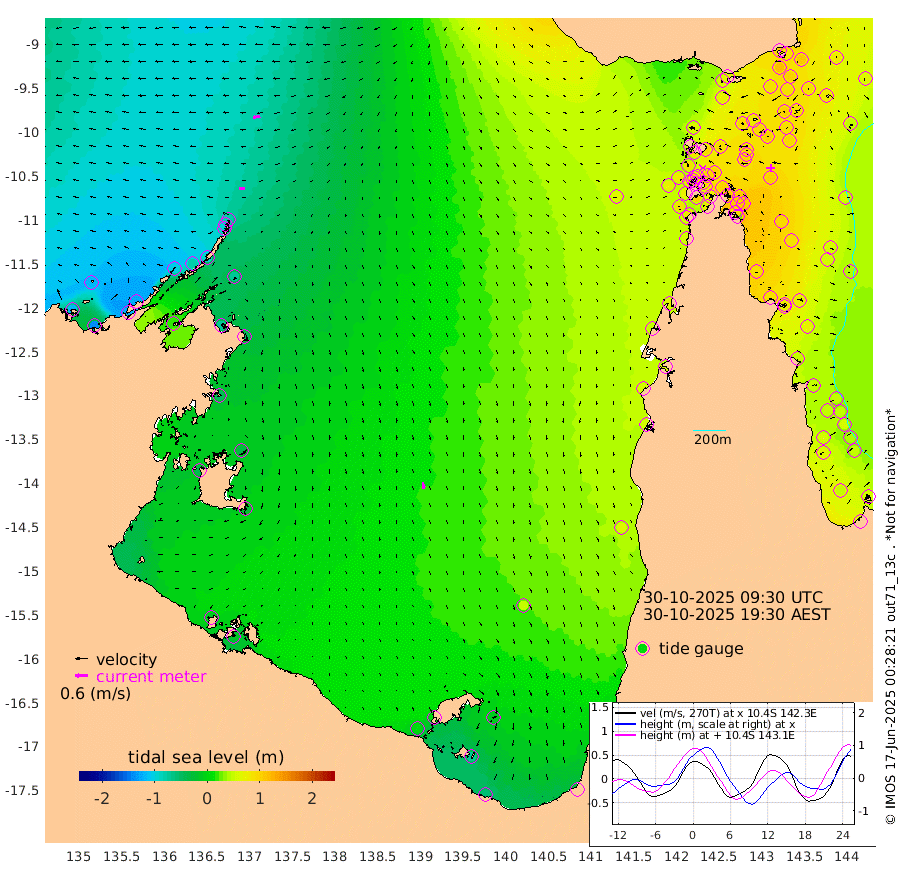 25cm/s -94T +3cm/s rms + 7cm/s -42T. ARA-GOC87 57m 32cm/s 171T +3cm/s rms + 2cm/s -2T. ARA-GOC87 60m 35cm/s -99T +2cm/s rms + 3cm/s 61T. ARA-GOC87 47m 102cm Daru 89cm Bobo Island 51cm Meer Island Barge 77cm Bramble Cay 98cm Unnamed Cay 87cm Pearce Cay 87cm Stephens Island 106cm Merrie England Shoals 117cm Mutacomal Reef 75cm Darnley Island Barge 64cm East Cay 83cm Yorke Island Barge 98cm Rennel Island 86cm Aureed Island 94cm Dungeness Reef 75cm Zagai Island 91cm Yam Island 65cm Dauan Island 62cm Saibai Island 69cm Phipi Reef 89cm Warrior Reef - West 66cm Mabuiag Island Barge 96cm Half Way Island 98cm Coconut Island 103cm Dugong Islet 96cm Poll Island 103cm Kirkcaldie Reef 91cm Suarji Island 90cm Sue Islet 83cm Hawkesbury Island 100cm Alert Patches 100cm Twin Island 70cm Badu Island 94cm St Pauls (Moa Island) 84cm Kubin (Moa Island) 92cm Ince Point 89cm Thursday Island 88cm Nardana Patches 86cm Turtle Head 77cm Round Island 76cm Goods Island 71cm Booby Island 75cm White Rocks Area 60cm Carpentaria 77cm Papou Point 70cm Bampfield Head 58cm Crab Island 83cm Red Wallis Island 101cm Packe Island 111cm Harrington Reef 89cm Herald Camp 28cm Sharp Point 73cm Red Island Point 77cm Possession Island 101cm Alpha Rock 105cm Frederick Point 109cm Wyborn Reef Light 110cm Tetley Island 59cm Triangle Reef 97cm Turtle Head Island 59cm Maclennan Cay 41cm Raine Island 91cm Mcsweeny Reef 85cm Collette Reef 59cm Shadwell Reef 90cm Hannibal Island 85cm Round Point 58cm Vrilya Point 80cm Cape Grenville 64cm Hicks Island 72cm Sir Charles Hardy Island 23cm Harvey Island 71cm Kay Reef 52cm Rocky Island 51cm Chapman Island 47cm Ham Reef 48cm Jubilee Reef 52cm Night Island 53cm Unnamed Reef No. 3 54cm Morris Island 41cm 1st 3 Mile Opening 50cm Creech Reef 61cm Fife Island 49cm Eden Reef 57cm Stanley Island 60cm Normanby River -117cm Yabooma Island -140cm Hutchison River -127cm Elcho Island -120cm North West Crocodile Island -80cm Cape Wessel -104cm Stevens Island -77cm Guluwuru Island -95cm Hopeful Bay -95cm Auster Point -96cm Two Island Bay -122cm Cadell Strait 16cm Mallison Island -69cm Melville Bay (Gove Harbour) -72cm Truant Island -49cm Cape Arnhem -49cm Cape Grey -36cm Hawk Island -45cm Milner Bay (Groote Eylandt) -28cm Cape Beatrice -10cm West Island -17cm Centre Island 3cm Mornington Island 5cm West Wellesley Islands -10cm Bountiful Island -54cm Albert River Mouth -69cm Sweers Island -35cm Karumba 46cm Nassau River Offshore 67cm Christmas Creek 57cm Archer River 57cm Boyd Point 58cm Weipa (Humbug Point) 48cm Pennefather River 62cm Cullen Point
