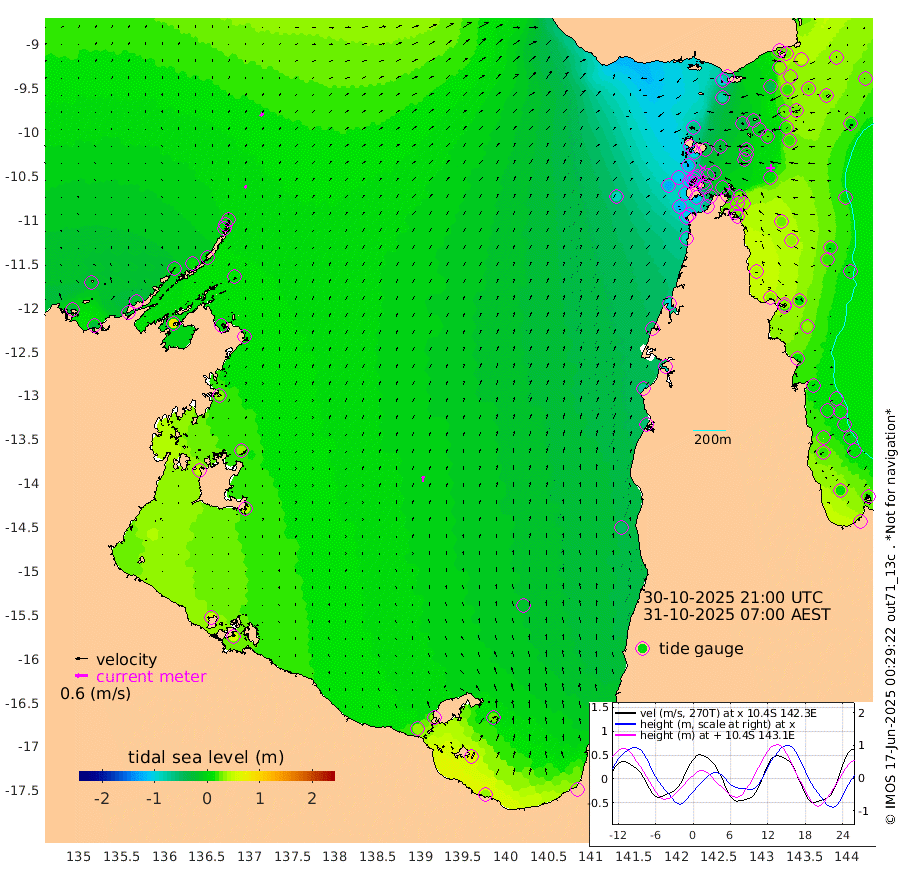 16cm/s 23T +3cm/s rms + 7cm/s -42T. ARA-GOC87 57m 27cm/s 4T +3cm/s rms + 2cm/s -2T. ARA-GOC87 60m 18cm/s 37T +2cm/s rms + 3cm/s 61T. ARA-GOC87 47m 23cm Daru 29cm Bobo Island 15cm Meer Island Barge 31cm Bramble Cay 34cm Unnamed Cay 21cm Pearce Cay 29cm Stephens Island 46cm Merrie England Shoals 33cm Mutacomal Reef 26cm Darnley Island Barge 23cm East Cay 23cm Yorke Island Barge 25cm Rennel Island 18cm Aureed Island -1cm Dungeness Reef -23cm Zagai Island -31cm Yam Island -95cm Dauan Island -70cm Saibai Island -76cm Phipi Reef -41cm Warrior Reef - West -65cm Mabuiag Island Barge 20cm Half Way Island 17cm Coconut Island 12cm Dugong Islet -9cm Poll Island -3cm Kirkcaldie Reef -27cm Suarji Island -2cm Sue Islet -113cm Hawkesbury Island -30cm Alert Patches -29cm Twin Island -108cm Badu Island -42cm St Pauls (Moa Island) -99cm Kubin (Moa Island) -56cm Ince Point -69cm Thursday Island -67cm Nardana Patches -90cm Turtle Head -88cm Round Island -114cm Goods Island -122cm Booby Island -109cm White Rocks Area -84cm Carpentaria -33cm Papou Point -100cm Bampfield Head -98cm Crab Island -118cm Red Wallis Island -108cm Packe Island 26cm Harrington Reef -122cm Herald Camp -6cm Sharp Point -67cm Red Island Point -44cm Possession Island -9cm Alpha Rock -5cm Frederick Point 30cm Wyborn Reef Light 23cm Tetley Island 5cm Triangle Reef 27cm Turtle Head Island 8cm Maclennan Cay 8cm Raine Island 30cm Mcsweeny Reef 33cm Collette Reef 18cm Shadwell Reef 39cm Hannibal Island 33cm Round Point -84cm Vrilya Point 30cm Cape Grenville 20cm Hicks Island 7cm Sir Charles Hardy Island 8cm Harvey Island 31cm Kay Reef 14cm Rocky Island 11cm Chapman Island 11cm Ham Reef 12cm Jubilee Reef 10cm Night Island 13cm Unnamed Reef No. 3 17cm Morris Island 5cm 1st 3 Mile Opening 11cm Creech Reef 20cm Fife Island 14cm Eden Reef 20cm Stanley Island 26cm Normanby River -26cm Yabooma Island -26cm Hutchison River -18cm Elcho Island -20cm North West Crocodile Island 11cm Cape Wessel 6cm Stevens Island 14cm Guluwuru Island 5cm Hopeful Bay 8cm Auster Point -6cm Two Island Bay -16cm Cadell Strait 85cm Mallison Island 13cm Melville Bay (Gove Harbour) 13cm Truant Island 13cm Cape Arnhem 32cm Cape Grey 32cm Hawk Island 51cm Milner Bay (Groote Eylandt) 44cm Cape Beatrice 58cm West Island 59cm Centre Island 35cm Mornington Island 37cm West Wellesley Islands 25cm Bountiful Island 36cm Albert River Mouth 70cm Sweers Island 32cm Karumba -18cm Nassau River Offshore -47cm Christmas Creek -56cm Archer River -68cm Boyd Point -83cm Weipa (Humbug Point) -52cm Pennefather River -91cm Cullen Point