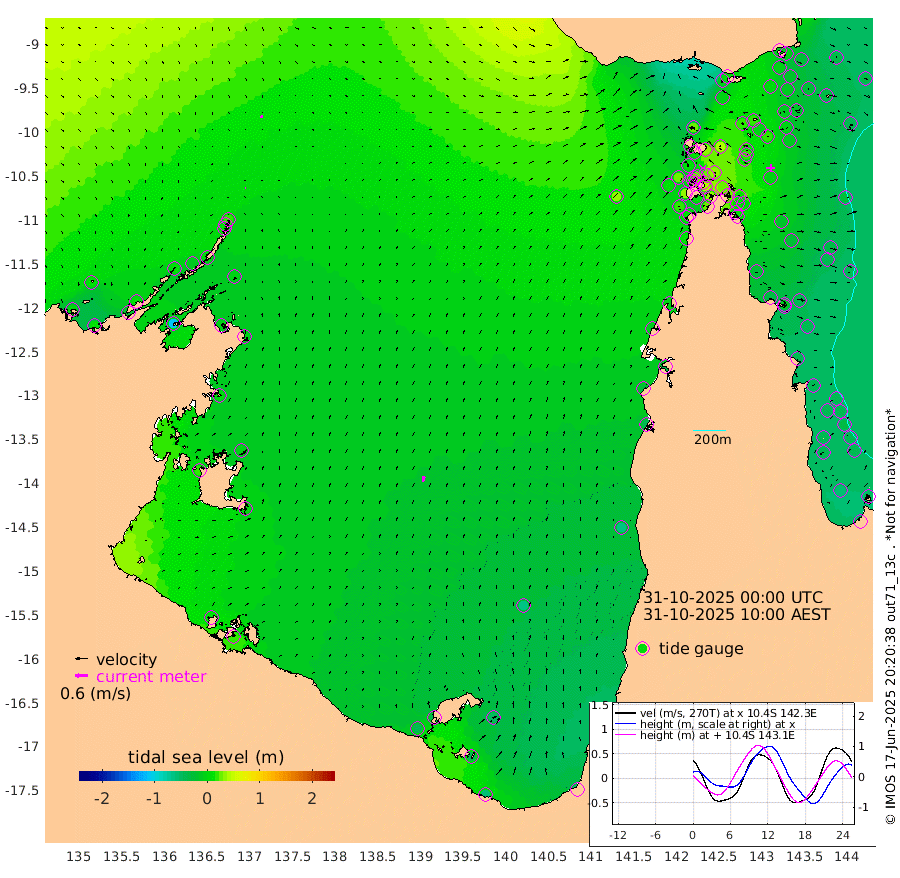 3cm/s 65T +3cm/s rms + 7cm/s -42T. ARA-GOC87 57m 29cm/s 12T +3cm/s rms + 2cm/s -2T. ARA-GOC87 60m 10cm/s 108T +2cm/s rms + 3cm/s 61T. ARA-GOC87 47m -8cm Daru 0cm Bobo Island -40cm Meer Island Barge -33cm Bramble Cay -21cm Unnamed Cay -13cm Pearce Cay -24cm Stephens Island -23cm Merrie England Shoals -6cm Mutacomal Reef -31cm Darnley Island Barge -35cm East Cay -18cm Yorke Island Barge -9cm Rennel Island -5cm Aureed Island -3cm Dungeness Reef 22cm Zagai Island 19cm Yam Island -4cm Dauan Island 11cm Saibai Island -3cm Phipi Reef 7cm Warrior Reef - West 29cm Mabuiag Island Barge -12cm Half Way Island 16cm Coconut Island -7cm Dugong Islet 16cm Poll Island 10cm Kirkcaldie Reef 39cm Suarji Island 13cm Sue Islet 9cm Hawkesbury Island 29cm Alert Patches 32cm Twin Island 19cm Badu Island 33cm St Pauls (Moa Island) 13cm Kubin (Moa Island) 27cm Ince Point 26cm Thursday Island 26cm Nardana Patches 13cm Turtle Head 22cm Round Island 8cm Goods Island 14cm Booby Island 24cm White Rocks Area 37cm Carpentaria 39cm Papou Point 35cm Bampfield Head 13cm Crab Island 16cm Red Wallis Island 7cm Packe Island 13cm Harrington Reef 3cm Herald Camp 11cm Sharp Point 26cm Red Island Point 34cm Possession Island 27cm Alpha Rock 24cm Frederick Point 7cm Wyborn Reef Light 13cm Tetley Island -26cm Triangle Reef 5cm Turtle Head Island -32cm Maclennan Cay -38cm Raine Island -18cm Mcsweeny Reef -24cm Collette Reef -38cm Shadwell Reef -29cm Hannibal Island -31cm Round Point 10cm Vrilya Point -33cm Cape Grenville -34cm Hicks Island -41cm Sir Charles Hardy Island -11cm Harvey Island -38cm Kay Reef -41cm Rocky Island -41cm Chapman Island -39cm Ham Reef -41cm Jubilee Reef -38cm Night Island -37cm Unnamed Reef No. 3 -42cm Morris Island -42cm 1st 3 Mile Opening -42cm Creech Reef -44cm Fife Island -56cm Eden Reef -48cm Stanley Island -46cm Normanby River 6cm Yabooma Island 11cm Hutchison River 13cm Elcho Island 14cm North West Crocodile Island 20cm Cape Wessel 10cm Stevens Island -11cm Guluwuru Island 2cm Hopeful Bay 15cm Auster Point 3cm Two Island Bay -17cm Cadell Strait -106cm Mallison Island -7cm Melville Bay (Gove Harbour) -2cm Truant Island -4cm Cape Arnhem 6cm Cape Grey -1cm Hawk Island 18cm Milner Bay (Groote Eylandt) 6cm Cape Beatrice 15cm West Island 21cm Centre Island -37cm Mornington Island -39cm West Wellesley Islands -51cm Bountiful Island -53cm Albert River Mouth -44cm Sweers Island -55cm Karumba -65cm Nassau River Offshore -64cm Christmas Creek -40cm Archer River -25cm Boyd Point -35cm Weipa (Humbug Point) -11cm Pennefather River -2cm Cullen Point