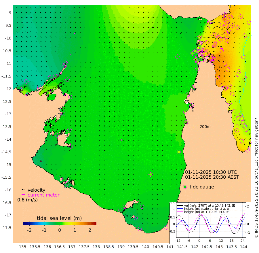 10cm/s -99T +3cm/s rms + 7cm/s -42T. ARA-GOC87 57m 28cm/s 169T +3cm/s rms + 2cm/s -2T. ARA-GOC87 60m 19cm/s -99T +2cm/s rms + 3cm/s 61T. ARA-GOC87 47m 136cm Daru 123cm Bobo Island 61cm Meer Island Barge 98cm Bramble Cay 127cm Unnamed Cay 117cm Pearce Cay 113cm Stephens Island 134cm Merrie England Shoals 150cm Mutacomal Reef 97cm Darnley Island Barge 73cm East Cay 110cm Yorke Island Barge 126cm Rennel Island 112cm Aureed Island 121cm Dungeness Reef 102cm Zagai Island 117cm Yam Island 70cm Dauan Island 68cm Saibai Island 76cm Phipi Reef 112cm Warrior Reef - West 66cm Mabuiag Island Barge 127cm Half Way Island 127cm Coconut Island 133cm Dugong Islet 123cm Poll Island 131cm Kirkcaldie Reef 104cm Suarji Island 115cm Sue Islet 54cm Hawkesbury Island 109cm Alert Patches 114cm Twin Island 49cm Badu Island 110cm St Pauls (Moa Island) 69cm Kubin (Moa Island) 93cm Ince Point 82cm Thursday Island 84cm Nardana Patches 68cm Turtle Head 48cm Round Island 43cm Goods Island 24cm Booby Island 35cm White Rocks Area 13cm Carpentaria 93cm Papou Point 13cm Bampfield Head 19cm Crab Island 40cm Red Wallis Island 73cm Packe Island 143cm Harrington Reef 41cm Herald Camp 34cm Sharp Point 60cm Red Island Point 71cm Possession Island 119cm Alpha Rock 128cm Frederick Point 142cm Wyborn Reef Light 141cm Tetley Island 66cm Triangle Reef 132cm Turtle Head Island 66cm Maclennan Cay 40cm Raine Island 115cm Mcsweeny Reef 104cm Collette Reef 66cm Shadwell Reef 113cm Hannibal Island 103cm Round Point 18cm Vrilya Point 92cm Cape Grenville 76cm Hicks Island 78cm Sir Charles Hardy Island 27cm Harvey Island 78cm Kay Reef 54cm Rocky Island 45cm Chapman Island 44cm Ham Reef 51cm Jubilee Reef 53cm Night Island 49cm Unnamed Reef No. 3 57cm Morris Island 40cm 1st 3 Mile Opening 50cm Creech Reef 61cm Fife Island 51cm Eden Reef 59cm Stanley Island 67cm Normanby River -64cm Yabooma Island -69cm Hutchison River -69cm Elcho Island -62cm North West Crocodile Island -34cm Cape Wessel -45cm Stevens Island -18cm Guluwuru Island -53cm Hopeful Bay -49cm Auster Point -44cm Two Island Bay -46cm Cadell Strait 72cm Mallison Island -22cm Melville Bay (Gove Harbour) -24cm Truant Island -17cm Cape Arnhem -23cm Cape Grey -20cm Hawk Island -34cm Milner Bay (Groote Eylandt) -20cm Cape Beatrice -14cm West Island -25cm Centre Island -5cm Mornington Island -4cm West Wellesley Islands -18cm Bountiful Island -45cm Albert River Mouth -68cm Sweers Island -36cm Karumba 28cm Nassau River Offshore 40cm Christmas Creek 24cm Archer River 23cm Boyd Point 18cm Weipa (Humbug Point) 18cm Pennefather River 18cm Cullen Point
