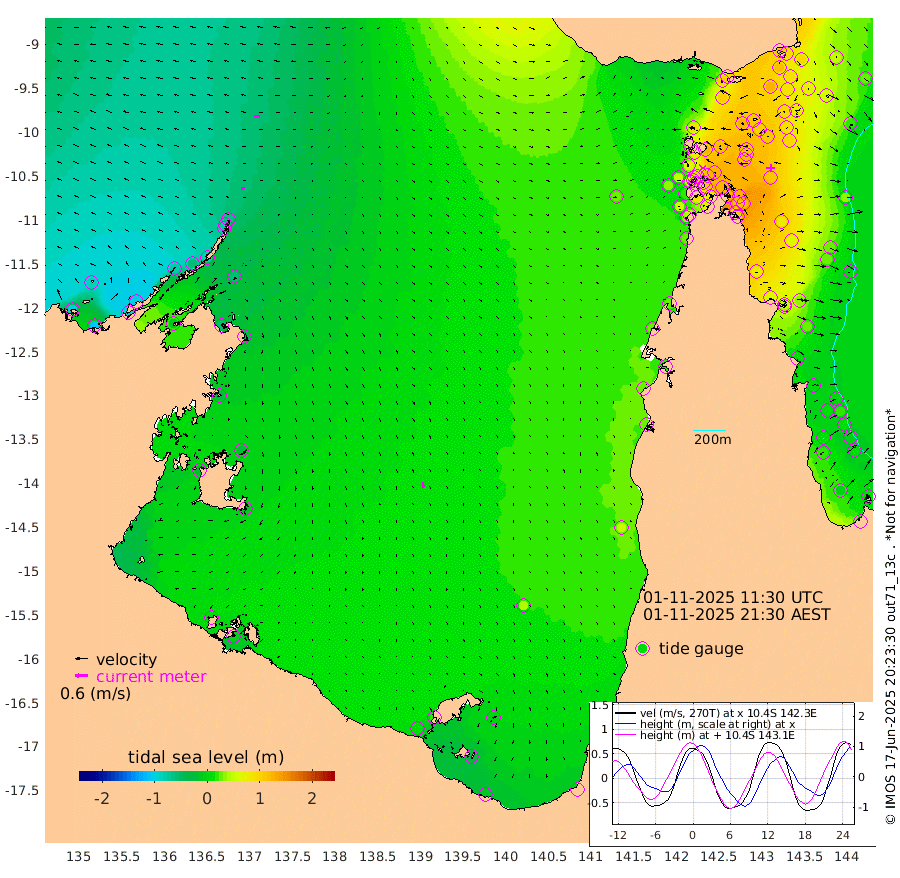 19cm/s -92T +3cm/s rms + 7cm/s -42T. ARA-GOC87 57m 25cm/s 173T +3cm/s rms + 2cm/s -2T. ARA-GOC87 60m 28cm/s -97T +2cm/s rms + 3cm/s 61T. ARA-GOC87 47m 109cm Daru 94cm Bobo Island 19cm Meer Island Barge 52cm Bramble Cay 87cm Unnamed Cay 83cm Pearce Cay 71cm Stephens Island 90cm Merrie England Shoals 120cm Mutacomal Reef 56cm Darnley Island Barge 28cm East Cay 77cm Yorke Island Barge 94cm Rennel Island 86cm Aureed Island 104cm Dungeness Reef 109cm Zagai Island 122cm Yam Island 99cm Dauan Island 94cm Saibai Island 102cm Phipi Reef 122cm Warrior Reef - West 89cm Mabuiag Island Barge 95cm Half Way Island 110cm Coconut Island 107cm Dugong Islet 118cm Poll Island 119cm Kirkcaldie Reef 118cm Suarji Island 109cm Sue Islet 64cm Hawkesbury Island 118cm Alert Patches 122cm Twin Island 67cm Badu Island 125cm St Pauls (Moa Island) 81cm Kubin (Moa Island) 107cm Ince Point 97cm Thursday Island 99cm Nardana Patches 81cm Turtle Head 61cm Round Island 53cm Goods Island 37cm Booby Island 47cm White Rocks Area 25cm Carpentaria 103cm Papou Point 21cm Bampfield Head 31cm Crab Island 55cm Red Wallis Island 86cm Packe Island 119cm Harrington Reef 52cm Herald Camp 43cm Sharp Point 71cm Red Island Point 82cm Possession Island 120cm Alpha Rock 122cm Frederick Point 116cm Wyborn Reef Light 122cm Tetley Island 37cm Triangle Reef 100cm Turtle Head Island 28cm Maclennan Cay 1cm Raine Island 79cm Mcsweeny Reef 65cm Collette Reef 28cm Shadwell Reef 69cm Hannibal Island 57cm Round Point 28cm Vrilya Point 48cm Cape Grenville 32cm Hicks Island 33cm Sir Charles Hardy Island 13cm Harvey Island 30cm Kay Reef 11cm Rocky Island 5cm Chapman Island 3cm Ham Reef 8cm Jubilee Reef 17cm Night Island 9cm Unnamed Reef No. 3 12cm Morris Island -1cm 1st 3 Mile Opening 8cm Creech Reef 17cm Fife Island -1cm Eden Reef 11cm Stanley Island 14cm Normanby River -100cm Yabooma Island -107cm Hutchison River -99cm Elcho Island -88cm North West Crocodile Island -66cm Cape Wessel -80cm Stevens Island -59cm Guluwuru Island -85cm Hopeful Bay -81cm Auster Point -78cm Two Island Bay -91cm Cadell Strait -10cm Mallison Island -54cm Melville Bay (Gove Harbour) -59cm Truant Island -38cm Cape Arnhem -37cm Cape Grey -23cm Hawk Island -28cm Milner Bay (Groote Eylandt) -11cm Cape Beatrice 6cm West Island -2cm Centre Island 16cm Mornington Island 13cm West Wellesley Islands 0cm Bountiful Island -15cm Albert River Mouth -37cm Sweers Island -4cm Karumba 41cm Nassau River Offshore 46cm Christmas Creek 26cm Archer River 26cm Boyd Point 21cm Weipa (Humbug Point) 23cm Pennefather River 28cm Cullen Point