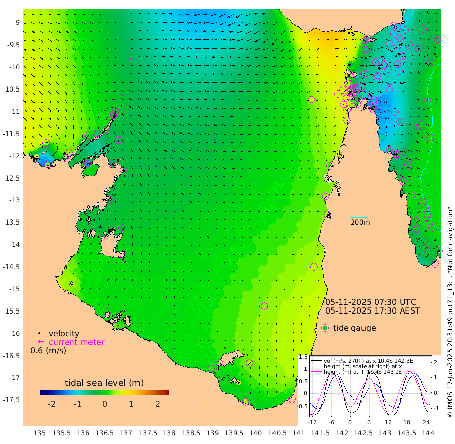28cm/s -88T +3cm/s rms + 7cm/s -42T. ARA-GOC87 57m 6cm/s -94T +3cm/s rms + 2cm/s -2T. ARA-GOC87 60m 24cm/s -100T +2cm/s rms + 3cm/s 61T. ARA-GOC87 47m -103cm Daru -101cm Bobo Island -25cm Meer Island Barge -51cm Bramble Cay -82cm Unnamed Cay -86cm Pearce Cay -73cm Stephens Island -84cm Merrie England Shoals -102cm Mutacomal Reef -65cm Darnley Island Barge -23cm East Cay -83cm Yorke Island Barge -86cm Rennel Island -88cm Aureed Island -90cm Dungeness Reef -98cm Zagai Island -88cm Yam Island -49cm Dauan Island -50cm Saibai Island -56cm Phipi Reef -91cm Warrior Reef - West -33cm Mabuiag Island Barge -90cm Half Way Island -103cm Coconut Island -94cm Dugong Islet -97cm Poll Island -96cm Kirkcaldie Reef -80cm Suarji Island -93cm Sue Islet 41cm Hawkesbury Island -73cm Alert Patches -82cm Twin Island 19cm Badu Island -84cm St Pauls (Moa Island) 2cm Kubin (Moa Island) -49cm Ince Point -30cm Thursday Island -35cm Nardana Patches 1cm Turtle Head 23cm Round Island 44cm Goods Island 67cm Booby Island 59cm White Rocks Area 47cm Carpentaria -72cm Papou Point 69cm Bampfield Head 48cm Crab Island 54cm Red Wallis Island 19cm Packe Island -109cm Harrington Reef 65cm Herald Camp -32cm Sharp Point 2cm Red Island Point -37cm Possession Island -83cm Alpha Rock -94cm Frederick Point -107cm Wyborn Reef Light -108cm Tetley Island -29cm Triangle Reef -109cm Turtle Head Island -20cm Maclennan Cay 2cm Raine Island -76cm Mcsweeny Reef -64cm Collette Reef -26cm Shadwell Reef -71cm Hannibal Island -50cm Round Point 39cm Vrilya Point -38cm Cape Grenville -29cm Hicks Island -16cm Sir Charles Hardy Island -12cm Harvey Island -19cm Kay Reef -3cm Rocky Island 8cm Chapman Island 6cm Ham Reef -5cm Jubilee Reef -11cm Night Island 3cm Unnamed Reef No. 3 -6cm Morris Island 0cm 1st 3 Mile Opening -4cm Creech Reef -8cm Fife Island 0cm Eden Reef -5cm Stanley Island -8cm Normanby River 51cm Yabooma Island 28cm Hutchison River 33cm Elcho Island 37cm North West Crocodile Island -12cm Cape Wessel 3cm Stevens Island -54cm Guluwuru Island 24cm Hopeful Bay 0cm Auster Point -3cm Two Island Bay -18cm Cadell Strait -139cm Mallison Island -34cm Melville Bay (Gove Harbour) -40cm Truant Island -34cm Cape Arnhem -19cm Cape Grey -17cm Hawk Island -4cm Milner Bay (Groote Eylandt) -1cm Cape Beatrice 9cm West Island 7cm Centre Island 17cm Mornington Island 21cm West Wellesley Islands 64cm Bountiful Island 45cm Albert River Mouth 49cm Sweers Island 51cm Karumba 35cm Nassau River Offshore 38cm Christmas Creek 45cm Archer River 40cm Boyd Point 62cm Weipa (Humbug Point) 17cm Pennefather River 53cm Cullen Point