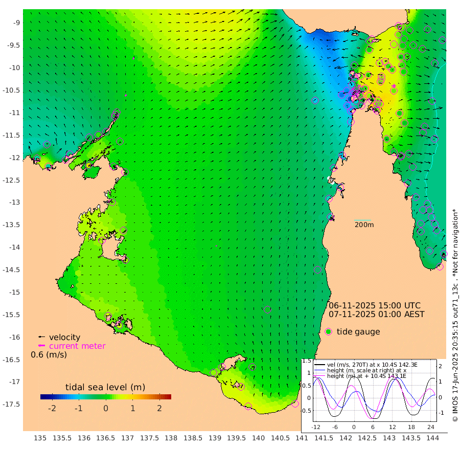 18cm/s 34T +3cm/s rms + 7cm/s -42T. ARA-GOC87 57m 9cm/s 22T +3cm/s rms + 2cm/s -2T. ARA-GOC87 60m 20cm/s 26T +2cm/s rms + 3cm/s 61T. ARA-GOC87 47m 26cm Daru 23cm Bobo Island -38cm Meer Island Barge -23cm Bramble Cay 4cm Unnamed Cay 3cm Pearce Cay -8cm Stephens Island 0cm Merrie England Shoals 26cm Mutacomal Reef -6cm Darnley Island Barge -45cm East Cay 15cm Yorke Island Barge 6cm Rennel Island 15cm Aureed Island 18cm Dungeness Reef 49cm Zagai Island 40cm Yam Island 22cm Dauan Island 38cm Saibai Island 12cm Phipi Reef 44cm Warrior Reef - West 3cm Mabuiag Island Barge 14cm Half Way Island 21cm Coconut Island 23cm Dugong Islet 32cm Poll Island 26cm Kirkcaldie Reef 22cm Suarji Island 42cm Sue Islet -109cm Hawkesbury Island 5cm Alert Patches 16cm Twin Island -93cm Badu Island 28cm St Pauls (Moa Island) -70cm Kubin (Moa Island) -12cm Ince Point -34cm Thursday Island -27cm Nardana Patches -75cm Turtle Head -94cm Round Island -126cm Goods Island -149cm Booby Island -140cm White Rocks Area -109cm Carpentaria 17cm Papou Point -165cm Bampfield Head -126cm Crab Island -133cm Red Wallis Island -100cm Packe Island 25cm Harrington Reef -131cm Herald Camp 26cm Sharp Point -63cm Red Island Point -30cm Possession Island 32cm Alpha Rock 22cm Frederick Point 27cm Wyborn Reef Light 33cm Tetley Island -29cm Triangle Reef 16cm Turtle Head Island -41cm Maclennan Cay -64cm Raine Island 0cm Mcsweeny Reef -9cm Collette Reef -36cm Shadwell Reef -9cm Hannibal Island -31cm Round Point -111cm Vrilya Point -32cm Cape Grenville -40cm Hicks Island -46cm Sir Charles Hardy Island -9cm Harvey Island -48cm Kay Reef -57cm Rocky Island -67cm Chapman Island -60cm Ham Reef -54cm Jubilee Reef -48cm Night Island -63cm Unnamed Reef No. 3 -60cm Morris Island -66cm 1st 3 Mile Opening -60cm Creech Reef -56cm Fife Island -71cm Eden Reef -60cm Stanley Island -58cm Normanby River -75cm Yabooma Island -77cm Hutchison River -65cm Elcho Island -57cm North West Crocodile Island -7cm Cape Wessel -33cm Stevens Island 20cm Guluwuru Island -45cm Hopeful Bay -25cm Auster Point -13cm Two Island Bay -19cm Cadell Strait 103cm Mallison Island 8cm Melville Bay (Gove Harbour) 8cm Truant Island 14cm Cape Arnhem 23cm Cape Grey 28cm Hawk Island 43cm Milner Bay (Groote Eylandt) 41cm Cape Beatrice 61cm West Island 56cm Centre Island 33cm Mornington Island 36cm West Wellesley Islands 21cm Bountiful Island 41cm Albert River Mouth 54cm Sweers Island 29cm Karumba -12cm Nassau River Offshore -49cm Christmas Creek -85cm Archer River -84cm Boyd Point -109cm Weipa (Humbug Point) -79cm Pennefather River -106cm Cullen Point