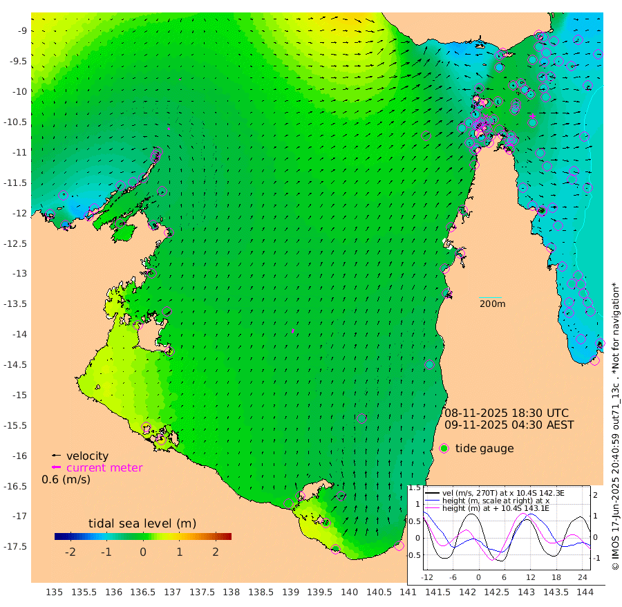 16cm/s -18T +3cm/s rms + 7cm/s -42T. ARA-GOC87 57m 30cm/s 16T +3cm/s rms + 2cm/s -2T. ARA-GOC87 60m 12cm/s -9T +2cm/s rms + 3cm/s 61T. ARA-GOC87 47m -91cm Daru -94cm Bobo Island -85cm Meer Island Barge -95cm Bramble Cay -92cm Unnamed Cay -105cm Pearce Cay -96cm Stephens Island -89cm Merrie England Shoals -86cm Mutacomal Reef -89cm Darnley Island Barge -94cm East Cay -85cm Yorke Island Barge -92cm Rennel Island -92cm Aureed Island -96cm Dungeness Reef -74cm Zagai Island -76cm Yam Island -90cm Dauan Island -65cm Saibai Island -112cm Phipi Reef -92cm Warrior Reef - West -54cm Mabuiag Island Barge -84cm Half Way Island -88cm Coconut Island -84cm Dugong Islet -79cm Poll Island -80cm Kirkcaldie Reef -82cm Suarji Island -62cm Sue Islet -92cm Hawkesbury Island -73cm Alert Patches -72cm Twin Island -100cm Badu Island -68cm St Pauls (Moa Island) -92cm Kubin (Moa Island) -71cm Ince Point -72cm Thursday Island -73cm Nardana Patches -95cm Turtle Head -86cm Round Island -103cm Goods Island -85cm Booby Island -87cm White Rocks Area -20cm Carpentaria -61cm Papou Point -87cm Bampfield Head -64cm Crab Island -81cm Red Wallis Island -102cm Packe Island -84cm Harrington Reef -96cm Herald Camp -6cm Sharp Point -77cm Red Island Point -71cm Possession Island -52cm Alpha Rock -77cm Frederick Point -82cm Wyborn Reef Light -77cm Tetley Island -81cm Triangle Reef -84cm Turtle Head Island -86cm Maclennan Cay -84cm Raine Island -87cm Mcsweeny Reef -85cm Collette Reef -80cm Shadwell Reef -93cm Hannibal Island -99cm Round Point -35cm Vrilya Point -87cm Cape Grenville -93cm Hicks Island -102cm Sir Charles Hardy Island -27cm Harvey Island -86cm Kay Reef -88cm Rocky Island -90cm Chapman Island -79cm Ham Reef -82cm Jubilee Reef -79cm Night Island -82cm Unnamed Reef No. 3 -90cm Morris Island -86cm 1st 3 Mile Opening -86cm Creech Reef -84cm Fife Island -104cm Eden Reef -85cm Stanley Island -92cm Normanby River -95cm Yabooma Island -131cm Hutchison River -94cm Elcho Island -88cm North West Crocodile Island -42cm Cape Wessel -71cm Stevens Island -62cm Guluwuru Island -68cm Hopeful Bay -52cm Auster Point -49cm Two Island Bay -101cm Cadell Strait -22cm Mallison Island -58cm Melville Bay (Gove Harbour) -56cm Truant Island -35cm Cape Arnhem -8cm Cape Grey -3cm Hawk Island 43cm Milner Bay (Groote Eylandt) 36cm Cape Beatrice 76cm West Island 76cm Centre Island -3cm Mornington Island 6cm West Wellesley Islands -33cm Bountiful Island -19cm Albert River Mouth 10cm Sweers Island -26cm Karumba -56cm Nassau River Offshore -80cm Christmas Creek -73cm Archer River -61cm Boyd Point -84cm Weipa (Humbug Point) -32cm Pennefather River -48cm Cullen Point