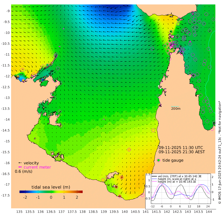 32cm/s -87T +3cm/s rms + 7cm/s -42T. ARA-GOC87 57m 19cm/s -101T +3cm/s rms + 2cm/s -2T. ARA-GOC87 60m 26cm/s -91T +2cm/s rms + 3cm/s 61T. ARA-GOC87 47m -34cm Daru -38cm Bobo Island -22cm Meer Island Barge -22cm Bramble Cay -33cm Unnamed Cay -30cm Pearce Cay -34cm Stephens Island -34cm Merrie England Shoals -33cm Mutacomal Reef -39cm Darnley Island Barge -18cm East Cay -42cm Yorke Island Barge -32cm Rennel Island -35cm Aureed Island -24cm Dungeness Reef -27cm Zagai Island -21cm Yam Island 12cm Dauan Island -6cm Saibai Island 34cm Phipi Reef -10cm Warrior Reef - West -5cm Mabuiag Island Barge -39cm Half Way Island -34cm Coconut Island -40cm Dugong Islet -28cm Poll Island -32cm Kirkcaldie Reef -11cm Suarji Island -41cm Sue Islet 13cm Hawkesbury Island -20cm Alert Patches -26cm Twin Island 22cm Badu Island -24cm St Pauls (Moa Island) 8cm Kubin (Moa Island) -12cm Ince Point -8cm Thursday Island -7cm Nardana Patches 13cm Turtle Head 13cm Round Island 24cm Goods Island 14cm Booby Island 20cm White Rocks Area -41cm Carpentaria -26cm Papou Point -3cm Bampfield Head 7cm Crab Island 13cm Red Wallis Island 19cm Packe Island -44cm Harrington Reef 18cm Herald Camp -9cm Sharp Point 7cm Red Island Point -11cm Possession Island -34cm Alpha Rock -34cm Frederick Point -42cm Wyborn Reef Light -42cm Tetley Island -17cm Triangle Reef -56cm Turtle Head Island -18cm Maclennan Cay -8cm Raine Island -35cm Mcsweeny Reef -31cm Collette Reef -19cm Shadwell Reef -32cm Hannibal Island -21cm Round Point -17cm Vrilya Point -23cm Cape Grenville -19cm Hicks Island -18cm Sir Charles Hardy Island -8cm Harvey Island -18cm Kay Reef -9cm Rocky Island -6cm Chapman Island -13cm Ham Reef -15cm Jubilee Reef -11cm Night Island -11cm Unnamed Reef No. 3 -10cm Morris Island -13cm 1st 3 Mile Opening -15cm Creech Reef -13cm Fife Island -10cm Eden Reef -16cm Stanley Island -15cm Normanby River 77cm Yabooma Island 90cm Hutchison River 82cm Elcho Island 87cm North West Crocodile Island -15cm Cape Wessel 39cm Stevens Island -38cm Guluwuru Island 47cm Hopeful Bay 8cm Auster Point 3cm Two Island Bay 23cm Cadell Strait -164cm Mallison Island -13cm Melville Bay (Gove Harbour) -28cm Truant Island -20cm Cape Arnhem -3cm Cape Grey 18cm Hawk Island 23cm Milner Bay (Groote Eylandt) 38cm Cape Beatrice 41cm West Island 39cm Centre Island 106cm Mornington Island 96cm West Wellesley Islands 163cm Bountiful Island 199cm Albert River Mouth 193cm Sweers Island 200cm Karumba 109cm Nassau River Offshore 77cm Christmas Creek 43cm Archer River 14cm Boyd Point 41cm Weipa (Humbug Point) -7cm Pennefather River 1cm Cullen Point