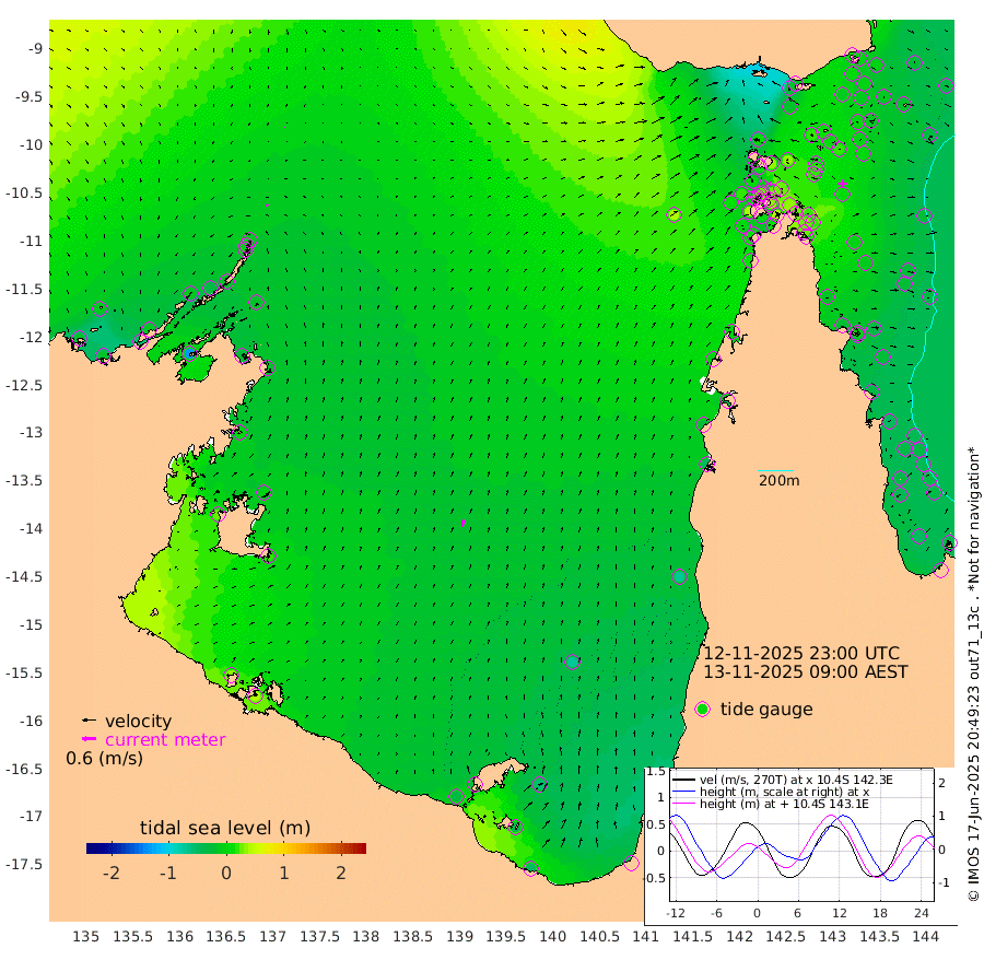 7cm/s -43T +3cm/s rms + 7cm/s -42T. ARA-GOC87 57m 32cm/s 11T +3cm/s rms + 2cm/s -2T. ARA-GOC87 60m 1cm/s 118T +2cm/s rms + 3cm/s 61T. ARA-GOC87 47m 2cm Daru -1cm Bobo Island -31cm Meer Island Barge -24cm Bramble Cay -4cm Unnamed Cay -15cm Pearce Cay -11cm Stephens Island -4cm Merrie England Shoals 6cm Mutacomal Reef -19cm Darnley Island Barge -31cm East Cay -8cm Yorke Island Barge 2cm Rennel Island -6cm Aureed Island 3cm Dungeness Reef 13cm Zagai Island 16cm Yam Island -26cm Dauan Island -18cm Saibai Island -20cm Phipi Reef -8cm Warrior Reef - West 13cm Mabuiag Island Barge 3cm Half Way Island 15cm Coconut Island 7cm Dugong Islet 17cm Poll Island 19cm Kirkcaldie Reef 32cm Suarji Island 14cm Sue Islet 1cm Hawkesbury Island 29cm Alert Patches 29cm Twin Island -1cm Badu Island 30cm St Pauls (Moa Island) 11cm Kubin (Moa Island) 24cm Ince Point 23cm Thursday Island 23cm Nardana Patches 7cm Turtle Head 27cm Round Island 0cm Goods Island 10cm Booby Island 16cm White Rocks Area 40cm Carpentaria 33cm Papou Point 45cm Bampfield Head 9cm Crab Island 7cm Red Wallis Island 1cm Packe Island 23cm Harrington Reef 12cm Herald Camp 11cm Sharp Point 8cm Red Island Point 38cm Possession Island 30cm Alpha Rock 24cm Frederick Point 17cm Wyborn Reef Light 20cm Tetley Island -27cm Triangle Reef 24cm Turtle Head Island -25cm Maclennan Cay -35cm Raine Island -7cm Mcsweeny Reef -14cm Collette Reef -29cm Shadwell Reef -15cm Hannibal Island -24cm Round Point 13cm Vrilya Point -19cm Cape Grenville -25cm Hicks Island -36cm Sir Charles Hardy Island -6cm Harvey Island -29cm Kay Reef -37cm Rocky Island -47cm Chapman Island -40cm Ham Reef -36cm Jubilee Reef -31cm Night Island -40cm Unnamed Reef No. 3 -35cm Morris Island -31cm 1st 3 Mile Opening -36cm Creech Reef -42cm Fife Island -50cm Eden Reef -36cm Stanley Island -38cm Normanby River -16cm Yabooma Island -20cm Hutchison River -12cm Elcho Island -12cm North West Crocodile Island -8cm Cape Wessel -13cm Stevens Island -32cm Guluwuru Island -19cm Hopeful Bay -4cm Auster Point -10cm Two Island Bay -53cm Cadell Strait -131cm Mallison Island -26cm Melville Bay (Gove Harbour) -22cm Truant Island -17cm Cape Arnhem 0cm Cape Grey -1cm Hawk Island 27cm Milner Bay (Groote Eylandt) 16cm Cape Beatrice 34cm West Island 41cm Centre Island -31cm Mornington Island -32cm West Wellesley Islands -55cm Bountiful Island -52cm Albert River Mouth -39cm Sweers Island -55cm Karumba -71cm Nassau River Offshore -72cm Christmas Creek -50cm Archer River -30cm Boyd Point -42cm Weipa (Humbug Point) -7cm Pennefather River -2cm Cullen Point