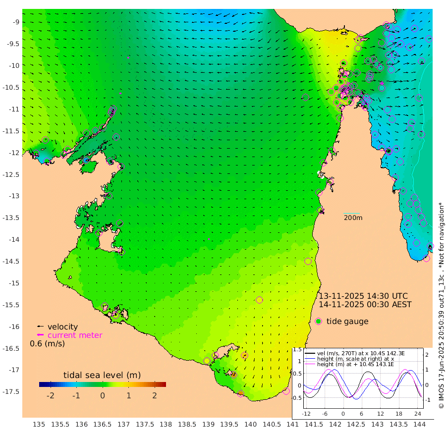 17cm/s -98T +3cm/s rms + 7cm/s -42T. ARA-GOC87 57m 14cm/s -106T +3cm/s rms + 2cm/s -2T. ARA-GOC87 60m 15cm/s -98T +2cm/s rms + 3cm/s 61T. ARA-GOC87 47m -83cm Daru -93cm Bobo Island -81cm Meer Island Barge -92cm Bramble Cay -98cm Unnamed Cay -90cm Pearce Cay -102cm Stephens Island -101cm Merrie England Shoals -89cm Mutacomal Reef -96cm Darnley Island Barge -91cm East Cay -90cm Yorke Island Barge -91cm Rennel Island -87cm Aureed Island -65cm Dungeness Reef -31cm Zagai Island -34cm Yam Island 41cm Dauan Island 26cm Saibai Island 44cm Phipi Reef -16cm Warrior Reef - West 19cm Mabuiag Island Barge -91cm Half Way Island -77cm Coconut Island -87cm Dugong Islet -53cm Poll Island -62cm Kirkcaldie Reef -31cm Suarji Island -53cm Sue Islet 18cm Hawkesbury Island -26cm Alert Patches -36cm Twin Island 37cm Badu Island -22cm St Pauls (Moa Island) 4cm Kubin (Moa Island) -11cm Ince Point -4cm Thursday Island -4cm Nardana Patches 10cm Turtle Head 0cm Round Island 21cm Goods Island 22cm Booby Island 14cm White Rocks Area -17cm Carpentaria -28cm Papou Point -23cm Bampfield Head 24cm Crab Island 18cm Red Wallis Island 8cm Packe Island -98cm Harrington Reef -2cm Herald Camp 0cm Sharp Point 8cm Red Island Point -24cm Possession Island -47cm Alpha Rock -61cm Frederick Point -91cm Wyborn Reef Light -84cm Tetley Island -66cm Triangle Reef -102cm Turtle Head Island -80cm Maclennan Cay -65cm Raine Island -94cm Mcsweeny Reef -89cm Collette Reef -72cm Shadwell Reef -99cm Hannibal Island -97cm Round Point 17cm Vrilya Point -93cm Cape Grenville -89cm Hicks Island -91cm Sir Charles Hardy Island -30cm Harvey Island -91cm Kay Reef -75cm Rocky Island -69cm Chapman Island -72cm Ham Reef -74cm Jubilee Reef -69cm Night Island -73cm Unnamed Reef No. 3 -80cm Morris Island -71cm 1st 3 Mile Opening -76cm Creech Reef -83cm Fife Island -85cm Eden Reef -84cm Stanley Island -96cm Normanby River 4cm Yabooma Island 7cm Hutchison River 14cm Elcho Island 22cm North West Crocodile Island -51cm Cape Wessel -13cm Stevens Island -57cm Guluwuru Island -9cm Hopeful Bay -33cm Auster Point -35cm Two Island Bay -16cm Cadell Strait -129cm Mallison Island -40cm Melville Bay (Gove Harbour) -53cm Truant Island -33cm Cape Arnhem -15cm Cape Grey 3cm Hawk Island 16cm Milner Bay (Groote Eylandt) 28cm Cape Beatrice 36cm West Island 38cm Centre Island 78cm Mornington Island 72cm West Wellesley Islands 105cm Bountiful Island 156cm Albert River Mouth 148cm Sweers Island 151cm Karumba 78cm Nassau River Offshore 52cm Christmas Creek 36cm Archer River 15cm Boyd Point 30cm Weipa (Humbug Point) 22cm Pennefather River 15cm Cullen Point