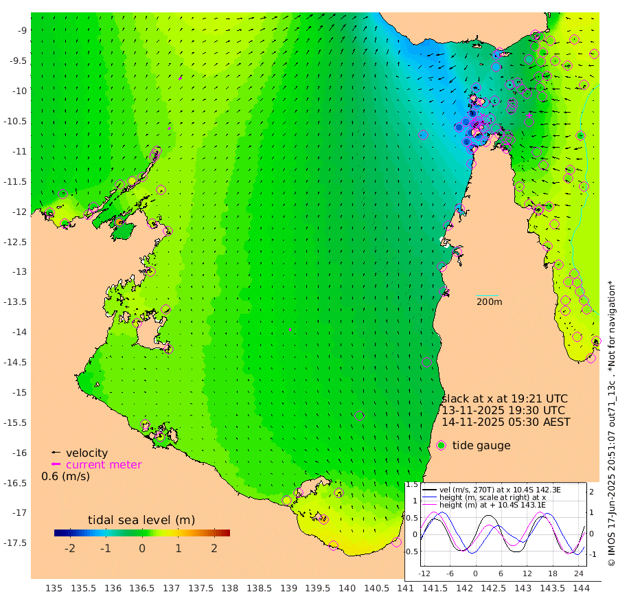 19cm/s 49T +3cm/s rms + 7cm/s -42T. ARA-GOC87 57m 18cm/s -11T +3cm/s rms + 2cm/s -2T. ARA-GOC87 60m 24cm/s 49T +2cm/s rms + 3cm/s 61T. ARA-GOC87 47m -5cm Daru 11cm Bobo Island 36cm Meer Island Barge 34cm Bramble Cay 14cm Unnamed Cay 16cm Pearce Cay 27cm Stephens Island 24cm Merrie England Shoals -6cm Mutacomal Reef 30cm Darnley Island Barge 39cm East Cay 12cm Yorke Island Barge 4cm Rennel Island 11cm Aureed Island -25cm Dungeness Reef -62cm Zagai Island -79cm Yam Island -125cm Dauan Island -113cm Saibai Island -113cm Phipi Reef -75cm Warrior Reef - West -124cm Mabuiag Island Barge 2cm Half Way Island -17cm Coconut Island -13cm Dugong Islet -49cm Poll Island -48cm Kirkcaldie Reef -77cm Suarji Island -48cm Sue Islet -178cm Hawkesbury Island -89cm Alert Patches -85cm Twin Island -163cm Badu Island -100cm St Pauls (Moa Island) -148cm Kubin (Moa Island) -111cm Ince Point -124cm Thursday Island -122cm Nardana Patches -134cm Turtle Head -150cm Round Island -154cm Goods Island -165cm Booby Island -155cm White Rocks Area -126cm Carpentaria -90cm Papou Point -161cm Bampfield Head -136cm Crab Island -159cm Red Wallis Island -150cm Packe Island -10cm Harrington Reef -177cm Herald Camp -29cm Sharp Point -123cm Red Island Point -103cm Possession Island -68cm Alpha Rock -53cm Frederick Point -13cm Wyborn Reef Light -25cm Tetley Island 14cm Triangle Reef -12cm Turtle Head Island 23cm Maclennan Cay 32cm Raine Island 19cm Mcsweeny Reef 24cm Collette Reef 28cm Shadwell Reef 32cm Hannibal Island 34cm Round Point -123cm Vrilya Point 32cm Cape Grenville 31cm Hicks Island 22cm Sir Charles Hardy Island 10cm Harvey Island 39cm Kay Reef 34cm Rocky Island 35cm Chapman Island 33cm Ham Reef 34cm Jubilee Reef 32cm Night Island 36cm Unnamed Reef No. 3 40cm Morris Island 32cm 1st 3 Mile Opening 36cm Creech Reef 52cm Fife Island 51cm Eden Reef 42cm Stanley Island 50cm Normanby River -2cm Yabooma Island 11cm Hutchison River 14cm Elcho Island 3cm North West Crocodile Island 36cm Cape Wessel 27cm Stevens Island 56cm Guluwuru Island 27cm Hopeful Bay 29cm Auster Point 21cm Two Island Bay 35cm Cadell Strait 138cm Mallison Island 48cm Melville Bay (Gove Harbour) 49cm Truant Island 43cm Cape Arnhem 46cm Cape Grey 44cm Hawk Island 54cm Milner Bay (Groote Eylandt) 52cm Cape Beatrice 53cm West Island 52cm Centre Island 60cm Mornington Island 66cm West Wellesley Islands 56cm Bountiful Island 87cm Albert River Mouth 113cm Sweers Island 70cm Karumba 12cm Nassau River Offshore -25cm Christmas Creek -53cm Archer River -71cm Boyd Point -80cm Weipa (Humbug Point) -71cm Pennefather River -117cm Cullen Point