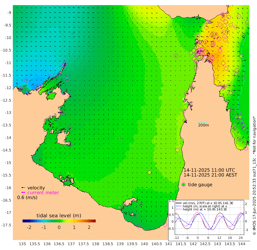 22cm/s -90T +3cm/s rms + 7cm/s -42T. ARA-GOC87 57m 23cm/s 172T +3cm/s rms + 2cm/s -2T. ARA-GOC87 60m 29cm/s -95T +2cm/s rms + 3cm/s 61T. ARA-GOC87 47m 99cm Daru 90cm Bobo Island 29cm Meer Island Barge 51cm Bramble Cay 79cm Unnamed Cay 85cm Pearce Cay 74cm Stephens Island 80cm Merrie England Shoals 101cm Mutacomal Reef 61cm Darnley Island Barge 37cm East Cay 78cm Yorke Island Barge 89cm Rennel Island 84cm Aureed Island 100cm Dungeness Reef 90cm Zagai Island 106cm Yam Island 73cm Dauan Island 67cm Saibai Island 89cm Phipi Reef 102cm Warrior Reef - West 68cm Mabuiag Island Barge 96cm Half Way Island 97cm Coconut Island 105cm Dugong Islet 104cm Poll Island 115cm Kirkcaldie Reef 101cm Suarji Island 97cm Sue Islet 63cm Hawkesbury Island 102cm Alert Patches 107cm Twin Island 52cm Badu Island 109cm St Pauls (Moa Island) 74cm Kubin (Moa Island) 92cm Ince Point 85cm Thursday Island 86cm Nardana Patches 70cm Turtle Head 57cm Round Island 47cm Goods Island 35cm Booby Island 38cm White Rocks Area 24cm Carpentaria 94cm Papou Point 19cm Bampfield Head 32cm Crab Island 46cm Red Wallis Island 73cm Packe Island 116cm Harrington Reef 60cm Herald Camp 37cm Sharp Point 73cm Red Island Point 81cm Possession Island 95cm Alpha Rock 109cm Frederick Point 96cm Wyborn Reef Light 100cm Tetley Island 36cm Triangle Reef 103cm Turtle Head Island 38cm Maclennan Cay 8cm Raine Island 74cm Mcsweeny Reef 61cm Collette Reef 29cm Shadwell Reef 65cm Hannibal Island 54cm Round Point 34cm Vrilya Point 50cm Cape Grenville 41cm Hicks Island 37cm Sir Charles Hardy Island 17cm Harvey Island 31cm Kay Reef 19cm Rocky Island 6cm Chapman Island 9cm Ham Reef 16cm Jubilee Reef 23cm Night Island 13cm Unnamed Reef No. 3 20cm Morris Island 9cm 1st 3 Mile Opening 18cm Creech Reef 22cm Fife Island 10cm Eden Reef 19cm Stanley Island 26cm Normanby River -111cm Yabooma Island -124cm Hutchison River -116cm Elcho Island -100cm North West Crocodile Island -86cm Cape Wessel -108cm Stevens Island -80cm Guluwuru Island -105cm Hopeful Bay -94cm Auster Point -82cm Two Island Bay -100cm Cadell Strait -106cm Mallison Island -74cm Melville Bay (Gove Harbour) -81cm Truant Island -54cm Cape Arnhem -40cm Cape Grey -29cm Hawk Island -29cm Milner Bay (Groote Eylandt) -12cm Cape Beatrice 14cm West Island 10cm Centre Island 23cm Mornington Island 16cm West Wellesley Islands 11cm Bountiful Island -17cm Albert River Mouth -28cm Sweers Island 7cm Karumba 47cm Nassau River Offshore 50cm Christmas Creek 29cm Archer River 27cm Boyd Point 22cm Weipa (Humbug Point) 29cm Pennefather River 31cm Cullen Point
