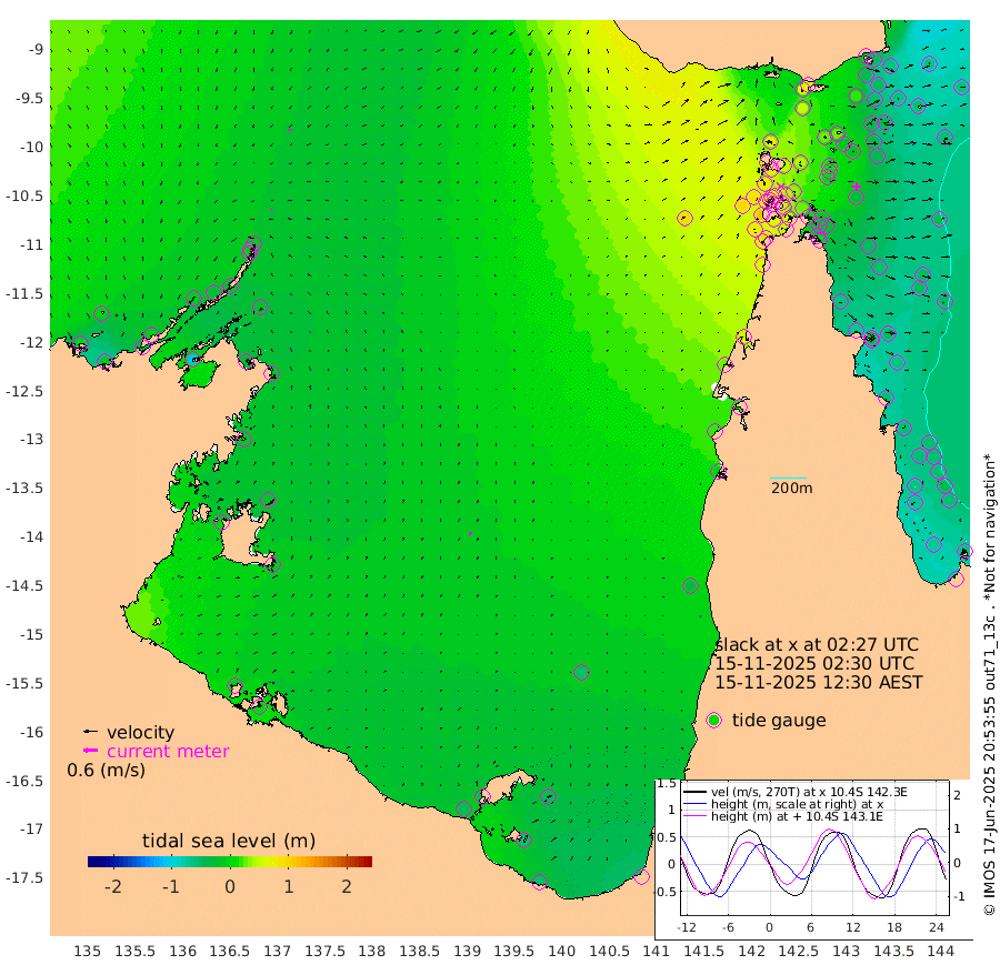 5cm/s -140T +3cm/s rms + 7cm/s -42T. ARA-GOC87 57m 14cm/s 18T +3cm/s rms + 2cm/s -2T. ARA-GOC87 60m 7cm/s -179T +2cm/s rms + 3cm/s 61T. ARA-GOC87 47m -37cm Daru -48cm Bobo Island -56cm Meer Island Barge -65cm Bramble Cay -50cm Unnamed Cay -59cm Pearce Cay -60cm Stephens Island -62cm Merrie England Shoals -40cm Mutacomal Reef -57cm Darnley Island Barge -66cm East Cay -43cm Yorke Island Barge -43cm Rennel Island -43cm Aureed Island -19cm Dungeness Reef 26cm Zagai Island 29cm Yam Island 65cm Dauan Island 62cm Saibai Island 49cm Phipi Reef 20cm Warrior Reef - West 73cm Mabuiag Island Barge -42cm Half Way Island -20cm Coconut Island -30cm Dugong Islet 4cm Poll Island -3cm Kirkcaldie Reef 41cm Suarji Island 8cm Sue Islet 78cm Hawkesbury Island 38cm Alert Patches 34cm Twin Island 83cm Badu Island 49cm St Pauls (Moa Island) 70cm Kubin (Moa Island) 54cm Ince Point 63cm Thursday Island 62cm Nardana Patches 65cm Turtle Head 84cm Round Island 77cm Goods Island 91cm Booby Island 86cm White Rocks Area 91cm Carpentaria 43cm Papou Point 115cm Bampfield Head 71cm Crab Island 81cm Red Wallis Island 63cm Packe Island -31cm Harrington Reef 93cm Herald Camp 15cm Sharp Point 49cm Red Island Point 56cm Possession Island 26cm Alpha Rock 4cm Frederick Point -27cm Wyborn Reef Light -17cm Tetley Island -41cm Triangle Reef -30cm Turtle Head Island -48cm Maclennan Cay -50cm Raine Island -52cm Mcsweeny Reef -54cm Collette Reef -50cm Shadwell Reef -63cm Hannibal Island -70cm Round Point 62cm Vrilya Point -61cm Cape Grenville -58cm Hicks Island -52cm Sir Charles Hardy Island -19cm Harvey Island -65cm Kay Reef -57cm Rocky Island -58cm Chapman Island -54cm Ham Reef -54cm Jubilee Reef -53cm Night Island -58cm Unnamed Reef No. 3 -61cm Morris Island -44cm 1st 3 Mile Opening -56cm Creech Reef -75cm Fife Island -73cm Eden Reef -63cm Stanley Island -76cm Normanby River 1cm Yabooma Island -8cm Hutchison River -5cm Elcho Island -6cm North West Crocodile Island -10cm Cape Wessel -14cm Stevens Island -25cm Guluwuru Island -16cm Hopeful Bay -6cm Auster Point -10cm Two Island Bay -40cm Cadell Strait -110cm Mallison Island -23cm Melville Bay (Gove Harbour) -18cm Truant Island -15cm Cape Arnhem -11cm Cape Grey -17cm Hawk Island -2cm Milner Bay (Groote Eylandt) -14cm Cape Beatrice -9cm West Island -2cm Centre Island -49cm Mornington Island -45cm West Wellesley Islands -49cm Bountiful Island -56cm Albert River Mouth -65cm Sweers Island -65cm Karumba -53cm Nassau River Offshore -33cm Christmas Creek -5cm Archer River 21cm Boyd Point 22cm Weipa (Humbug Point) 23cm Pennefather River 58cm Cullen Point