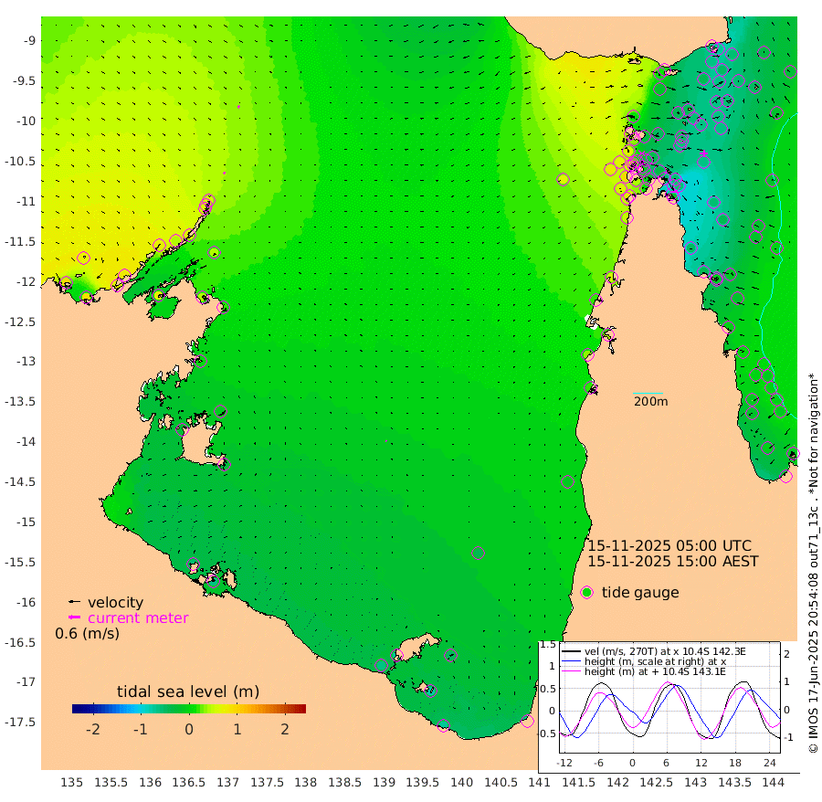 9cm/s 134T +3cm/s rms + 7cm/s -42T. ARA-GOC87 57m 3cm/s 140T +3cm/s rms + 2cm/s -2T. ARA-GOC87 60m 10cm/s 130T +2cm/s rms + 3cm/s 61T. ARA-GOC87 47m -65cm Daru -70cm Bobo Island -19cm Meer Island Barge -37cm Bramble Cay -52cm Unnamed Cay -66cm Pearce Cay -55cm Stephens Island -58cm Merrie England Shoals -63cm Mutacomal Reef -45cm Darnley Island Barge -24cm East Cay -54cm Yorke Island Barge -60cm Rennel Island -64cm Aureed Island -60cm Dungeness Reef -41cm Zagai Island -38cm Yam Island 12cm Dauan Island 12cm Saibai Island -17cm Phipi Reef -40cm Warrior Reef - West 13cm Mabuiag Island Barge -65cm Half Way Island -66cm Coconut Island -64cm Dugong Islet -55cm Poll Island -61cm Kirkcaldie Reef -46cm Suarji Island -47cm Sue Islet 64cm Hawkesbury Island -36cm Alert Patches -40cm Twin Island 51cm Badu Island -36cm St Pauls (Moa Island) 33cm Kubin (Moa Island) -12cm Ince Point 2cm Thursday Island 0cm Nardana Patches 24cm Turtle Head 48cm Round Island 59cm Goods Island 75cm Booby Island 66cm White Rocks Area 62cm Carpentaria -30cm Papou Point 92cm Bampfield Head 56cm Crab Island 65cm Red Wallis Island 40cm Packe Island -81cm Harrington Reef 79cm Herald Camp -18cm Sharp Point 12cm Red Island Point -9cm Possession Island -35cm Alpha Rock -56cm Frederick Point -60cm Wyborn Reef Light -57cm Tetley Island -17cm Triangle Reef -69cm Turtle Head Island -19cm Maclennan Cay -1cm Raine Island -53cm Mcsweeny Reef -44cm Collette Reef -16cm Shadwell Reef -50cm Hannibal Island -39cm Round Point 46cm Vrilya Point -32cm Cape Grenville -25cm Hicks Island -8cm Sir Charles Hardy Island -11cm Harvey Island -18cm Kay Reef -7cm Rocky Island 4cm Chapman Island 2cm Ham Reef -5cm Jubilee Reef -14cm Night Island -3cm Unnamed Reef No. 3 -11cm Morris Island -1cm 1st 3 Mile Opening -8cm Creech Reef -17cm Fife Island -5cm Eden Reef -9cm Stanley Island -16cm Normanby River 96cm Yabooma Island 86cm Hutchison River 78cm Elcho Island 71cm North West Crocodile Island 57cm Cape Wessel 72cm Stevens Island 40cm Guluwuru Island 74cm Hopeful Bay 60cm Auster Point 62cm Two Island Bay 63cm Cadell Strait 68cm Mallison Island 38cm Melville Bay (Gove Harbour) 44cm Truant Island 22cm Cape Arnhem 0cm Cape Grey -11cm Hawk Island -24cm Milner Bay (Groote Eylandt) -36cm Cape Beatrice -60cm West Island -60cm Centre Island -70cm Mornington Island -62cm West Wellesley Islands -50cm Bountiful Island -69cm Albert River Mouth -81cm Sweers Island -76cm Karumba -42cm Nassau River Offshore -13cm Christmas Creek 18cm Archer River 32cm Boyd Point 44cm Weipa (Humbug Point) 16cm Pennefather River 55cm Cullen Point