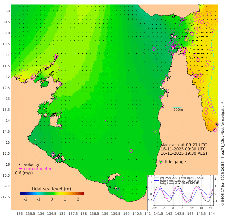 3cm/s 39T +3cm/s rms + 7cm/s -42T. ARA-GOC87 57m 16cm/s -180T +3cm/s rms + 2cm/s -2T. ARA-GOC87 60m 4cm/s -16T +2cm/s rms + 3cm/s 61T. ARA-GOC87 47m 79cm Daru 86cm Bobo Island 74cm Meer Island Barge 94cm Bramble Cay 92cm Unnamed Cay 89cm Pearce Cay 93cm Stephens Island 99cm Merrie England Shoals 89cm Mutacomal Reef 85cm Darnley Island Barge 89cm East Cay 78cm Yorke Island Barge 83cm Rennel Island 78cm Aureed Island 60cm Dungeness Reef 23cm Zagai Island 32cm Yam Island -17cm Dauan Island -13cm Saibai Island -11cm Phipi Reef 30cm Warrior Reef - West -23cm Mabuiag Island Barge 80cm Half Way Island 64cm Coconut Island 75cm Dugong Islet 45cm Poll Island 50cm Kirkcaldie Reef 15cm Suarji Island 38cm Sue Islet -19cm Hawkesbury Island 9cm Alert Patches 20cm Twin Island -35cm Badu Island 7cm St Pauls (Moa Island) -8cm Kubin (Moa Island) -1cm Ince Point -11cm Thursday Island -10cm Nardana Patches -16cm Turtle Head -16cm Round Island -27cm Goods Island -44cm Booby Island -32cm White Rocks Area -48cm Carpentaria 9cm Papou Point -37cm Bampfield Head -44cm Crab Island -30cm Red Wallis Island -2cm Packe Island 77cm Harrington Reef -13cm Herald Camp -3cm Sharp Point -12cm Red Island Point -2cm Possession Island 32cm Alpha Rock 46cm Frederick Point 80cm Wyborn Reef Light 73cm Tetley Island 66cm Triangle Reef 72cm Turtle Head Island 73cm Maclennan Cay 62cm Raine Island 85cm Mcsweeny Reef 82cm Collette Reef 69cm Shadwell Reef 93cm Hannibal Island 100cm Round Point -49cm Vrilya Point 90cm Cape Grenville 84cm Hicks Island 90cm Sir Charles Hardy Island 27cm Harvey Island 90cm Kay Reef 76cm Rocky Island 74cm Chapman Island 70cm Ham Reef 70cm Jubilee Reef 68cm Night Island 73cm Unnamed Reef No. 3 79cm Morris Island 59cm 1st 3 Mile Opening 71cm Creech Reef 86cm Fife Island 88cm Eden Reef 80cm Stanley Island 96cm Normanby River 52cm Yabooma Island 59cm Hutchison River 45cm Elcho Island 45cm North West Crocodile Island 54cm Cape Wessel 56cm Stevens Island 56cm Guluwuru Island 54cm Hopeful Bay 43cm Auster Point 53cm Two Island Bay 68cm Cadell Strait 136cm Mallison Island 49cm Melville Bay (Gove Harbour) 51cm Truant Island 31cm Cape Arnhem 9cm Cape Grey 10cm Hawk Island -17cm Milner Bay (Groote Eylandt) -12cm Cape Beatrice -27cm West Island -36cm Centre Island -6cm Mornington Island -8cm West Wellesley Islands 3cm Bountiful Island -20cm Albert River Mouth -26cm Sweers Island -13cm Karumba 16cm Nassau River Offshore 17cm Christmas Creek -3cm Archer River -11cm Boyd Point -9cm Weipa (Humbug Point) -34cm Pennefather River -30cm Cullen Point