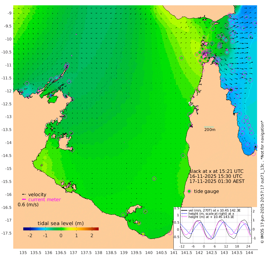 12cm/s -91T +3cm/s rms + 7cm/s -42T. ARA-GOC87 57m 4cm/s -48T +3cm/s rms + 2cm/s -2T. ARA-GOC87 60m 12cm/s -95T +2cm/s rms + 3cm/s 61T. ARA-GOC87 47m -92cm Daru -103cm Bobo Island -95cm Meer Island Barge -112cm Bramble Cay -109cm Unnamed Cay -104cm Pearce Cay -112cm Stephens Island -115cm Merrie England Shoals -99cm Mutacomal Reef -104cm Darnley Island Barge -110cm East Cay -94cm Yorke Island Barge -100cm Rennel Island -96cm Aureed Island -73cm Dungeness Reef -37cm Zagai Island -36cm Yam Island 20cm Dauan Island 12cm Saibai Island 9cm Phipi Reef -32cm Warrior Reef - West 16cm Mabuiag Island Barge -91cm Half Way Island -85cm Coconut Island -85cm Dugong Islet -55cm Poll Island -60cm Kirkcaldie Reef -38cm Suarji Island -49cm Sue Islet 21cm Hawkesbury Island -26cm Alert Patches -33cm Twin Island 19cm Badu Island -16cm St Pauls (Moa Island) 5cm Kubin (Moa Island) -9cm Ince Point 0cm Thursday Island -1cm Nardana Patches 1cm Turtle Head 2cm Round Island 9cm Goods Island 23cm Booby Island 8cm White Rocks Area 17cm Carpentaria -21cm Papou Point -10cm Bampfield Head 27cm Crab Island 19cm Red Wallis Island 1cm Packe Island -95cm Harrington Reef 9cm Herald Camp 5cm Sharp Point 3cm Red Island Point -16cm Possession Island -40cm Alpha Rock -59cm Frederick Point -95cm Wyborn Reef Light -85cm Tetley Island -81cm Triangle Reef -91cm Turtle Head Island -93cm Maclennan Cay -87cm Raine Island -103cm Mcsweeny Reef -102cm Collette Reef -89cm Shadwell Reef -114cm Hannibal Island -117cm Round Point 36cm Vrilya Point -108cm Cape Grenville -104cm Hicks Island -112cm Sir Charles Hardy Island -32cm Harvey Island -111cm Kay Reef -97cm Rocky Island -97cm Chapman Island -92cm Ham Reef -93cm Jubilee Reef -85cm Night Island -95cm Unnamed Reef No. 3 -102cm Morris Island -90cm 1st 3 Mile Opening -95cm Creech Reef -103cm Fife Island -113cm Eden Reef -102cm Stanley Island -115cm Normanby River -50cm Yabooma Island -70cm Hutchison River -49cm Elcho Island -38cm North West Crocodile Island -67cm Cape Wessel -59cm Stevens Island -82cm Guluwuru Island -54cm Hopeful Bay -56cm Auster Point -47cm Two Island Bay -62cm Cadell Strait -143cm Mallison Island -67cm Melville Bay (Gove Harbour) -74cm Truant Island -49cm Cape Arnhem -30cm Cape Grey -14cm Hawk Island 7cm Milner Bay (Groote Eylandt) 12cm Cape Beatrice 34cm West Island 37cm Centre Island 23cm Mornington Island 20cm West Wellesley Islands 16cm Bountiful Island 44cm Albert River Mouth 50cm Sweers Island 48cm Karumba 15cm Nassau River Offshore 1cm Christmas Creek 4cm Archer River 4cm Boyd Point 3cm Weipa (Humbug Point) 28cm Pennefather River 25cm Cullen Point