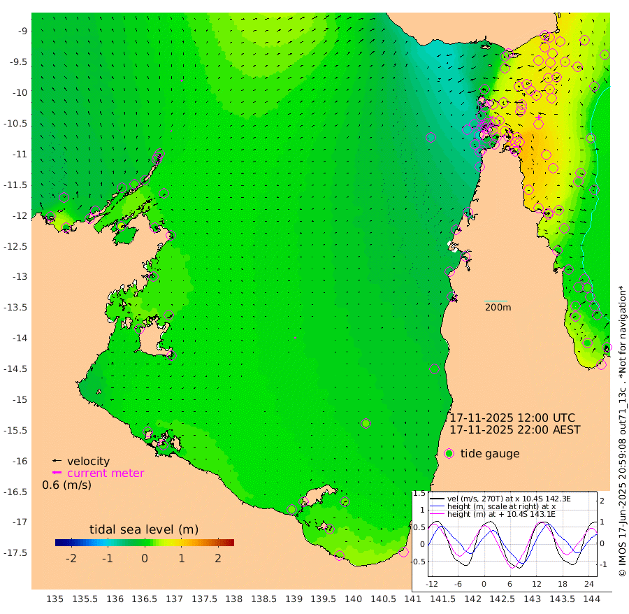7cm/s -14T +3cm/s rms + 7cm/s -42T. ARA-GOC87 57m 8cm/s -176T +3cm/s rms + 2cm/s -2T. ARA-GOC87 60m 9cm/s -24T +2cm/s rms + 3cm/s 61T. ARA-GOC87 47m 80cm Daru 83cm Bobo Island 25cm Meer Island Barge 49cm Bramble Cay 67cm Unnamed Cay 76cm Pearce Cay 64cm Stephens Island 68cm Merrie England Shoals 85cm Mutacomal Reef 54cm Darnley Island Barge 32cm East Cay 66cm Yorke Island Barge 71cm Rennel Island 76cm Aureed Island 71cm Dungeness Reef 66cm Zagai Island 69cm Yam Island 26cm Dauan Island 27cm Saibai Island 33cm Phipi Reef 70cm Warrior Reef - West 8cm Mabuiag Island Barge 74cm Half Way Island 75cm Coconut Island 79cm Dugong Islet 74cm Poll Island 70cm Kirkcaldie Reef 59cm Suarji Island 63cm Sue Islet -46cm Hawkesbury Island 40cm Alert Patches 54cm Twin Island -46cm Badu Island 53cm St Pauls (Moa Island) -11cm Kubin (Moa Island) 24cm Ince Point 7cm Thursday Island 11cm Nardana Patches -18cm Turtle Head -30cm Round Island -55cm Goods Island -80cm Booby Island -66cm White Rocks Area -72cm Carpentaria 44cm Papou Point -86cm Bampfield Head -73cm Crab Island -60cm Red Wallis Island -17cm Packe Island 88cm Harrington Reef -48cm Herald Camp 21cm Sharp Point -15cm Red Island Point 15cm Possession Island 60cm Alpha Rock 69cm Frederick Point 81cm Wyborn Reef Light 82cm Tetley Island 31cm Triangle Reef 71cm Turtle Head Island 28cm Maclennan Cay 1cm Raine Island 62cm Mcsweeny Reef 51cm Collette Reef 21cm Shadwell Reef 58cm Hannibal Island 51cm Round Point -73cm Vrilya Point 42cm Cape Grenville 33cm Hicks Island 31cm Sir Charles Hardy Island 13cm Harvey Island 26cm Kay Reef 14cm Rocky Island 6cm Chapman Island 6cm Ham Reef 9cm Jubilee Reef 18cm Night Island 9cm Unnamed Reef No. 3 14cm Morris Island -2cm 1st 3 Mile Opening 10cm Creech Reef 21cm Fife Island 12cm Eden Reef 12cm Stanley Island 25cm Normanby River -21cm Yabooma Island -13cm Hutchison River -15cm Elcho Island -9cm North West Crocodile Island 10cm Cape Wessel -1cm Stevens Island 16cm Guluwuru Island -7cm Hopeful Bay -5cm Auster Point 9cm Two Island Bay 10cm Cadell Strait 45cm Mallison Island 13cm Melville Bay (Gove Harbour) 12cm Truant Island 11cm Cape Arnhem 3cm Cape Grey 17cm Hawk Island 9cm Milner Bay (Groote Eylandt) 15cm Cape Beatrice 21cm West Island 16cm Centre Island 30cm Mornington Island 24cm West Wellesley Islands 24cm Bountiful Island 25cm Albert River Mouth 24cm Sweers Island 29cm Karumba 23cm Nassau River Offshore 3cm Christmas Creek -35cm Archer River -40cm Boyd Point -49cm Weipa (Humbug Point) -52cm Pennefather River -57cm Cullen Point