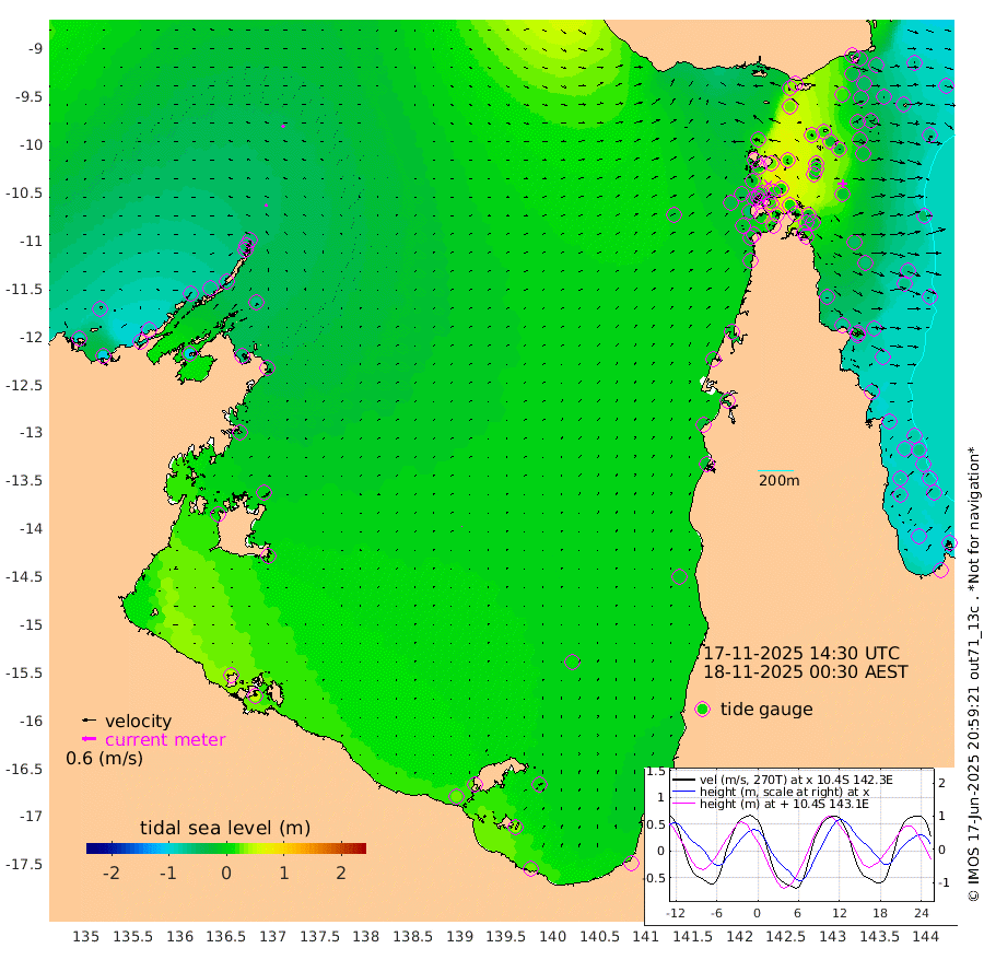 11cm/s -61T +3cm/s rms + 7cm/s -42T. ARA-GOC87 57m 2cm/s 25T +3cm/s rms + 2cm/s -2T. ARA-GOC87 60m 12cm/s -65T +2cm/s rms + 3cm/s 61T. ARA-GOC87 47m -27cm Daru -33cm Bobo Island -67cm Meer Island Barge -69cm Bramble Cay -52cm Unnamed Cay -41cm Pearce Cay -54cm Stephens Island -59cm Merrie England Shoals -33cm Mutacomal Reef -53cm Darnley Island Barge -76cm East Cay -36cm Yorke Island Barge -39cm Rennel Island -29cm Aureed Island -14cm Dungeness Reef 17cm Zagai Island 18cm Yam Island 35cm Dauan Island 30cm Saibai Island 25cm Phipi Reef 20cm Warrior Reef - West 22cm Mabuiag Island Barge -28cm Half Way Island -21cm Coconut Island -18cm Dugong Islet 5cm Poll Island -3cm Kirkcaldie Reef 16cm Suarji Island 5cm Sue Islet -17cm Hawkesbury Island 10cm Alert Patches 14cm Twin Island -17cm Badu Island 29cm St Pauls (Moa Island) -2cm Kubin (Moa Island) 14cm Ince Point 9cm Thursday Island 11cm Nardana Patches -10cm Turtle Head -16cm Round Island -29cm Goods Island -31cm Booby Island -34cm White Rocks Area -16cm Carpentaria 18cm Papou Point -53cm Bampfield Head -24cm Crab Island -22cm Red Wallis Island -12cm Packe Island -19cm Harrington Reef -22cm Herald Camp 20cm Sharp Point -10cm Red Island Point 3cm Possession Island 10cm Alpha Rock 0cm Frederick Point -28cm Wyborn Reef Light -18cm Tetley Island -51cm Triangle Reef -28cm Turtle Head Island -62cm Maclennan Cay -77cm Raine Island -48cm Mcsweeny Reef -56cm Collette Reef -66cm Shadwell Reef -63cm Hannibal Island -73cm Round Point -13cm Vrilya Point -69cm Cape Grenville -70cm Hicks Island -78cm Sir Charles Hardy Island -19cm Harvey Island -83cm Kay Reef -78cm Rocky Island -84cm Chapman Island -78cm Ham Reef -77cm Jubilee Reef -64cm Night Island -80cm Unnamed Reef No. 3 -82cm Morris Island -79cm 1st 3 Mile Opening -77cm Creech Reef -79cm Fife Island -95cm Eden Reef -84cm Stanley Island -88cm Normanby River -85cm Yabooma Island -101cm Hutchison River -82cm Elcho Island -70cm North West Crocodile Island -59cm Cape Wessel -76cm Stevens Island -65cm Guluwuru Island -75cm Hopeful Bay -63cm Auster Point -49cm Two Island Bay -74cm Cadell Strait -104cm Mallison Island -58cm Melville Bay (Gove Harbour) -61cm Truant Island -37cm Cape Arnhem -24cm Cape Grey -5cm Hawk Island 14cm Milner Bay (Groote Eylandt) 19cm Cape Beatrice 47cm West Island 49cm Centre Island 26cm Mornington Island 23cm West Wellesley Islands 8cm Bountiful Island 25cm Albert River Mouth 32cm Sweers Island 29cm Karumba 8cm Nassau River Offshore -12cm Christmas Creek -29cm Archer River -24cm Boyd Point -36cm Weipa (Humbug Point) -11cm Pennefather River -14cm Cullen Point