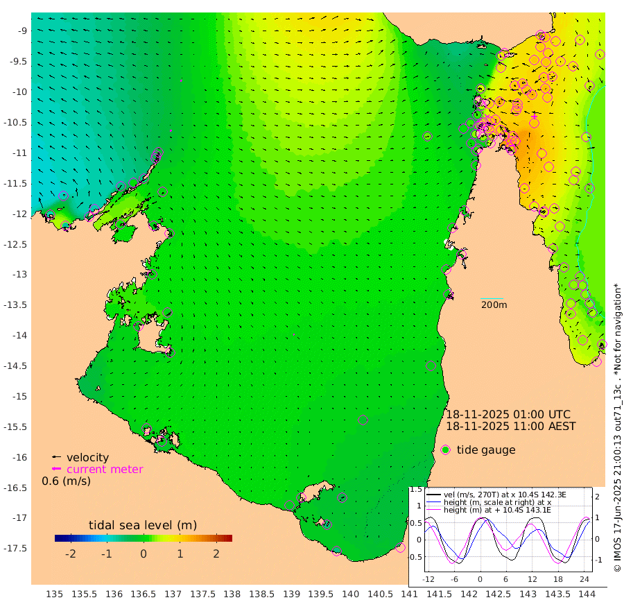 11cm/s 99T +3cm/s rms + 7cm/s -42T. ARA-GOC87 57m 7cm/s 110T +3cm/s rms + 2cm/s -2T. ARA-GOC87 60m 8cm/s 94T +2cm/s rms + 3cm/s 61T. ARA-GOC87 47m 109cm Daru 116cm Bobo Island 49cm Meer Island Barge 67cm Bramble Cay 91cm Unnamed Cay 106cm Pearce Cay 90cm Stephens Island 86cm Merrie England Shoals 104cm Mutacomal Reef 83cm Darnley Island Barge 55cm East Cay 99cm Yorke Island Barge 101cm Rennel Island 113cm Aureed Island 111cm Dungeness Reef 117cm Zagai Island 107cm Yam Island 76cm Dauan Island 80cm Saibai Island 91cm Phipi Reef 112cm Warrior Reef - West 67cm Mabuiag Island Barge 100cm Half Way Island 122cm Coconut Island 108cm Dugong Islet 114cm Poll Island 112cm Kirkcaldie Reef 128cm Suarji Island 109cm Sue Islet 17cm Hawkesbury Island 107cm Alert Patches 112cm Twin Island 37cm Badu Island 111cm St Pauls (Moa Island) 45cm Kubin (Moa Island) 85cm Ince Point 72cm Thursday Island 75cm Nardana Patches 54cm Turtle Head 37cm Round Island 24cm Goods Island 9cm Booby Island 18cm White Rocks Area 23cm Carpentaria 100cm Papou Point 31cm Bampfield Head 5cm Crab Island 13cm Red Wallis Island 35cm Packe Island 128cm Harrington Reef 15cm Herald Camp 33cm Sharp Point 52cm Red Island Point 85cm Possession Island 97cm Alpha Rock 117cm Frederick Point 111cm Wyborn Reef Light 112cm Tetley Island 55cm Triangle Reef 115cm Turtle Head Island 53cm Maclennan Cay 30cm Raine Island 90cm Mcsweeny Reef 79cm Collette Reef 47cm Shadwell Reef 84cm Hannibal Island 67cm Round Point 1cm Vrilya Point 60cm Cape Grenville 57cm Hicks Island 56cm Sir Charles Hardy Island 19cm Harvey Island 46cm Kay Reef 37cm Rocky Island 32cm Chapman Island 30cm Ham Reef 35cm Jubilee Reef 36cm Night Island 33cm Unnamed Reef No. 3 38cm Morris Island 35cm 1st 3 Mile Opening 38cm Creech Reef 34cm Fife Island 35cm Eden Reef 34cm Stanley Island 39cm Normanby River -89cm Yabooma Island -73cm Hutchison River -79cm Elcho Island -83cm North West Crocodile Island -19cm Cape Wessel -64cm Stevens Island 12cm Guluwuru Island -68cm Hopeful Bay -35cm Auster Point -48cm Two Island Bay -51cm Cadell Strait 8cm Mallison Island -2cm Melville Bay (Gove Harbour) 3cm Truant Island 9cm Cape Arnhem 7cm Cape Grey -1cm Hawk Island -9cm Milner Bay (Groote Eylandt) -12cm Cape Beatrice -10cm West Island -3cm Centre Island -12cm Mornington Island -13cm West Wellesley Islands -32cm Bountiful Island -61cm Albert River Mouth -62cm Sweers Island -57cm Karumba -17cm Nassau River Offshore -3cm Christmas Creek -3cm Archer River 6cm Boyd Point -6cm Weipa (Humbug Point) 1cm Pennefather River -2cm Cullen Point
