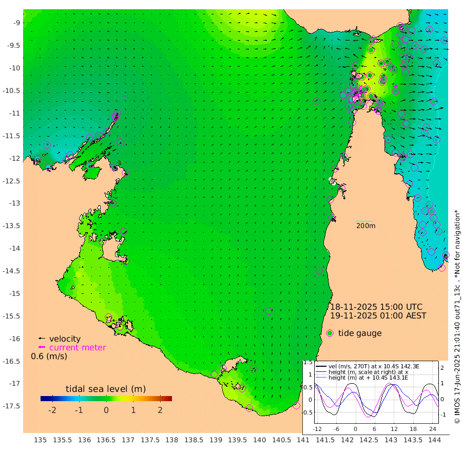 10cm/s -35T +3cm/s rms + 7cm/s -42T. ARA-GOC87 57m 7cm/s 12T +3cm/s rms + 2cm/s -2T. ARA-GOC87 60m 10cm/s -37T +2cm/s rms + 3cm/s 61T. ARA-GOC87 47m -44cm Daru -46cm Bobo Island -72cm Meer Island Barge -77cm Bramble Cay -66cm Unnamed Cay -54cm Pearce Cay -65cm Stephens Island -71cm Merrie England Shoals -49cm Mutacomal Reef -62cm Darnley Island Barge -82cm East Cay -48cm Yorke Island Barge -53cm Rennel Island -40cm Aureed Island -33cm Dungeness Reef -1cm Zagai Island -4cm Yam Island 10cm Dauan Island 9cm Saibai Island -6cm Phipi Reef -2cm Warrior Reef - West -1cm Mabuiag Island Barge -43cm Half Way Island -38cm Coconut Island -35cm Dugong Islet -14cm Poll Island -25cm Kirkcaldie Reef -6cm Suarji Island -14cm Sue Islet -53cm Hawkesbury Island -16cm Alert Patches -9cm Twin Island -50cm Badu Island 4cm St Pauls (Moa Island) -32cm Kubin (Moa Island) -12cm Ince Point -18cm Thursday Island -16cm Nardana Patches -39cm Turtle Head -46cm Round Island -60cm Goods Island -60cm Booby Island -61cm White Rocks Area -32cm Carpentaria -5cm Papou Point -81cm Bampfield Head -50cm Crab Island -49cm Red Wallis Island -41cm Packe Island -36cm Harrington Reef -54cm Herald Camp 13cm Sharp Point -39cm Red Island Point -23cm Possession Island -8cm Alpha Rock -21cm Frederick Point -44cm Wyborn Reef Light -35cm Tetley Island -57cm Triangle Reef -47cm Turtle Head Island -69cm Maclennan Cay -81cm Raine Island -59cm Mcsweeny Reef -66cm Collette Reef -72cm Shadwell Reef -73cm Hannibal Island -82cm Round Point -36cm Vrilya Point -76cm Cape Grenville -78cm Hicks Island -84cm Sir Charles Hardy Island -22cm Harvey Island -89cm Kay Reef -83cm Rocky Island -87cm Chapman Island -81cm Ham Reef -81cm Jubilee Reef -67cm Night Island -82cm Unnamed Reef No. 3 -86cm Morris Island -83cm 1st 3 Mile Opening -81cm Creech Reef -80cm Fife Island -97cm Eden Reef -87cm Stanley Island -91cm Normanby River -82cm Yabooma Island -99cm Hutchison River -76cm Elcho Island -68cm North West Crocodile Island -44cm Cape Wessel -67cm Stevens Island -52cm Guluwuru Island -66cm Hopeful Bay -53cm Auster Point -39cm Two Island Bay -67cm Cadell Strait -68cm Mallison Island -46cm Melville Bay (Gove Harbour) -47cm Truant Island -26cm Cape Arnhem -17cm Cape Grey 1cm Hawk Island 25cm Milner Bay (Groote Eylandt) 26cm Cape Beatrice 55cm West Island 56cm Centre Island 25cm Mornington Island 26cm West Wellesley Islands 4cm Bountiful Island 27cm Albert River Mouth 37cm Sweers Island 24cm Karumba -2cm Nassau River Offshore -27cm Christmas Creek -46cm Archer River -40cm Boyd Point -54cm Weipa (Humbug Point) -29cm Pennefather River -34cm Cullen Point