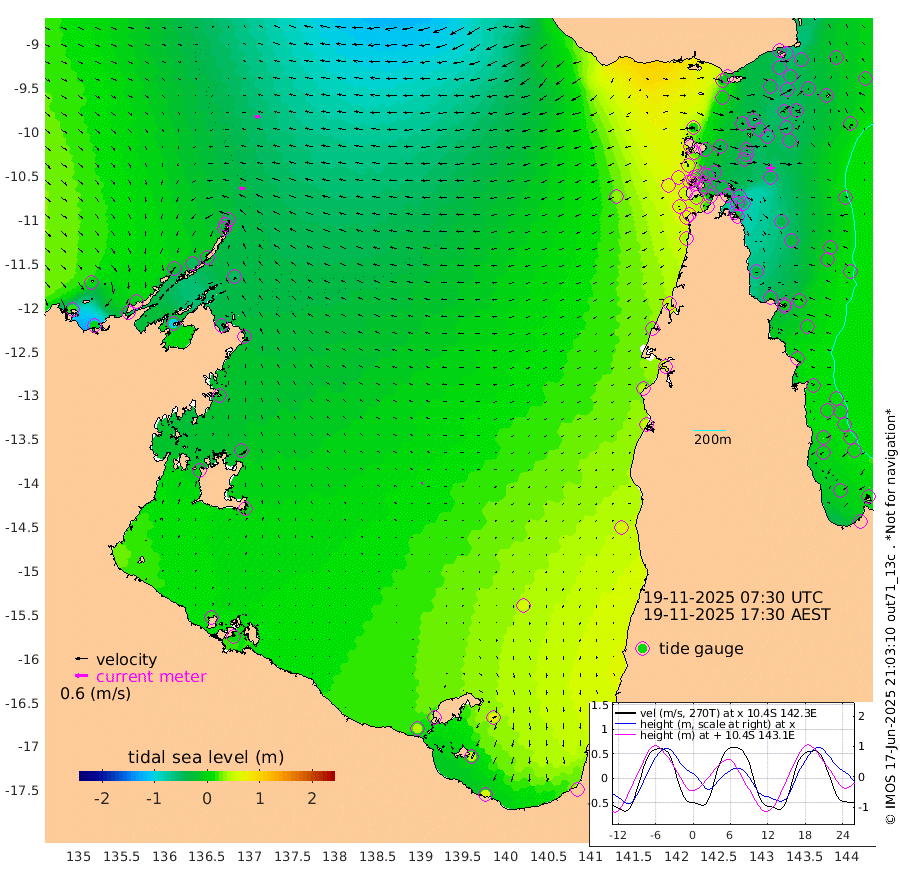 25cm/s -88T +3cm/s rms + 7cm/s -42T. ARA-GOC87 57m 9cm/s -142T +3cm/s rms + 2cm/s -2T. ARA-GOC87 60m 25cm/s -99T +2cm/s rms + 3cm/s 61T. ARA-GOC87 47m -43cm Daru -55cm Bobo Island -7cm Meer Island Barge -20cm Bramble Cay -31cm Unnamed Cay -48cm Pearce Cay -32cm Stephens Island -33cm Merrie England Shoals -43cm Mutacomal Reef -29cm Darnley Island Barge -7cm East Cay -39cm Yorke Island Barge -37cm Rennel Island -50cm Aureed Island -38cm Dungeness Reef -46cm Zagai Island -31cm Yam Island -3cm Dauan Island -11cm Saibai Island -7cm Phipi Reef -36cm Warrior Reef - West -1cm Mabuiag Island Barge -39cm Half Way Island -53cm Coconut Island -39cm Dugong Islet -45cm Poll Island -34cm Kirkcaldie Reef -38cm Suarji Island -40cm Sue Islet 46cm Hawkesbury Island -27cm Alert Patches -35cm Twin Island 38cm Badu Island -33cm St Pauls (Moa Island) 23cm Kubin (Moa Island) -11cm Ince Point 2cm Thursday Island -1cm Nardana Patches 25cm Turtle Head 30cm Round Island 51cm Goods Island 63cm Booby Island 57cm White Rocks Area 36cm Carpentaria -30cm Papou Point 52cm Bampfield Head 51cm Crab Island 52cm Red Wallis Island 32cm Packe Island -54cm Harrington Reef 61cm Herald Camp -13cm Sharp Point 20cm Red Island Point -13cm Possession Island -36cm Alpha Rock -44cm Frederick Point -52cm Wyborn Reef Light -54cm Tetley Island -15cm Triangle Reef -53cm Turtle Head Island -4cm Maclennan Cay 10cm Raine Island -33cm Mcsweeny Reef -27cm Collette Reef -5cm Shadwell Reef -30cm Hannibal Island -22cm Round Point 43cm Vrilya Point -13cm Cape Grenville -7cm Hicks Island 3cm Sir Charles Hardy Island -4cm Harvey Island -2cm Kay Reef 6cm Rocky Island 7cm Chapman Island 8cm Ham Reef 6cm Jubilee Reef 0cm Night Island 6cm Unnamed Reef No. 3 5cm Morris Island 13cm 1st 3 Mile Opening 6cm Creech Reef 1cm Fife Island 7cm Eden Reef 8cm Stanley Island 3cm Normanby River 17cm Yabooma Island -3cm Hutchison River 0cm Elcho Island 6cm North West Crocodile Island -39cm Cape Wessel -21cm Stevens Island -50cm Guluwuru Island -12cm Hopeful Bay -28cm Auster Point -28cm Two Island Bay -33cm Cadell Strait -98cm Mallison Island -39cm Melville Bay (Gove Harbour) -48cm Truant Island -36cm Cape Arnhem -17cm Cape Grey -21cm Hawk Island -5cm Milner Bay (Groote Eylandt) 3cm Cape Beatrice 15cm West Island 9cm Centre Island 33cm Mornington Island 38cm West Wellesley Islands 75cm Bountiful Island 66cm Albert River Mouth 51cm Sweers Island 66cm Karumba 55cm Nassau River Offshore 57cm Christmas Creek 50cm Archer River 43cm Boyd Point 62cm Weipa (Humbug Point) 27cm Pennefather River 47cm Cullen Point