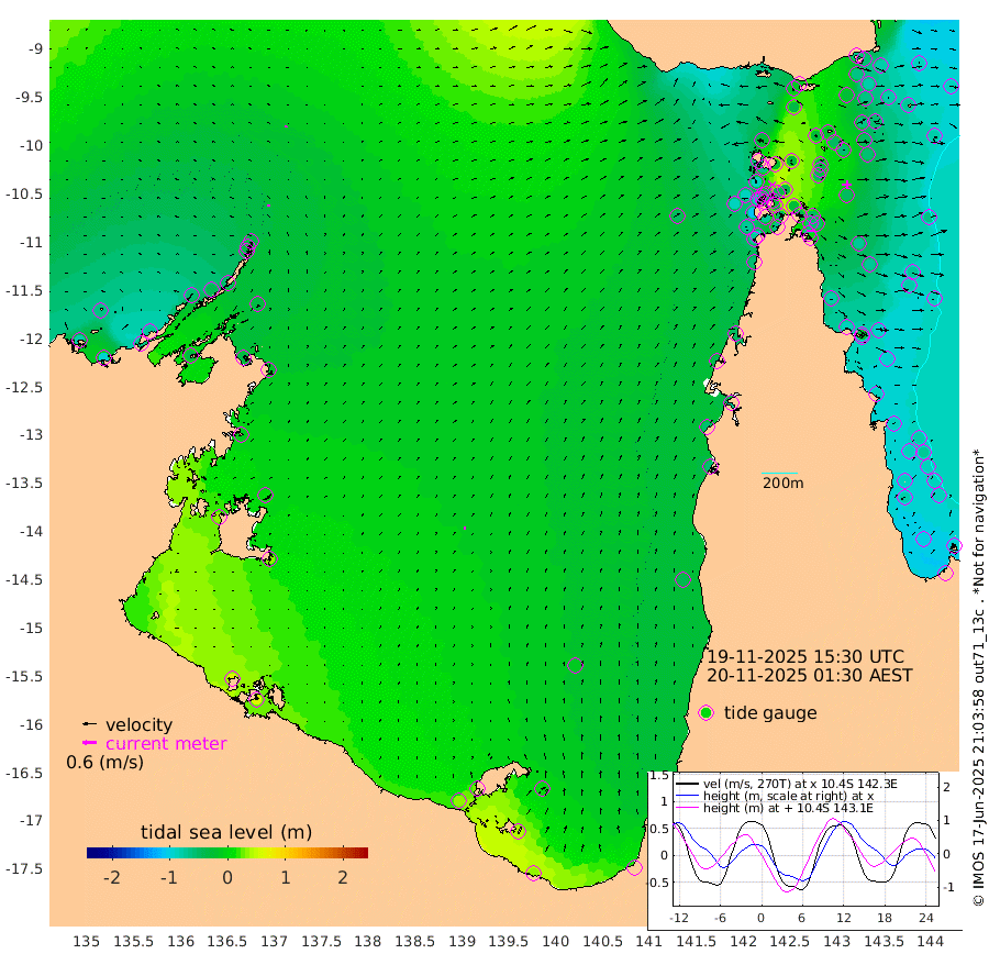 10cm/s -12T +3cm/s rms + 7cm/s -42T. ARA-GOC87 57m 12cm/s 9T +3cm/s rms + 2cm/s -2T. ARA-GOC87 60m 10cm/s -9T +2cm/s rms + 3cm/s 61T. ARA-GOC87 47m -60cm Daru -59cm Bobo Island -76cm Meer Island Barge -85cm Bramble Cay -78cm Unnamed Cay -67cm Pearce Cay -76cm Stephens Island -82cm Merrie England Shoals -65cm Mutacomal Reef -71cm Darnley Island Barge -87cm East Cay -60cm Yorke Island Barge -67cm Rennel Island -52cm Aureed Island -52cm Dungeness Reef -20cm Zagai Island -26cm Yam Island -14cm Dauan Island -11cm Saibai Island -36cm Phipi Reef -23cm Warrior Reef - West -24cm Mabuiag Island Barge -57cm Half Way Island -54cm Coconut Island -51cm Dugong Islet -33cm Poll Island -47cm Kirkcaldie Reef -27cm Suarji Island -32cm Sue Islet -85cm Hawkesbury Island -40cm Alert Patches -32cm Twin Island -79cm Badu Island -20cm St Pauls (Moa Island) -60cm Kubin (Moa Island) -37cm Ince Point -43cm Thursday Island -41cm Nardana Patches -65cm Turtle Head -75cm Round Island -87cm Goods Island -86cm Booby Island -85cm White Rocks Area -46cm Carpentaria -27cm Papou Point -106cm Bampfield Head -72cm Crab Island -73cm Red Wallis Island -68cm Packe Island -53cm Harrington Reef -86cm Herald Camp 6cm Sharp Point -65cm Red Island Point -48cm Possession Island -25cm Alpha Rock -41cm Frederick Point -59cm Wyborn Reef Light -52cm Tetley Island -63cm Triangle Reef -66cm Turtle Head Island -74cm Maclennan Cay -83cm Raine Island -69cm Mcsweeny Reef -75cm Collette Reef -77cm Shadwell Reef -82cm Hannibal Island -89cm Round Point -56cm Vrilya Point -83cm Cape Grenville -85cm Hicks Island -90cm Sir Charles Hardy Island -24cm Harvey Island -92cm Kay Reef -86cm Rocky Island -87cm Chapman Island -82cm Ham Reef -83cm Jubilee Reef -70cm Night Island -83cm Unnamed Reef No. 3 -89cm Morris Island -86cm 1st 3 Mile Opening -84cm Creech Reef -80cm Fife Island -99cm Eden Reef -90cm Stanley Island -94cm Normanby River -79cm Yabooma Island -96cm Hutchison River -72cm Elcho Island -66cm North West Crocodile Island -31cm Cape Wessel -58cm Stevens Island -40cm Guluwuru Island -59cm Hopeful Bay -45cm Auster Point -33cm Two Island Bay -61cm Cadell Strait -34cm Mallison Island -36cm Melville Bay (Gove Harbour) -36cm Truant Island -17cm Cape Arnhem -10cm Cape Grey 7cm Hawk Island 34cm Milner Bay (Groote Eylandt) 34cm Cape Beatrice 63cm West Island 63cm Centre Island 26cm Mornington Island 30cm West Wellesley Islands 4cm Bountiful Island 32cm Albert River Mouth 44cm Sweers Island 22cm Karumba -10cm Nassau River Offshore -39cm Christmas Creek -60cm Archer River -53cm Boyd Point -70cm Weipa (Humbug Point) -44cm Pennefather River -51cm Cullen Point