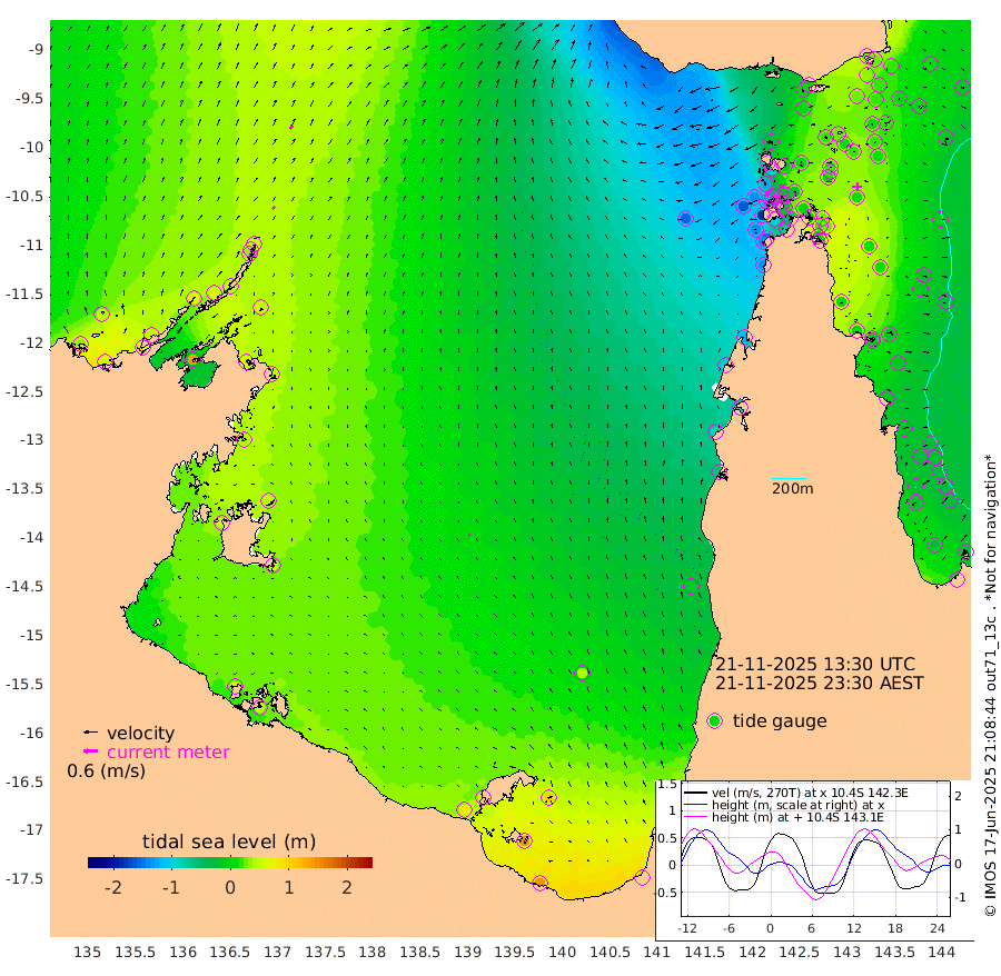 16cm/s 44T +3cm/s rms + 7cm/s -42T. ARA-GOC87 57m 11cm/s -43T +3cm/s rms + 2cm/s -2T. ARA-GOC87 60m 21cm/s 40T +2cm/s rms + 3cm/s 61T. ARA-GOC87 47m 26cm Daru 29cm Bobo Island -13cm Meer Island Barge 8cm Bramble Cay 18cm Unnamed Cay 19cm Pearce Cay 7cm Stephens Island 20cm Merrie England Shoals 33cm Mutacomal Reef 6cm Darnley Island Barge -13cm East Cay 16cm Yorke Island Barge 12cm Rennel Island 21cm Aureed Island 14cm Dungeness Reef 27cm Zagai Island 16cm Yam Island 1cm Dauan Island 10cm Saibai Island 5cm Phipi Reef 28cm Warrior Reef - West -27cm Mabuiag Island Barge 12cm Half Way Island 19cm Coconut Island 13cm Dugong Islet 17cm Poll Island 6cm Kirkcaldie Reef 3cm Suarji Island 15cm Sue Islet -127cm Hawkesbury Island -21cm Alert Patches -10cm Twin Island -97cm Badu Island -8cm St Pauls (Moa Island) -88cm Kubin (Moa Island) -38cm Ince Point -60cm Thursday Island -53cm Nardana Patches -85cm Turtle Head -110cm Round Island -127cm Goods Island -159cm Booby Island -139cm White Rocks Area -151cm Carpentaria -14cm Papou Point -183cm Bampfield Head -139cm Crab Island -141cm Red Wallis Island -103cm Packe Island 15cm Harrington Reef -153cm Herald Camp 8cm Sharp Point -78cm Red Island Point -58cm Possession Island 6cm Alpha Rock 3cm Frederick Point 26cm Wyborn Reef Light 25cm Tetley Island -7cm Triangle Reef 0cm Turtle Head Island -18cm Maclennan Cay -28cm Raine Island 11cm Mcsweeny Reef 8cm Collette Reef -11cm Shadwell Reef 13cm Hannibal Island 3cm Round Point -140cm Vrilya Point -6cm Cape Grenville -13cm Hicks Island -15cm Sir Charles Hardy Island -4cm Harvey Island -12cm Kay Reef -21cm Rocky Island -22cm Chapman Island -27cm Ham Reef -23cm Jubilee Reef -19cm Night Island -25cm Unnamed Reef No. 3 -22cm Morris Island -35cm 1st 3 Mile Opening -28cm Creech Reef -19cm Fife Island -23cm Eden Reef -25cm Stanley Island -18cm Normanby River 31cm Yabooma Island 53cm Hutchison River 47cm Elcho Island 49cm North West Crocodile Island 45cm Cape Wessel 61cm Stevens Island 65cm Guluwuru Island 46cm Hopeful Bay 35cm Auster Point 37cm Two Island Bay 68cm Cadell Strait 138cm Mallison Island 57cm Melville Bay (Gove Harbour) 53cm Truant Island 43cm Cape Arnhem 43cm Cape Grey 50cm Hawk Island 55cm Milner Bay (Groote Eylandt) 57cm Cape Beatrice 56cm West Island 50cm Centre Island 77cm Mornington Island 77cm West Wellesley Islands 98cm Bountiful Island 144cm Albert River Mouth 147cm Sweers Island 121cm Karumba 41cm Nassau River Offshore -10cm Christmas Creek -61cm Archer River -83cm Boyd Point -89cm Weipa (Humbug Point) -94cm Pennefather River -124cm Cullen Point