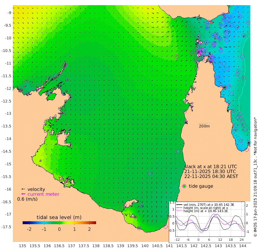 6cm/s -29T +3cm/s rms + 7cm/s -42T. ARA-GOC87 57m 25cm/s 11T +3cm/s rms + 2cm/s -2T. ARA-GOC87 60m 1cm/s 66T +2cm/s rms + 3cm/s 61T. ARA-GOC87 47m -129cm Daru -124cm Bobo Island -78cm Meer Island Barge -106cm Bramble Cay -124cm Unnamed Cay -120cm Pearce Cay -110cm Stephens Island -122cm Merrie England Shoals -133cm Mutacomal Reef -104cm Darnley Island Barge -89cm East Cay -112cm Yorke Island Barge -117cm Rennel Island -114cm Aureed Island -123cm Dungeness Reef -113cm Zagai Island -116cm Yam Island -109cm Dauan Island -104cm Saibai Island -137cm Phipi Reef -128cm Warrior Reef - West -80cm Mabuiag Island Barge -109cm Half Way Island -122cm Coconut Island -115cm Dugong Islet -113cm Poll Island -117cm Kirkcaldie Reef -113cm Suarji Island -110cm Sue Islet -68cm Hawkesbury Island -104cm Alert Patches -102cm Twin Island -78cm Badu Island -100cm St Pauls (Moa Island) -72cm Kubin (Moa Island) -86cm Ince Point -76cm Thursday Island -79cm Nardana Patches -77cm Turtle Head -69cm Round Island -59cm Goods Island -30cm Booby Island -37cm White Rocks Area 18cm Carpentaria -88cm Papou Point -41cm Bampfield Head -19cm Crab Island -30cm Red Wallis Island -67cm Packe Island -119cm Harrington Reef -60cm Herald Camp -27cm Sharp Point -73cm Red Island Point -83cm Possession Island -94cm Alpha Rock -111cm Frederick Point -126cm Wyborn Reef Light -124cm Tetley Island -80cm Triangle Reef -118cm Turtle Head Island -78cm Maclennan Cay -63cm Raine Island -109cm Mcsweeny Reef -107cm Collette Reef -82cm Shadwell Reef -116cm Hannibal Island -107cm Round Point 3cm Vrilya Point -94cm Cape Grenville -90cm Hicks Island -98cm Sir Charles Hardy Island -28cm Harvey Island -88cm Kay Reef -77cm Rocky Island -74cm Chapman Island -66cm Ham Reef -70cm Jubilee Reef -64cm Night Island -67cm Unnamed Reef No. 3 -76cm Morris Island -65cm 1st 3 Mile Opening -69cm Creech Reef -65cm Fife Island -81cm Eden Reef -73cm Stanley Island -80cm Normanby River -23cm Yabooma Island -47cm Hutchison River -21cm Elcho Island -21cm North West Crocodile Island -11cm Cape Wessel -24cm Stevens Island -47cm Guluwuru Island -22cm Hopeful Bay -13cm Auster Point -6cm Two Island Bay -43cm Cadell Strait -91cm Mallison Island -38cm Melville Bay (Gove Harbour) -34cm Truant Island -23cm Cape Arnhem -15cm Cape Grey -12cm Hawk Island 24cm Milner Bay (Groote Eylandt) 19cm Cape Beatrice 42cm West Island 43cm Centre Island -24cm Mornington Island -16cm West Wellesley Islands -55cm Bountiful Island -28cm Albert River Mouth -15cm Sweers Island -40cm Karumba -55cm Nassau River Offshore -66cm Christmas Creek -48cm Archer River -32cm Boyd Point -43cm Weipa (Humbug Point) -7cm Pennefather River -10cm Cullen Point