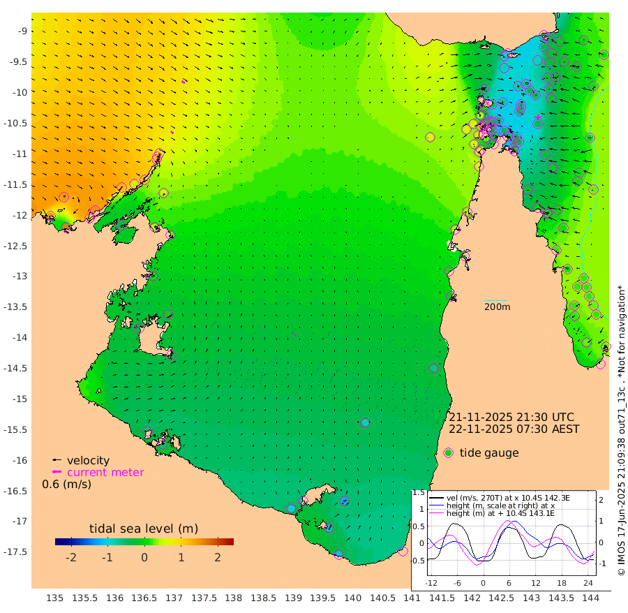21cm/s 129T +3cm/s rms + 7cm/s -42T. ARA-GOC87 57m 16cm/s 9T +3cm/s rms + 2cm/s -2T. ARA-GOC87 60m 24cm/s 125T +2cm/s rms + 3cm/s 61T. ARA-GOC87 47m -41cm Daru -36cm Bobo Island 12cm Meer Island Barge 1cm Bramble Cay -17cm Unnamed Cay -25cm Pearce Cay -9cm Stephens Island -10cm Merrie England Shoals -38cm Mutacomal Reef -13cm Darnley Island Barge 11cm East Cay -30cm Yorke Island Barge -23cm Rennel Island -40cm Aureed Island -44cm Dungeness Reef -74cm Zagai Island -68cm Yam Island -91cm Dauan Island -98cm Saibai Island -88cm Phipi Reef -90cm Warrior Reef - West -50cm Mabuiag Island Barge -21cm Half Way Island -41cm Coconut Island -35cm Dugong Islet -53cm Poll Island -45cm Kirkcaldie Reef -70cm Suarji Island -60cm Sue Islet 42cm Hawkesbury Island -44cm Alert Patches -48cm Twin Island 17cm Badu Island -58cm St Pauls (Moa Island) 15cm Kubin (Moa Island) -31cm Ince Point -16cm Thursday Island -21cm Nardana Patches 4cm Turtle Head 34cm Round Island 45cm Goods Island 67cm Booby Island 59cm White Rocks Area 62cm Carpentaria -38cm Papou Point 87cm Bampfield Head 63cm Crab Island 53cm Red Wallis Island 23cm Packe Island -36cm Harrington Reef 46cm Herald Camp -31cm Sharp Point 2cm Red Island Point -9cm Possession Island -49cm Alpha Rock -45cm Frederick Point -34cm Wyborn Reef Light -39cm Tetley Island -4cm Triangle Reef -7cm Turtle Head Island 8cm Maclennan Cay 25cm Raine Island -17cm Mcsweeny Reef -13cm Collette Reef 6cm Shadwell Reef -10cm Hannibal Island 5cm Round Point 65cm Vrilya Point 6cm Cape Grenville 11cm Hicks Island 0cm Sir Charles Hardy Island 2cm Harvey Island 15cm Kay Reef 16cm Rocky Island 14cm Chapman Island 17cm Ham Reef 18cm Jubilee Reef 15cm Night Island 17cm Unnamed Reef No. 3 22cm Morris Island 29cm 1st 3 Mile Opening 21cm Creech Reef 16cm Fife Island 29cm Eden Reef 25cm Stanley Island 25cm Normanby River 148cm Yabooma Island 163cm Hutchison River 147cm Elcho Island 137cm North West Crocodile Island 78cm Cape Wessel 123cm Stevens Island 50cm Guluwuru Island 113cm Hopeful Bay 102cm Auster Point 107cm Two Island Bay 113cm Cadell Strait -37cm Mallison Island 50cm Melville Bay (Gove Harbour) 57cm Truant Island 26cm Cape Arnhem 7cm Cape Grey -6cm Hawk Island -20cm Milner Bay (Groote Eylandt) -31cm Cape Beatrice -63cm West Island -59cm Centre Island -95cm Mornington Island -101cm West Wellesley Islands -121cm Bountiful Island -107cm Albert River Mouth -109cm Sweers Island -108cm Karumba -89cm Nassau River Offshore -62cm Christmas Creek -7cm Archer River 9cm Boyd Point 13cm Weipa (Humbug Point) 39cm Pennefather River 42cm Cullen Point