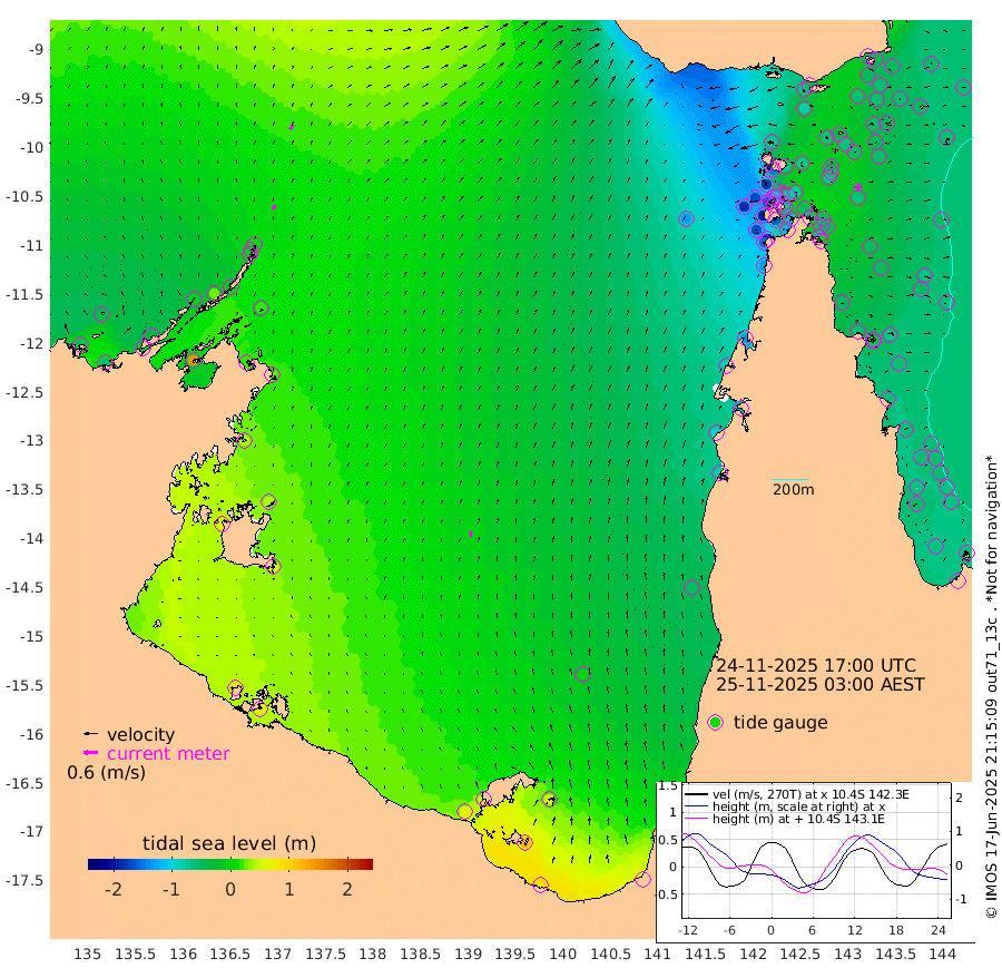 21cm/s 34T +3cm/s rms + 7cm/s -42T. ARA-GOC87 57m 23cm/s 1T +3cm/s rms + 2cm/s -2T. ARA-GOC87 60m 25cm/s 37T +2cm/s rms + 3cm/s 61T. ARA-GOC87 47m -50cm Daru -45cm Bobo Island -53cm Meer Island Barge -52cm Bramble Cay -53cm Unnamed Cay -56cm Pearce Cay -58cm Stephens Island -49cm Merrie England Shoals -48cm Mutacomal Reef -49cm Darnley Island Barge -60cm East Cay -46cm Yorke Island Barge -58cm Rennel Island -47cm Aureed Island -64cm Dungeness Reef -43cm Zagai Island -62cm Yam Island -67cm Dauan Island -42cm Saibai Island -79cm Phipi Reef -53cm Warrior Reef - West -69cm Mabuiag Island Barge -58cm Half Way Island -54cm Coconut Island -60cm Dugong Islet -58cm Poll Island -68cm Kirkcaldie Reef -68cm Suarji Island -43cm Sue Islet -173cm Hawkesbury Island -80cm Alert Patches -76cm Twin Island -146cm Badu Island -74cm St Pauls (Moa Island) -146cm Kubin (Moa Island) -95cm Ince Point -110cm Thursday Island -106cm Nardana Patches -137cm Turtle Head -157cm Round Island -171cm Goods Island -182cm Booby Island -172cm White Rocks Area -132cm Carpentaria -72cm Papou Point -198cm Bampfield Head -151cm Crab Island -170cm Red Wallis Island -163cm Packe Island -59cm Harrington Reef -196cm Herald Camp -7cm Sharp Point -120cm Red Island Point -106cm Possession Island -52cm Alpha Rock -66cm Frederick Point -48cm Wyborn Reef Light -49cm Tetley Island -51cm Triangle Reef -68cm Turtle Head Island -62cm Maclennan Cay -58cm Raine Island -49cm Mcsweeny Reef -46cm Collette Reef -49cm Shadwell Reef -49cm Hannibal Island -58cm Round Point -131cm Vrilya Point -57cm Cape Grenville -63cm Hicks Island -68cm Sir Charles Hardy Island -19cm Harvey Island -54cm Kay Reef -58cm Rocky Island -55cm Chapman Island -53cm Ham Reef -54cm Jubilee Reef -54cm Night Island -54cm Unnamed Reef No. 3 -60cm Morris Island -65cm 1st 3 Mile Opening -60cm Creech Reef -49cm Fife Island -65cm Eden Reef -59cm Stanley Island -60cm Normanby River -49cm Yabooma Island -54cm Hutchison River -36cm Elcho Island -36cm North West Crocodile Island 10cm Cape Wessel -5cm Stevens Island 24cm Guluwuru Island -10cm Hopeful Bay -4cm Auster Point -11cm Two Island Bay -10cm Cadell Strait 145cm Mallison Island 19cm Melville Bay (Gove Harbour) 18cm Truant Island 23cm Cape Arnhem 39cm Cape Grey 41cm Hawk Island 70cm Milner Bay (Groote Eylandt) 64cm Cape Beatrice 84cm West Island 80cm Centre Island 59cm Mornington Island 69cm West Wellesley Islands 60cm Bountiful Island 96cm Albert River Mouth 126cm Sweers Island 73cm Karumba -2cm Nassau River Offshore -52cm Christmas Creek -82cm Archer River -95cm Boyd Point -113cm Weipa (Humbug Point) -87cm Pennefather River -129cm Cullen Point