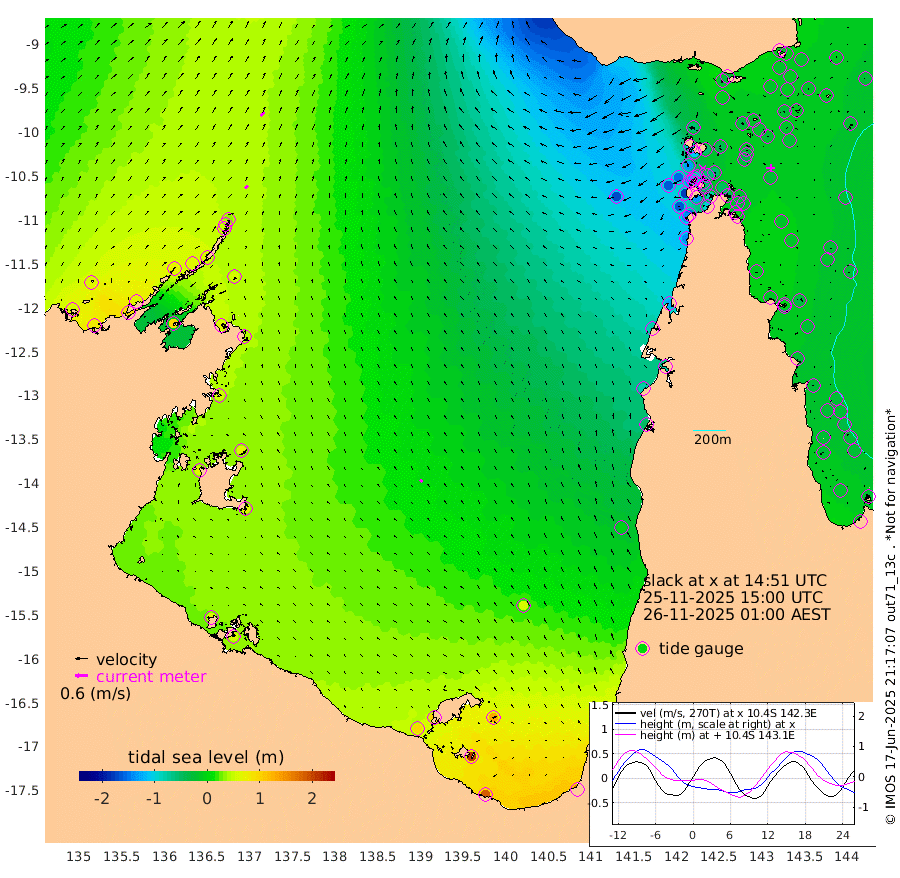 17cm/s 51T +3cm/s rms + 7cm/s -42T. ARA-GOC87 57m 16cm/s -46T +3cm/s rms + 2cm/s -2T. ARA-GOC87 60m 26cm/s 44T +2cm/s rms + 3cm/s 61T. ARA-GOC87 47m -14cm Daru -12cm Bobo Island -17cm Meer Island Barge -13cm Bramble Cay -14cm Unnamed Cay -14cm Pearce Cay -19cm Stephens Island -15cm Merrie England Shoals -18cm Mutacomal Reef -13cm Darnley Island Barge -24cm East Cay -12cm Yorke Island Barge -24cm Rennel Island -17cm Aureed Island -20cm Dungeness Reef -19cm Zagai Island -34cm Yam Island -24cm Dauan Island -24cm Saibai Island -8cm Phipi Reef -18cm Warrior Reef - West -55cm Mabuiag Island Barge -23cm Half Way Island -29cm Coconut Island -27cm Dugong Islet -31cm Poll Island -36cm Kirkcaldie Reef -44cm Suarji Island -25cm Sue Islet -132cm Hawkesbury Island -59cm Alert Patches -58cm Twin Island -108cm Badu Island -53cm St Pauls (Moa Island) -109cm Kubin (Moa Island) -75cm Ince Point -90cm Thursday Island -85cm Nardana Patches -104cm Turtle Head -118cm Round Island -134cm Goods Island -160cm Booby Island -154cm White Rocks Area -170cm Carpentaria -56cm Papou Point -180cm Bampfield Head -137cm Crab Island -159cm Red Wallis Island -132cm Packe Island -35cm Harrington Reef -154cm Herald Camp -7cm Sharp Point -93cm Red Island Point -77cm Possession Island -49cm Alpha Rock -47cm Frederick Point -25cm Wyborn Reef Light -29cm Tetley Island -23cm Triangle Reef -29cm Turtle Head Island -29cm Maclennan Cay -26cm Raine Island -19cm Mcsweeny Reef -15cm Collette Reef -17cm Shadwell Reef -12cm Hannibal Island -20cm Round Point -135cm Vrilya Point -24cm Cape Grenville -23cm Hicks Island -32cm Sir Charles Hardy Island -7cm Harvey Island -25cm Kay Reef -23cm Rocky Island -26cm Chapman Island -29cm Ham Reef -24cm Jubilee Reef -24cm Night Island -32cm Unnamed Reef No. 3 -25cm Morris Island -27cm 1st 3 Mile Opening -28cm Creech Reef -26cm Fife Island -21cm Eden Reef -26cm Stanley Island -23cm Normanby River 57cm Yabooma Island 76cm Hutchison River 67cm Elcho Island 67cm North West Crocodile Island 35cm Cape Wessel 69cm Stevens Island 63cm Guluwuru Island 62cm Hopeful Bay 49cm Auster Point 49cm Two Island Bay 91cm Cadell Strait 94cm Mallison Island 61cm Melville Bay (Gove Harbour) 53cm Truant Island 43cm Cape Arnhem 56cm Cape Grey 62cm Hawk Island 66cm Milner Bay (Groote Eylandt) 64cm Cape Beatrice 61cm West Island 58cm Centre Island 98cm Mornington Island 96cm West Wellesley Islands 135cm Bountiful Island 183cm Albert River Mouth 210cm Sweers Island 170cm Karumba 54cm Nassau River Offshore -2cm Christmas Creek -49cm Archer River -79cm Boyd Point -79cm Weipa (Humbug Point) -80cm Pennefather River -125cm Cullen Point