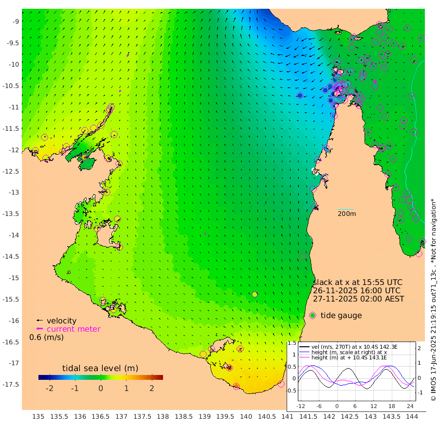 20cm/s 53T +3cm/s rms + 7cm/s -42T. ARA-GOC87 57m 17cm/s -37T +3cm/s rms + 2cm/s -2T. ARA-GOC87 60m 28cm/s 46T +2cm/s rms + 3cm/s 61T. ARA-GOC87 47m -26cm Daru -24cm Bobo Island -14cm Meer Island Barge -16cm Bramble Cay -23cm Unnamed Cay -23cm Pearce Cay -24cm Stephens Island -22cm Merrie England Shoals -32cm Mutacomal Reef -15cm Darnley Island Barge -23cm East Cay -19cm Yorke Island Barge -33cm Rennel Island -26cm Aureed Island -35cm Dungeness Reef -38cm Zagai Island -56cm Yam Island -47cm Dauan Island -45cm Saibai Island -34cm Phipi Reef -40cm Warrior Reef - West -74cm Mabuiag Island Barge -33cm Half Way Island -43cm Coconut Island -39cm Dugong Islet -48cm Poll Island -54cm Kirkcaldie Reef -64cm Suarji Island -40cm Sue Islet -147cm Hawkesbury Island -76cm Alert Patches -77cm Twin Island -126cm Badu Island -74cm St Pauls (Moa Island) -125cm Kubin (Moa Island) -92cm Ince Point -106cm Thursday Island -102cm Nardana Patches -119cm Turtle Head -129cm Round Island -146cm Goods Island -167cm Booby Island -164cm White Rocks Area -166cm Carpentaria -74cm Papou Point -180cm Bampfield Head -141cm Crab Island -168cm Red Wallis Island -146cm Packe Island -48cm Harrington Reef -163cm Herald Camp -14cm Sharp Point -109cm Red Island Point -90cm Possession Island -64cm Alpha Rock -63cm Frederick Point -37cm Wyborn Reef Light -42cm Tetley Island -25cm Triangle Reef -38cm Turtle Head Island -29cm Maclennan Cay -22cm Raine Island -24cm Mcsweeny Reef -19cm Collette Reef -15cm Shadwell Reef -16cm Hannibal Island -22cm Round Point -135cm Vrilya Point -25cm Cape Grenville -23cm Hicks Island -33cm Sir Charles Hardy Island -7cm Harvey Island -24cm Kay Reef -20cm Rocky Island -22cm Chapman Island -24cm Ham Reef -20cm Jubilee Reef -21cm Night Island -28cm Unnamed Reef No. 3 -22cm Morris Island -22cm 1st 3 Mile Opening -24cm Creech Reef -19cm Fife Island -16cm Eden Reef -21cm Stanley Island -20cm Normanby River 45cm Yabooma Island 59cm Hutchison River 53cm Elcho Island 51cm North West Crocodile Island 34cm Cape Wessel 61cm Stevens Island 62cm Guluwuru Island 57cm Hopeful Bay 47cm Auster Point 47cm Two Island Bay 82cm Cadell Strait 119cm Mallison Island 60cm Melville Bay (Gove Harbour) 55cm Truant Island 45cm Cape Arnhem 57cm Cape Grey 61cm Hawk Island 67cm Milner Bay (Groote Eylandt) 62cm Cape Beatrice 60cm West Island 57cm Centre Island 90cm Mornington Island 89cm West Wellesley Islands 118cm Bountiful Island 163cm Albert River Mouth 197cm Sweers Island 150cm Karumba 41cm Nassau River Offshore -12cm Christmas Creek -53cm Archer River -80cm Boyd Point -83cm Weipa (Humbug Point) -78cm Pennefather River -126cm Cullen Point