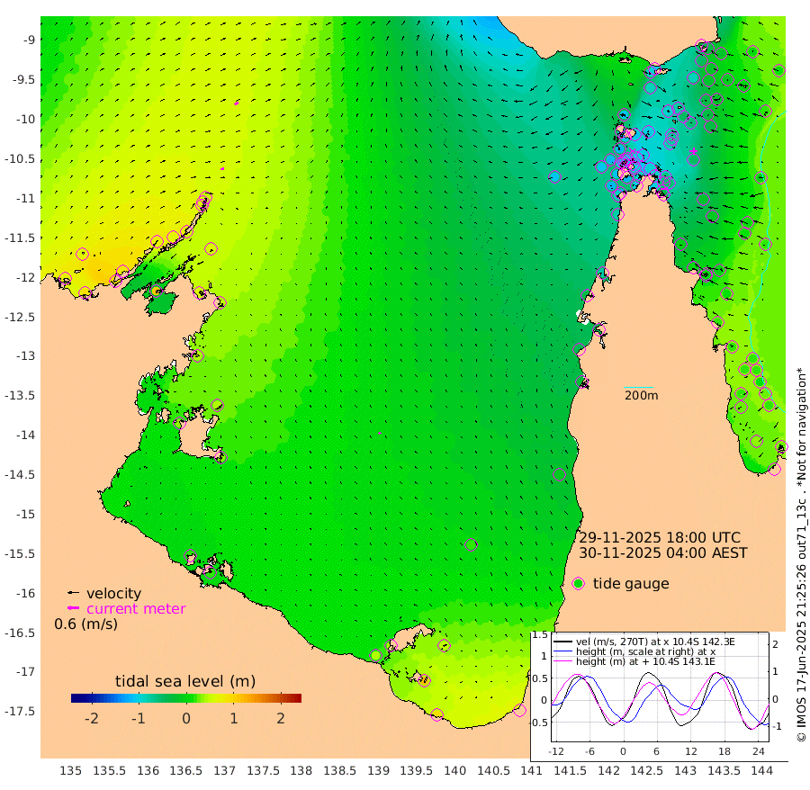 18cm/s 80T +3cm/s rms + 7cm/s -42T. ARA-GOC87 57m 11cm/s -41T +3cm/s rms + 2cm/s -2T. ARA-GOC87 60m 23cm/s 66T +2cm/s rms + 3cm/s 61T. ARA-GOC87 47m -41cm Daru -33cm Bobo Island 17cm Meer Island Barge 2cm Bramble Cay -22cm Unnamed Cay -21cm Pearce Cay -10cm Stephens Island -17cm Merrie England Shoals -49cm Mutacomal Reef -2cm Darnley Island Barge 11cm East Cay -22cm Yorke Island Barge -33cm Rennel Island -31cm Aureed Island -51cm Dungeness Reef -81cm Zagai Island -96cm Yam Island -94cm Dauan Island -101cm Saibai Island -83cm Phipi Reef -86cm Warrior Reef - West -107cm Mabuiag Island Barge -34cm Half Way Island -58cm Coconut Island -49cm Dugong Islet -75cm Poll Island -75cm Kirkcaldie Reef -99cm Suarji Island -73cm Sue Islet -118cm Hawkesbury Island -98cm Alert Patches -102cm Twin Island -112cm Badu Island -107cm St Pauls (Moa Island) -108cm Kubin (Moa Island) -106cm Ince Point -109cm Thursday Island -108cm Nardana Patches -103cm Turtle Head -104cm Round Island -103cm Goods Island -108cm Booby Island -113cm White Rocks Area -106cm Carpentaria -100cm Papou Point -109cm Bampfield Head -87cm Crab Island -115cm Red Wallis Island -113cm Packe Island -58cm Harrington Reef -117cm Herald Camp -34cm Sharp Point -102cm Red Island Point -92cm Possession Island -93cm Alpha Rock -83cm Frederick Point -53cm Wyborn Reef Light -63cm Tetley Island -5cm Triangle Reef -40cm Turtle Head Island 1cm Maclennan Cay 21cm Raine Island -17cm Mcsweeny Reef -9cm Collette Reef 10cm Shadwell Reef -5cm Hannibal Island 2cm Round Point -79cm Vrilya Point 0cm Cape Grenville 7cm Hicks Island -4cm Sir Charles Hardy Island 1cm Harvey Island 10cm Kay Reef 17cm Rocky Island 17cm Chapman Island 16cm Ham Reef 18cm Jubilee Reef 16cm Night Island 14cm Unnamed Reef No. 3 20cm Morris Island 23cm 1st 3 Mile Opening 19cm Creech Reef 28cm Fife Island 33cm Eden Reef 23cm Stanley Island 23cm Normanby River 68cm Yabooma Island 84cm Hutchison River 76cm Elcho Island 65cm North West Crocodile Island 47cm Cape Wessel 74cm Stevens Island 66cm Guluwuru Island 74cm Hopeful Bay 63cm Auster Point 64cm Two Island Bay 95cm Cadell Strait 109cm Mallison Island 65cm Melville Bay (Gove Harbour) 64cm Truant Island 48cm Cape Arnhem 43cm Cape Grey 43cm Hawk Island 37cm Milner Bay (Groote Eylandt) 32cm Cape Beatrice 16cm West Island 16cm Centre Island 43cm Mornington Island 41cm West Wellesley Islands 49cm Bountiful Island 86cm Albert River Mouth 114cm Sweers Island 78cm Karumba 15cm Nassau River Offshore -12cm Christmas Creek -26cm Archer River -44cm Boyd Point -42cm Weipa (Humbug Point) -36cm Pennefather River -76cm Cullen Point