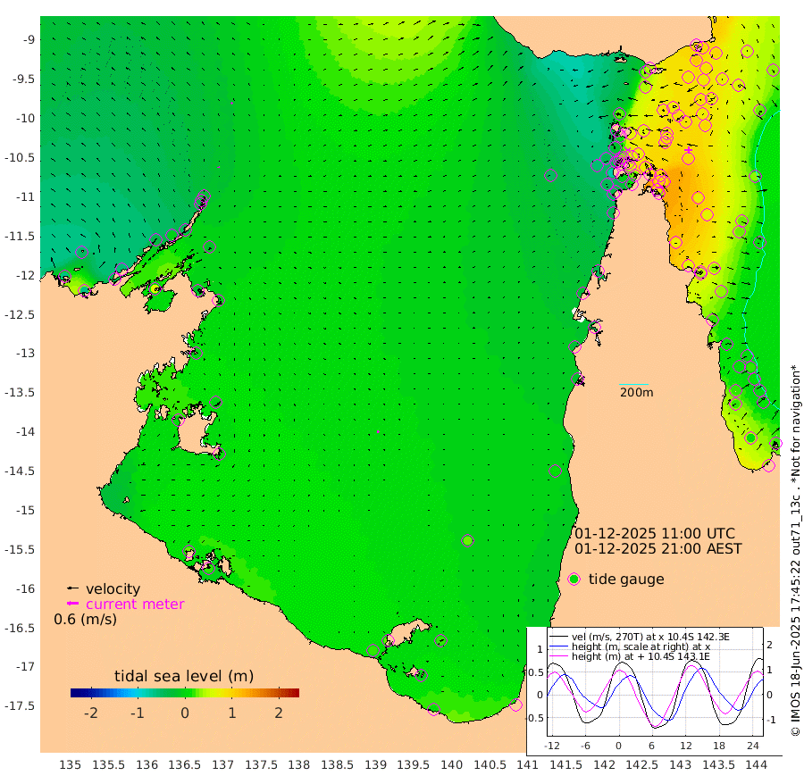 6cm/s -25T +3cm/s rms + 7cm/s -42T. ARA-GOC87 57m 10cm/s 161T +3cm/s rms + 2cm/s -2T. ARA-GOC87 60m 9cm/s -55T +2cm/s rms + 3cm/s 61T. ARA-GOC87 47m 98cm Daru 90cm Bobo Island 27cm Meer Island Barge 59cm Bramble Cay 87cm Unnamed Cay 78cm Pearce Cay 73cm Stephens Island 92cm Merrie England Shoals 109cm Mutacomal Reef 62cm Darnley Island Barge 34cm East Cay 77cm Yorke Island Barge 84cm Rennel Island 77cm Aureed Island 83cm Dungeness Reef 76cm Zagai Island 87cm Yam Island 34cm Dauan Island 42cm Saibai Island 43cm Phipi Reef 79cm Warrior Reef - West 29cm Mabuiag Island Barge 90cm Half Way Island 88cm Coconut Island 95cm Dugong Islet 87cm Poll Island 96cm Kirkcaldie Reef 64cm Suarji Island 85cm Sue Islet -18cm Hawkesbury Island 61cm Alert Patches 72cm Twin Island -17cm Badu Island 71cm St Pauls (Moa Island) 6cm Kubin (Moa Island) 44cm Ince Point 28cm Thursday Island 32cm Nardana Patches 1cm Turtle Head -17cm Round Island -34cm Goods Island -56cm Booby Island -44cm White Rocks Area -48cm Carpentaria 62cm Papou Point -75cm Bampfield Head -45cm Crab Island -38cm Red Wallis Island -3cm Packe Island 103cm Harrington Reef -36cm Herald Camp 30cm Sharp Point 12cm Red Island Point 25cm Possession Island 80cm Alpha Rock 86cm Frederick Point 100cm Wyborn Reef Light 100cm Tetley Island 30cm Triangle Reef 90cm Turtle Head Island 29cm Maclennan Cay 3cm Raine Island 74cm Mcsweeny Reef 64cm Collette Reef 29cm Shadwell Reef 72cm Hannibal Island 58cm Round Point -39cm Vrilya Point 51cm Cape Grenville 37cm Hicks Island 35cm Sir Charles Hardy Island 15cm Harvey Island 37cm Kay Reef 15cm Rocky Island 4cm Chapman Island 6cm Ham Reef 14cm Jubilee Reef 17cm Night Island 9cm Unnamed Reef No. 3 17cm Morris Island 1cm 1st 3 Mile Opening 11cm Creech Reef 16cm Fife Island 10cm Eden Reef 18cm Stanley Island 27cm Normanby River -61cm Yabooma Island -63cm Hutchison River -59cm Elcho Island -48cm North West Crocodile Island -25cm Cape Wessel -35cm Stevens Island -7cm Guluwuru Island -46cm Hopeful Bay -41cm Auster Point -29cm Two Island Bay -30cm Cadell Strait 63cm Mallison Island -16cm Melville Bay (Gove Harbour) -19cm Truant Island -12cm Cape Arnhem -7cm Cape Grey -2cm Hawk Island 0cm Milner Bay (Groote Eylandt) 10cm Cape Beatrice 25cm West Island 17cm Centre Island 24cm Mornington Island 21cm West Wellesley Islands 15cm Bountiful Island 12cm Albert River Mouth -2cm Sweers Island 15cm Karumba 26cm Nassau River Offshore 13cm Christmas Creek -19cm Archer River -26cm Boyd Point -37cm Weipa (Humbug Point) -25cm Pennefather River -39cm Cullen Point