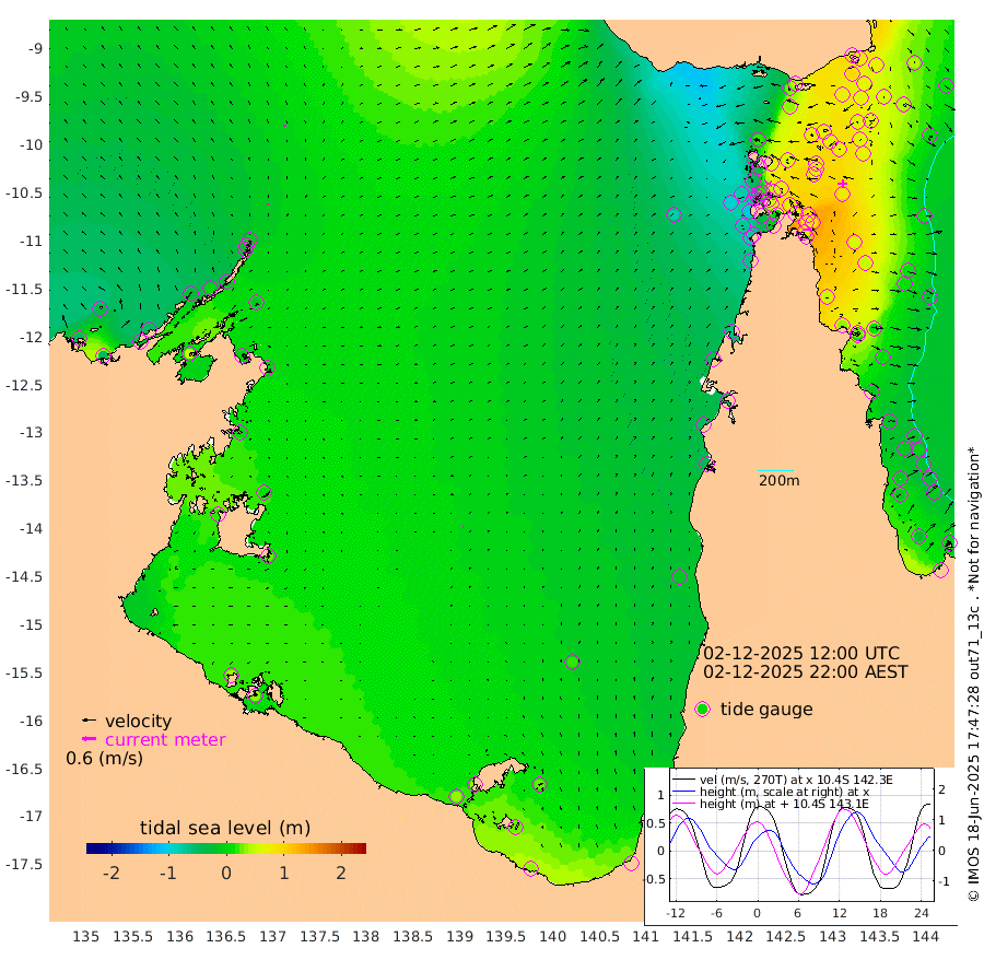 9cm/s 17T +3cm/s rms + 7cm/s -42T. ARA-GOC87 57m 3cm/s 116T +3cm/s rms + 2cm/s -2T. ARA-GOC87 60m 9cm/s -1T +2cm/s rms + 3cm/s 61T. ARA-GOC87 47m 83cm Daru 77cm Bobo Island 7cm Meer Island Barge 38cm Bramble Cay 68cm Unnamed Cay 63cm Pearce Cay 53cm Stephens Island 71cm Merrie England Shoals 93cm Mutacomal Reef 44cm Darnley Island Barge 11cm East Cay 63cm Yorke Island Barge 66cm Rennel Island 64cm Aureed Island 70cm Dungeness Reef 72cm Zagai Island 79cm Yam Island 28cm Dauan Island 38cm Saibai Island 36cm Phipi Reef 72cm Warrior Reef - West 21cm Mabuiag Island Barge 74cm Half Way Island 75cm Coconut Island 80cm Dugong Islet 77cm Poll Island 82cm Kirkcaldie Reef 58cm Suarji Island 77cm Sue Islet -48cm Hawkesbury Island 49cm Alert Patches 61cm Twin Island -42cm Badu Island 63cm St Pauls (Moa Island) -18cm Kubin (Moa Island) 30cm Ince Point 11cm Thursday Island 16cm Nardana Patches -23cm Turtle Head -42cm Round Island -66cm Goods Island -91cm Booby Island -76cm White Rocks Area -76cm Carpentaria 54cm Papou Point -112cm Bampfield Head -76cm Crab Island -72cm Red Wallis Island -34cm Packe Island 88cm Harrington Reef -71cm Herald Camp 31cm Sharp Point -9cm Red Island Point 11cm Possession Island 71cm Alpha Rock 73cm Frederick Point 86cm Wyborn Reef Light 87cm Tetley Island 12cm Triangle Reef 76cm Turtle Head Island 8cm Maclennan Cay -20cm Raine Island 56cm Mcsweeny Reef 45cm Collette Reef 9cm Shadwell Reef 52cm Hannibal Island 35cm Round Point -67cm Vrilya Point 28cm Cape Grenville 15cm Hicks Island 9cm Sir Charles Hardy Island 8cm Harvey Island 12cm Kay Reef -8cm Rocky Island -20cm Chapman Island -17cm Ham Reef -9cm Jubilee Reef -4cm Night Island -15cm Unnamed Reef No. 3 -8cm Morris Island -23cm 1st 3 Mile Opening -12cm Creech Reef -9cm Fife Island -16cm Eden Reef -7cm Stanley Island 2cm Normanby River -52cm Yabooma Island -52cm Hutchison River -48cm Elcho Island -36cm North West Crocodile Island -15cm Cape Wessel -23cm Stevens Island 2cm Guluwuru Island -36cm Hopeful Bay -29cm Auster Point -17cm Two Island Bay -17cm Cadell Strait 60cm Mallison Island -6cm Melville Bay (Gove Harbour) -9cm Truant Island -4cm Cape Arnhem 5cm Cape Grey 10cm Hawk Island 19cm Milner Bay (Groote Eylandt) 24cm Cape Beatrice 42cm West Island 36cm Centre Island 32cm Mornington Island 30cm West Wellesley Islands 26cm Bountiful Island 33cm Albert River Mouth 29cm Sweers Island 31cm Karumba 17cm Nassau River Offshore -8cm Christmas Creek -44cm Archer River -52cm Boyd Point -67cm Weipa (Humbug Point) -46cm Pennefather River -67cm Cullen Point