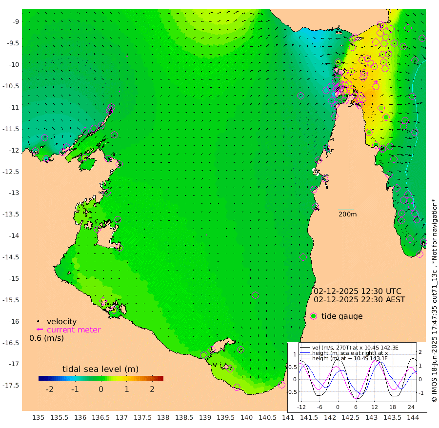8cm/s -1T +3cm/s rms + 7cm/s -42T. ARA-GOC87 57m 3cm/s 83T +3cm/s rms + 2cm/s -2T. ARA-GOC87 60m 8cm/s -19T +2cm/s rms + 3cm/s 61T. ARA-GOC87 47m 62cm Daru 55cm Bobo Island -17cm Meer Island Barge 11cm Bramble Cay 42cm Unnamed Cay 39cm Pearce Cay 26cm Stephens Island 44cm Merrie England Shoals 71cm Mutacomal Reef 19cm Darnley Island Barge -16cm East Cay 40cm Yorke Island Barge 44cm Rennel Island 44cm Aureed Island 54cm Dungeness Reef 68cm Zagai Island 74cm Yam Island 36cm Dauan Island 47cm Saibai Island 40cm Phipi Reef 68cm Warrior Reef - West 32cm Mabuiag Island Barge 52cm Half Way Island 59cm Coconut Island 61cm Dugong Islet 68cm Poll Island 69cm Kirkcaldie Reef 57cm Suarji Island 69cm Sue Islet -39cm Hawkesbury Island 49cm Alert Patches 60cm Twin Island -31cm Badu Island 65cm St Pauls (Moa Island) -12cm Kubin (Moa Island) 34cm Ince Point 18cm Thursday Island 22cm Nardana Patches -16cm Turtle Head -36cm Round Island -57cm Goods Island -77cm Booby Island -64cm White Rocks Area -60cm Carpentaria 54cm Papou Point -102cm Bampfield Head -63cm Crab Island -59cm Red Wallis Island -26cm Packe Island 69cm Harrington Reef -64cm Herald Camp 33cm Sharp Point -4cm Red Island Point 13cm Possession Island 68cm Alpha Rock 64cm Frederick Point 67cm Wyborn Reef Light 71cm Tetley Island -6cm Triangle Reef 55cm Turtle Head Island -15cm Maclennan Cay -41cm Raine Island 33cm Mcsweeny Reef 22cm Collette Reef -13cm Shadwell Reef 25cm Hannibal Island 7cm Round Point -53cm Vrilya Point 3cm Cape Grenville -11cm Hicks Island -17cm Sir Charles Hardy Island 0cm Harvey Island -15cm Kay Reef -32cm Rocky Island -41cm Chapman Island -39cm Ham Reef -32cm Jubilee Reef -25cm Night Island -37cm Unnamed Reef No. 3 -33cm Morris Island -45cm 1st 3 Mile Opening -35cm Creech Reef -33cm Fife Island -45cm Eden Reef -33cm Stanley Island -27cm Normanby River -72cm Yabooma Island -77cm Hutchison River -67cm Elcho Island -54cm North West Crocodile Island -30cm Cape Wessel -41cm Stevens Island -19cm Guluwuru Island -53cm Hopeful Bay -45cm Auster Point -35cm Two Island Bay -42cm Cadell Strait 31cm Mallison Island -24cm Melville Bay (Gove Harbour) -28cm Truant Island -16cm Cape Arnhem -4cm Cape Grey 5cm Hawk Island 20cm Milner Bay (Groote Eylandt) 25cm Cape Beatrice 48cm West Island 43cm Centre Island 30cm Mornington Island 30cm West Wellesley Islands 19cm Bountiful Island 30cm Albert River Mouth 27cm Sweers Island 27cm Karumba 14cm Nassau River Offshore -11cm Christmas Creek -42cm Archer River -48cm Boyd Point -64cm Weipa (Humbug Point) -38cm Pennefather River -56cm Cullen Point
