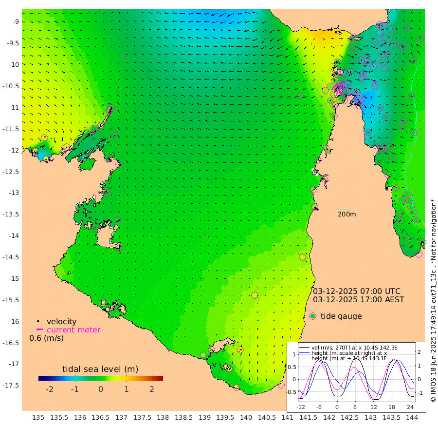 22cm/s -82T +3cm/s rms + 7cm/s -42T. ARA-GOC87 57m 10cm/s -104T +3cm/s rms + 2cm/s -2T. ARA-GOC87 60m 17cm/s -87T +2cm/s rms + 3cm/s 61T. ARA-GOC87 47m -79cm Daru -77cm Bobo Island -11cm Meer Island Barge -35cm Bramble Cay -64cm Unnamed Cay -66cm Pearce Cay -53cm Stephens Island -69cm Merrie England Shoals -85cm Mutacomal Reef -46cm Darnley Island Barge -8cm East Cay -64cm Yorke Island Barge -67cm Rennel Island -68cm Aureed Island -72cm Dungeness Reef -76cm Zagai Island -69cm Yam Island -29cm Dauan Island -33cm Saibai Island -34cm Phipi Reef -66cm Warrior Reef - West -34cm Mabuiag Island Barge -74cm Half Way Island -85cm Coconut Island -78cm Dugong Islet -82cm Poll Island -80cm Kirkcaldie Reef -71cm Suarji Island -79cm Sue Islet 17cm Hawkesbury Island -72cm Alert Patches -77cm Twin Island 3cm Badu Island -77cm St Pauls (Moa Island) -8cm Kubin (Moa Island) -52cm Ince Point -39cm Thursday Island -42cm Nardana Patches -11cm Turtle Head 8cm Round Island 20cm Goods Island 31cm Booby Island 25cm White Rocks Area 5cm Carpentaria -65cm Papou Point 36cm Bampfield Head 20cm Crab Island 21cm Red Wallis Island 2cm Packe Island -93cm Harrington Reef 45cm Herald Camp -29cm Sharp Point -8cm Red Island Point -39cm Possession Island -78cm Alpha Rock -83cm Frederick Point -89cm Wyborn Reef Light -91cm Tetley Island -18cm Triangle Reef -93cm Turtle Head Island -9cm Maclennan Cay 11cm Raine Island -59cm Mcsweeny Reef -49cm Collette Reef -15cm Shadwell Reef -54cm Hannibal Island -35cm Round Point 5cm Vrilya Point -27cm Cape Grenville -14cm Hicks Island -2cm Sir Charles Hardy Island -7cm Harvey Island -10cm Kay Reef 8cm Rocky Island 15cm Chapman Island 14cm Ham Reef 5cm Jubilee Reef -2cm Night Island 10cm Unnamed Reef No. 3 4cm Morris Island 8cm 1st 3 Mile Opening 5cm Creech Reef 6cm Fife Island 11cm Eden Reef 3cm Stanley Island 4cm Normanby River 74cm Yabooma Island 63cm Hutchison River 59cm Elcho Island 61cm North West Crocodile Island 11cm Cape Wessel 29cm Stevens Island -16cm Guluwuru Island 46cm Hopeful Bay 21cm Auster Point 23cm Two Island Bay 27cm Cadell Strait -83cm Mallison Island -2cm Melville Bay (Gove Harbour) -8cm Truant Island -9cm Cape Arnhem -3cm Cape Grey -2cm Hawk Island -1cm Milner Bay (Groote Eylandt) 3cm Cape Beatrice 1cm West Island -2cm Centre Island 32cm Mornington Island 32cm West Wellesley Islands 83cm Bountiful Island 73cm Albert River Mouth 73cm Sweers Island 80cm Karumba 48cm Nassau River Offshore 45cm Christmas Creek 37cm Archer River 28cm Boyd Point 50cm Weipa (Humbug Point) -4cm Pennefather River 26cm Cullen Point