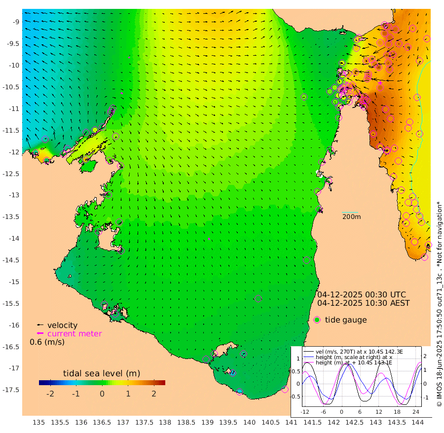 20cm/s 109T +3cm/s rms + 7cm/s -42T. ARA-GOC87 57m 19cm/s 157T +3cm/s rms + 2cm/s -2T. ARA-GOC87 60m 12cm/s 102T +2cm/s rms + 3cm/s 61T. ARA-GOC87 47m 181cm Daru 179cm Bobo Island 109cm Meer Island Barge 140cm Bramble Cay 174cm Unnamed Cay 172cm Pearce Cay 164cm Stephens Island 174cm Merrie England Shoals 184cm Mutacomal Reef 154cm Darnley Island Barge 115cm East Cay 166cm Yorke Island Barge 172cm Rennel Island 170cm Aureed Island 172cm Dungeness Reef 150cm Zagai Island 145cm Yam Island 93cm Dauan Island 87cm Saibai Island 116cm Phipi Reef 147cm Warrior Reef - West 77cm Mabuiag Island Barge 171cm Half Way Island 180cm Coconut Island 177cm Dugong Islet 163cm Poll Island 169cm Kirkcaldie Reef 156cm Suarji Island 156cm Sue Islet 45cm Hawkesbury Island 147cm Alert Patches 149cm Twin Island 55cm Badu Island 143cm St Pauls (Moa Island) 75cm Kubin (Moa Island) 115cm Ince Point 99cm Thursday Island 103cm Nardana Patches 83cm Turtle Head 68cm Round Island 49cm Goods Island 27cm Booby Island 34cm White Rocks Area 26cm Carpentaria 125cm Papou Point 59cm Bampfield Head 19cm Crab Island 29cm Red Wallis Island 67cm Packe Island 194cm Harrington Reef 45cm Herald Camp 39cm Sharp Point 64cm Red Island Point 115cm Possession Island 141cm Alpha Rock 166cm Frederick Point 185cm Wyborn Reef Light 181cm Tetley Island 104cm Triangle Reef 195cm Turtle Head Island 107cm Maclennan Cay 78cm Raine Island 162cm Mcsweeny Reef 150cm Collette Reef 108cm Shadwell Reef 164cm Hannibal Island 142cm Round Point 15cm Vrilya Point 131cm Cape Grenville 120cm Hicks Island 119cm Sir Charles Hardy Island 40cm Harvey Island 112cm Kay Reef 90cm Rocky Island 80cm Chapman Island 77cm Ham Reef 88cm Jubilee Reef 88cm Night Island 81cm Unnamed Reef No. 3 96cm Morris Island 91cm 1st 3 Mile Opening 92cm Creech Reef 88cm Fife Island 100cm Eden Reef 97cm Stanley Island 102cm Normanby River -73cm Yabooma Island -50cm Hutchison River -66cm Elcho Island -76cm North West Crocodile Island -9cm Cape Wessel -39cm Stevens Island 47cm Guluwuru Island -48cm Hopeful Bay -19cm Auster Point -27cm Two Island Bay -22cm Cadell Strait 123cm Mallison Island 25cm Melville Bay (Gove Harbour) 32cm Truant Island 27cm Cape Arnhem 10cm Cape Grey 1cm Hawk Island -31cm Milner Bay (Groote Eylandt) -32cm Cape Beatrice -49cm West Island -43cm Centre Island -34cm Mornington Island -34cm West Wellesley Islands -67cm Bountiful Island -100cm Albert River Mouth -111cm Sweers Island -95cm Karumba -21cm Nassau River Offshore 10cm Christmas Creek 13cm Archer River 23cm Boyd Point 12cm Weipa (Humbug Point) 22cm Pennefather River 10cm Cullen Point