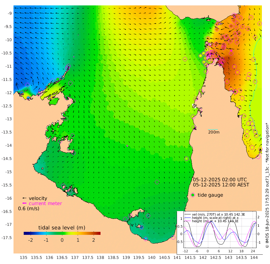 12cm/s 119T +3cm/s rms + 7cm/s -42T. ARA-GOC87 57m 28cm/s 160T +3cm/s rms + 2cm/s -2T. ARA-GOC87 60m 3cm/s -170T +2cm/s rms + 3cm/s 61T. ARA-GOC87 47m 177cm Daru 168cm Bobo Island 88cm Meer Island Barge 115cm Bramble Cay 158cm Unnamed Cay 157cm Pearce Cay 145cm Stephens Island 153cm Merrie England Shoals 177cm Mutacomal Reef 137cm Darnley Island Barge 91cm East Cay 158cm Yorke Island Barge 163cm Rennel Island 164cm Aureed Island 176cm Dungeness Reef 175cm Zagai Island 173cm Yam Island 149cm Dauan Island 141cm Saibai Island 159cm Phipi Reef 180cm Warrior Reef - West 122cm Mabuiag Island Barge 163cm Half Way Island 180cm Coconut Island 177cm Dugong Islet 177cm Poll Island 180cm Kirkcaldie Reef 184cm Suarji Island 174cm Sue Islet 81cm Hawkesbury Island 174cm Alert Patches 175cm Twin Island 93cm Badu Island 178cm St Pauls (Moa Island) 109cm Kubin (Moa Island) 148cm Ince Point 134cm Thursday Island 138cm Nardana Patches 117cm Turtle Head 96cm Round Island 81cm Goods Island 61cm Booby Island 64cm White Rocks Area 57cm Carpentaria 150cm Papou Point 85cm Bampfield Head 48cm Crab Island 64cm Red Wallis Island 100cm Packe Island 190cm Harrington Reef 83cm Herald Camp 53cm Sharp Point 93cm Red Island Point 138cm Possession Island 163cm Alpha Rock 180cm Frederick Point 180cm Wyborn Reef Light 182cm Tetley Island 93cm Triangle Reef 184cm Turtle Head Island 91cm Maclennan Cay 57cm Raine Island 148cm Mcsweeny Reef 135cm Collette Reef 91cm Shadwell Reef 143cm Hannibal Island 117cm Round Point 43cm Vrilya Point 108cm Cape Grenville 98cm Hicks Island 103cm Sir Charles Hardy Island 34cm Harvey Island 86cm Kay Reef 69cm Rocky Island 60cm Chapman Island 58cm Ham Reef 68cm Jubilee Reef 69cm Night Island 61cm Unnamed Reef No. 3 71cm Morris Island 70cm 1st 3 Mile Opening 71cm Creech Reef 66cm Fife Island 68cm Eden Reef 72cm Stanley Island 72cm Normanby River -139cm Yabooma Island -134cm Hutchison River -140cm Elcho Island -145cm North West Crocodile Island -54cm Cape Wessel -105cm Stevens Island 4cm Guluwuru Island -109cm Hopeful Bay -72cm Auster Point -79cm Two Island Bay -88cm Cadell Strait 99cm Mallison Island -16cm Melville Bay (Gove Harbour) -9cm Truant Island 1cm Cape Arnhem -11cm Cape Grey -18cm Hawk Island -43cm Milner Bay (Groote Eylandt) -40cm Cape Beatrice -44cm West Island -40cm Centre Island -31cm Mornington Island -26cm West Wellesley Islands -63cm Bountiful Island -111cm Albert River Mouth -128cm Sweers Island -103cm Karumba -5cm Nassau River Offshore 32cm Christmas Creek 32cm Archer River 47cm Boyd Point 35cm Weipa (Humbug Point) 40cm Pennefather River 41cm Cullen Point