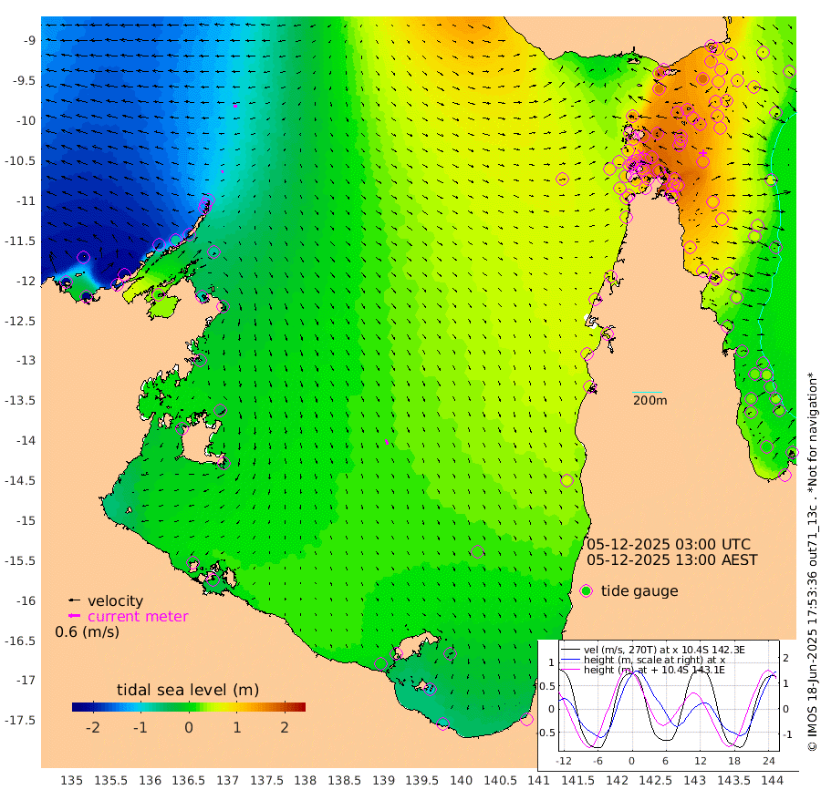 9cm/s -98T +3cm/s rms + 7cm/s -42T. ARA-GOC87 57m 28cm/s 160T +3cm/s rms + 2cm/s -2T. ARA-GOC87 60m 20cm/s -94T +2cm/s rms + 3cm/s 61T. ARA-GOC87 47m 136cm Daru 117cm Bobo Island 41cm Meer Island Barge 62cm Bramble Cay 107cm Unnamed Cay 102cm Pearce Cay 90cm Stephens Island 99cm Merrie England Shoals 134cm Mutacomal Reef 86cm Darnley Island Barge 41cm East Cay 112cm Yorke Island Barge 117cm Rennel Island 119cm Aureed Island 142cm Dungeness Reef 165cm Zagai Island 165cm Yam Island 173cm Dauan Island 165cm Saibai Island 172cm Phipi Reef 174cm Warrior Reef - West 144cm Mabuiag Island Barge 116cm Half Way Island 143cm Coconut Island 137cm Dugong Islet 155cm Poll Island 156cm Kirkcaldie Reef 181cm Suarji Island 158cm Sue Islet 100cm Hawkesbury Island 173cm Alert Patches 169cm Twin Island 113cm Badu Island 180cm St Pauls (Moa Island) 120cm Kubin (Moa Island) 155cm Ince Point 146cm Thursday Island 149cm Nardana Patches 131cm Turtle Head 113cm Round Island 98cm Goods Island 86cm Booby Island 85cm White Rocks Area 84cm Carpentaria 147cm Papou Point 106cm Bampfield Head 70cm Crab Island 89cm Red Wallis Island 115cm Packe Island 147cm Harrington Reef 110cm Herald Camp 59cm Sharp Point 104cm Red Island Point 141cm Possession Island 156cm Alpha Rock 159cm Frederick Point 139cm Wyborn Reef Light 146cm Tetley Island 56cm Triangle Reef 134cm Turtle Head Island 49cm Maclennan Cay 19cm Raine Island 101cm Mcsweeny Reef 89cm Collette Reef 52cm Shadwell Reef 89cm Hannibal Island 62cm Round Point 66cm Vrilya Point 60cm Cape Grenville 50cm Hicks Island 59cm Sir Charles Hardy Island 19cm Harvey Island 39cm Kay Reef 27cm Rocky Island 21cm Chapman Island 20cm Ham Reef 27cm Jubilee Reef 30cm Night Island 22cm Unnamed Reef No. 3 25cm Morris Island 30cm 1st 3 Mile Opening 29cm Creech Reef 23cm Fife Island 14cm Eden Reef 27cm Stanley Island 18cm Normanby River -208cm Yabooma Island -226cm Hutchison River -214cm Elcho Island -212cm North West Crocodile Island -115cm Cape Wessel -178cm Stevens Island -69cm Guluwuru Island -172cm Hopeful Bay -135cm Auster Point -145cm Two Island Bay -179cm Cadell Strait 18cm Mallison Island -76cm Melville Bay (Gove Harbour) -74cm Truant Island -40cm Cape Arnhem -36cm Cape Grey -33cm Hawk Island -38cm Milner Bay (Groote Eylandt) -32cm Cape Beatrice -12cm West Island -7cm Centre Island -4cm Mornington Island 4cm West Wellesley Islands -29cm Bountiful Island -81cm Albert River Mouth -96cm Sweers Island -69cm Karumba 20cm Nassau River Offshore 53cm Christmas Creek 47cm Archer River 63cm Boyd Point 53cm Weipa (Humbug Point) 53cm Pennefather River 67cm Cullen Point