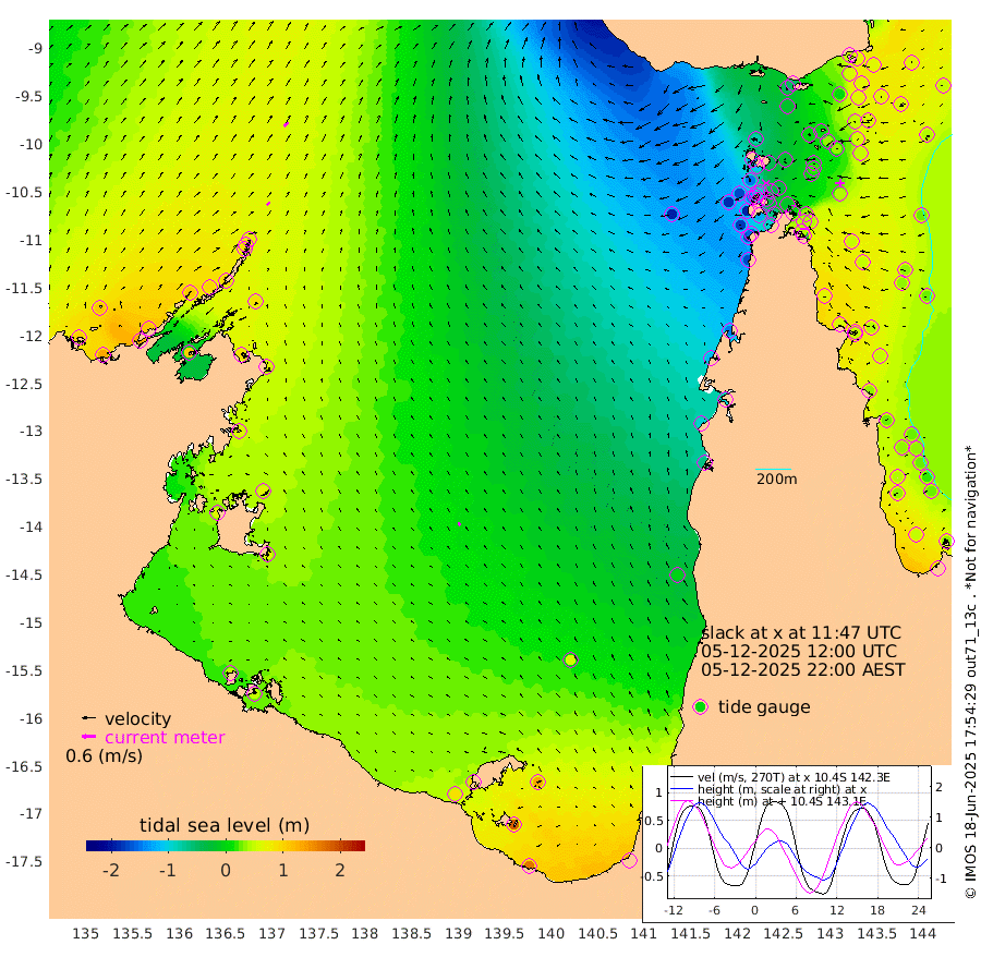 18cm/s 44T +3cm/s rms + 7cm/s -42T. ARA-GOC87 57m 15cm/s -51T +3cm/s rms + 2cm/s -2T. ARA-GOC87 60m 27cm/s 42T +2cm/s rms + 3cm/s 61T. ARA-GOC87 47m 52cm Daru 65cm Bobo Island 45cm Meer Island Barge 63cm Bramble Cay 61cm Unnamed Cay 65cm Pearce Cay 63cm Stephens Island 64cm Merrie England Shoals 55cm Mutacomal Reef 58cm Darnley Island Barge 50cm East Cay 54cm Yorke Island Barge 49cm Rennel Island 55cm Aureed Island 37cm Dungeness Reef 6cm Zagai Island 1cm Yam Island -51cm Dauan Island -49cm Saibai Island -22cm Phipi Reef 5cm Warrior Reef - West -78cm Mabuiag Island Barge 51cm Half Way Island 32cm Coconut Island 44cm Dugong Islet 15cm Poll Island 15cm Kirkcaldie Reef -15cm Suarji Island 8cm Sue Islet -148cm Hawkesbury Island -44cm Alert Patches -31cm Twin Island -139cm Badu Island -38cm St Pauls (Moa Island) -108cm Kubin (Moa Island) -68cm Ince Point -91cm Thursday Island -84cm Nardana Patches -111cm Turtle Head -120cm Round Island -149cm Goods Island -187cm Booby Island -167cm White Rocks Area -191cm Carpentaria -34cm Papou Point -191cm Bampfield Head -166cm Crab Island -175cm Red Wallis Island -126cm Packe Island 43cm Harrington Reef -153cm Herald Camp -8cm Sharp Point -96cm Red Island Point -63cm Possession Island -18cm Alpha Rock 1cm Frederick Point 43cm Wyborn Reef Light 33cm Tetley Island 29cm Triangle Reef 38cm Turtle Head Island 35cm Maclennan Cay 23cm Raine Island 51cm Mcsweeny Reef 50cm Collette Reef 34cm Shadwell Reef 63cm Hannibal Island 60cm Round Point -171cm Vrilya Point 50cm Cape Grenville 48cm Hicks Island 41cm Sir Charles Hardy Island 16cm Harvey Island 45cm Kay Reef 37cm Rocky Island 28cm Chapman Island 24cm Ham Reef 31cm Jubilee Reef 32cm Night Island 24cm Unnamed Reef No. 3 38cm Morris Island 22cm 1st 3 Mile Opening 30cm Creech Reef 37cm Fife Island 50cm Eden Reef 37cm Stanley Island 56cm Normanby River 102cm Yabooma Island 132cm Hutchison River 110cm Elcho Island 110cm North West Crocodile Island 78cm Cape Wessel 108cm Stevens Island 97cm Guluwuru Island 99cm Hopeful Bay 83cm Auster Point 93cm Two Island Bay 133cm Cadell Strait 103cm Mallison Island 89cm Melville Bay (Gove Harbour) 84cm Truant Island 60cm Cape Arnhem 60cm Cape Grey 67cm Hawk Island 61cm Milner Bay (Groote Eylandt) 60cm Cape Beatrice 51cm West Island 46cm Centre Island 92cm Mornington Island 86cm West Wellesley Islands 132cm Bountiful Island 166cm Albert River Mouth 183cm Sweers Island 156cm Karumba 55cm Nassau River Offshore -1cm Christmas Creek -63cm Archer River -93cm Boyd Point -93cm Weipa (Humbug Point) -113cm Pennefather River -146cm Cullen Point