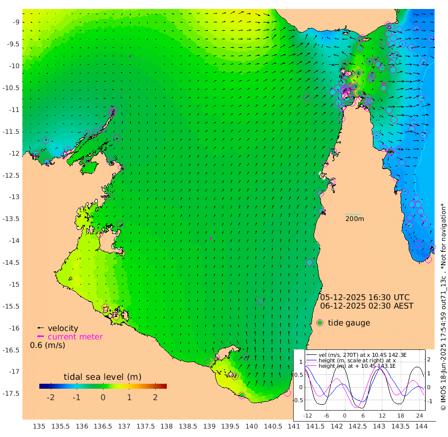 13cm/s 3T +3cm/s rms + 7cm/s -42T. ARA-GOC87 57m 28cm/s 17T +3cm/s rms + 2cm/s -2T. ARA-GOC87 60m 11cm/s 16T +2cm/s rms + 3cm/s 61T. ARA-GOC87 47m -82cm Daru -88cm Bobo Island -108cm Meer Island Barge -113cm Bramble Cay -100cm Unnamed Cay -104cm Pearce Cay -108cm Stephens Island -101cm Merrie England Shoals -82cm Mutacomal Reef -102cm Darnley Island Barge -120cm East Cay -86cm Yorke Island Barge -94cm Rennel Island -88cm Aureed Island -82cm Dungeness Reef -39cm Zagai Island -45cm Yam Island -37cm Dauan Island -18cm Saibai Island -64cm Phipi Reef -52cm Warrior Reef - West -18cm Mabuiag Island Barge -86cm Half Way Island -76cm Coconut Island -79cm Dugong Islet -56cm Poll Island -65cm Kirkcaldie Reef -48cm Suarji Island -40cm Sue Islet -86cm Hawkesbury Island -48cm Alert Patches -45cm Twin Island -79cm Badu Island -32cm St Pauls (Moa Island) -76cm Kubin (Moa Island) -46cm Ince Point -50cm Thursday Island -49cm Nardana Patches -80cm Turtle Head -81cm Round Island -100cm Goods Island -91cm Booby Island -91cm White Rocks Area -38cm Carpentaria -35cm Papou Point -106cm Bampfield Head -72cm Crab Island -84cm Red Wallis Island -93cm Packe Island -77cm Harrington Reef -103cm Herald Camp 7cm Sharp Point -66cm Red Island Point -57cm Possession Island -29cm Alpha Rock -57cm Frederick Point -73cm Wyborn Reef Light -64cm Tetley Island -93cm Triangle Reef -81cm Turtle Head Island -108cm Maclennan Cay -111cm Raine Island -94cm Mcsweeny Reef -97cm Collette Reef -101cm Shadwell Reef -108cm Hannibal Island -119cm Round Point -47cm Vrilya Point -110cm Cape Grenville -116cm Hicks Island -126cm Sir Charles Hardy Island -34cm Harvey Island -117cm Kay Reef -116cm Rocky Island -118cm Chapman Island -109cm Ham Reef -110cm Jubilee Reef -102cm Night Island -112cm Unnamed Reef No. 3 -120cm Morris Island -116cm 1st 3 Mile Opening -116cm Creech Reef -112cm Fife Island -140cm Eden Reef -119cm Stanley Island -127cm Normanby River -83cm Yabooma Island -114cm Hutchison River -81cm Elcho Island -72cm North West Crocodile Island -32cm Cape Wessel -54cm Stevens Island -51cm Guluwuru Island -59cm Hopeful Bay -43cm Auster Point -38cm Two Island Bay -77cm Cadell Strait -15cm Mallison Island -44cm Melville Bay (Gove Harbour) -42cm Truant Island -24cm Cape Arnhem -1cm Cape Grey 5cm Hawk Island 49cm Milner Bay (Groote Eylandt) 40cm Cape Beatrice 78cm West Island 76cm Centre Island 3cm Mornington Island 10cm West Wellesley Islands -20cm Bountiful Island 0cm Albert River Mouth 30cm Sweers Island -10cm Karumba -49cm Nassau River Offshore -80cm Christmas Creek -82cm Archer River -71cm Boyd Point -94cm Weipa (Humbug Point) -42cm Pennefather River -59cm Cullen Point