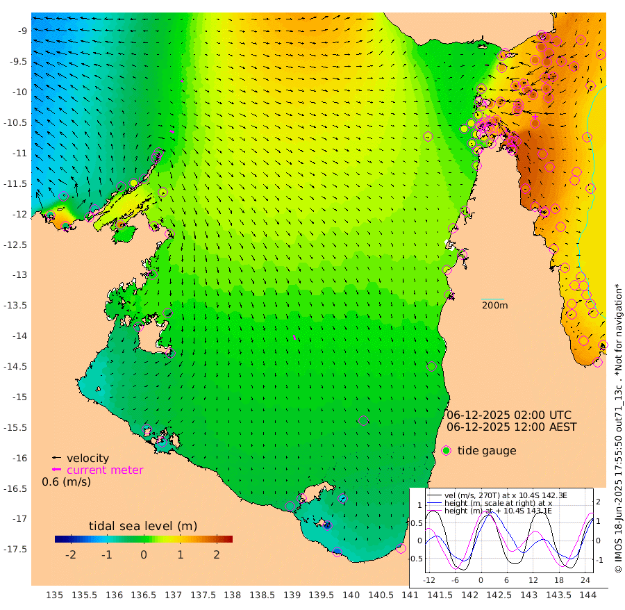 29cm/s 114T +3cm/s rms + 7cm/s -42T. ARA-GOC87 57m 32cm/s 162T +3cm/s rms + 2cm/s -2T. ARA-GOC87 60m 16cm/s 110T +2cm/s rms + 3cm/s 61T. ARA-GOC87 47m 186cm Daru 184cm Bobo Island 117cm Meer Island Barge 143cm Bramble Cay 174cm Unnamed Cay 182cm Pearce Cay 169cm Stephens Island 171cm Merrie England Shoals 184cm Mutacomal Reef 161cm Darnley Island Barge 122cm East Cay 174cm Yorke Island Barge 177cm Rennel Island 178cm Aureed Island 181cm Dungeness Reef 164cm Zagai Island 161cm Yam Island 129cm Dauan Island 120cm Saibai Island 136cm Phipi Reef 168cm Warrior Reef - West 100cm Mabuiag Island Barge 177cm Half Way Island 183cm Coconut Island 186cm Dugong Islet 173cm Poll Island 177cm Kirkcaldie Reef 164cm Suarji Island 167cm Sue Islet 81cm Hawkesbury Island 157cm Alert Patches 162cm Twin Island 88cm Badu Island 159cm St Pauls (Moa Island) 104cm Kubin (Moa Island) 133cm Ince Point 120cm Thursday Island 123cm Nardana Patches 108cm Turtle Head 85cm Round Island 80cm Goods Island 59cm Booby Island 63cm White Rocks Area 49cm Carpentaria 139cm Papou Point 78cm Bampfield Head 46cm Crab Island 62cm Red Wallis Island 96cm Packe Island 196cm Harrington Reef 75cm Herald Camp 41cm Sharp Point 88cm Red Island Point 124cm Possession Island 149cm Alpha Rock 175cm Frederick Point 186cm Wyborn Reef Light 184cm Tetley Island 114cm Triangle Reef 198cm Turtle Head Island 117cm Maclennan Cay 86cm Raine Island 166cm Mcsweeny Reef 153cm Collette Reef 114cm Shadwell Reef 164cm Hannibal Island 146cm Round Point 40cm Vrilya Point 132cm Cape Grenville 126cm Hicks Island 132cm Sir Charles Hardy Island 42cm Harvey Island 115cm Kay Reef 98cm Rocky Island 91cm Chapman Island 87cm Ham Reef 98cm Jubilee Reef 94cm Night Island 91cm Unnamed Reef No. 3 102cm Morris Island 99cm 1st 3 Mile Opening 101cm Creech Reef 99cm Fife Island 109cm Eden Reef 103cm Stanley Island 109cm Normanby River -65cm Yabooma Island -47cm Hutchison River -68cm Elcho Island -76cm North West Crocodile Island 4cm Cape Wessel -37cm Stevens Island 64cm Guluwuru Island -48cm Hopeful Bay -12cm Auster Point -15cm Two Island Bay 3cm Cadell Strait 164cm Mallison Island 35cm Melville Bay (Gove Harbour) 46cm Truant Island 34cm Cape Arnhem 3cm Cape Grey -14cm Hawk Island -59cm Milner Bay (Groote Eylandt) -59cm Cape Beatrice -86cm West Island -84cm Centre Island -66cm Mornington Island -62cm West Wellesley Islands -100cm Bountiful Island -150cm Albert River Mouth -174cm Sweers Island -143cm Karumba -27cm Nassau River Offshore 21cm Christmas Creek 30cm Archer River 45cm Boyd Point 35cm Weipa (Humbug Point) 37cm Pennefather River 36cm Cullen Point