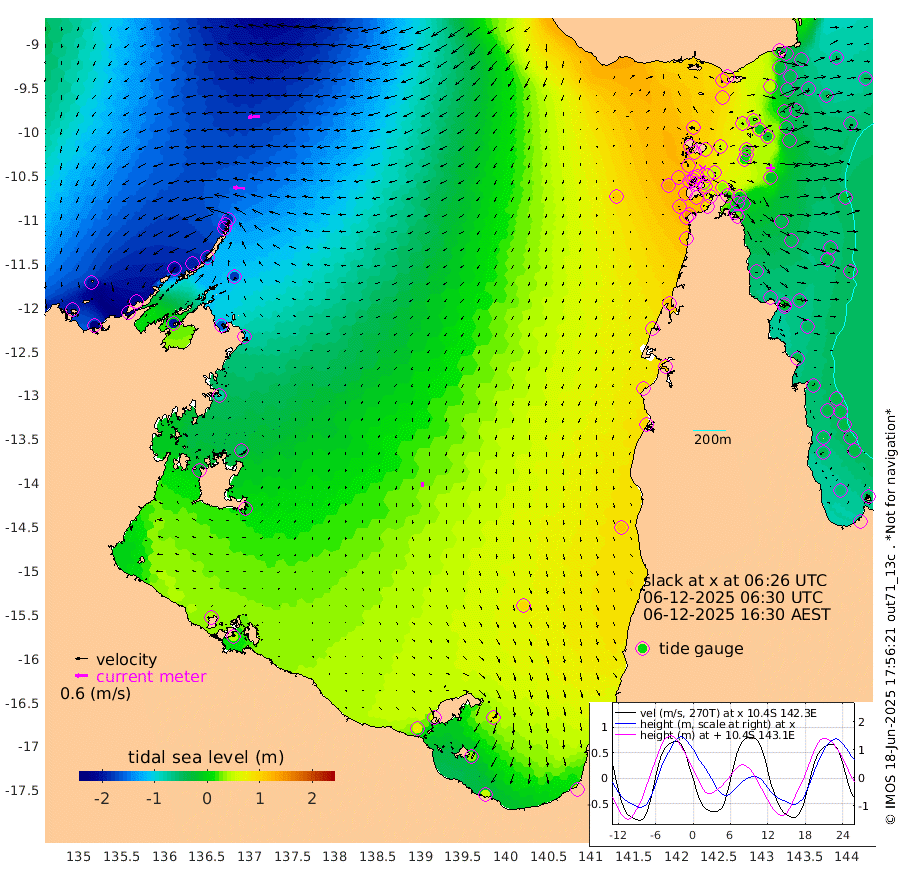 54cm/s -86T +3cm/s rms + 7cm/s -42T. ARA-GOC87 57m 21cm/s -176T +3cm/s rms + 2cm/s -2T. ARA-GOC87 60m 60cm/s -95T +2cm/s rms + 3cm/s 61T. ARA-GOC87 47m -25cm Daru -50cm Bobo Island -47cm Meer Island Barge -57cm Bramble Cay -44cm Unnamed Cay -58cm Pearce Cay -53cm Stephens Island -51cm Merrie England Shoals -28cm Mutacomal Reef -51cm Darnley Island Barge -49cm East Cay -40cm Yorke Island Barge -32cm Rennel Island -38cm Aureed Island -7cm Dungeness Reef 27cm Zagai Island 40cm Yam Island 104cm Dauan Island 94cm Saibai Island 97cm Phipi Reef 47cm Warrior Reef - West 93cm Mabuiag Island Barge -37cm Half Way Island -17cm Coconut Island -22cm Dugong Islet 10cm Poll Island 14cm Kirkcaldie Reef 53cm Suarji Island 17cm Sue Islet 112cm Hawkesbury Island 61cm Alert Patches 47cm Twin Island 113cm Badu Island 61cm St Pauls (Moa Island) 94cm Kubin (Moa Island) 76cm Ince Point 89cm Thursday Island 87cm Nardana Patches 105cm Turtle Head 106cm Round Island 115cm Goods Island 131cm Booby Island 117cm White Rocks Area 112cm Carpentaria 42cm Papou Point 127cm Bampfield Head 115cm Crab Island 126cm Red Wallis Island 111cm Packe Island -26cm Harrington Reef 143cm Herald Camp 26cm Sharp Point 87cm Red Island Point 67cm Possession Island 35cm Alpha Rock 16cm Frederick Point -30cm Wyborn Reef Light -20cm Tetley Island -29cm Triangle Reef -46cm Turtle Head Island -33cm Maclennan Cay -32cm Raine Island -40cm Mcsweeny Reef -39cm Collette Reef -32cm Shadwell Reef -52cm Hannibal Island -57cm Round Point 108cm Vrilya Point -43cm Cape Grenville -44cm Hicks Island -31cm Sir Charles Hardy Island -13cm Harvey Island -45cm Kay Reef -36cm Rocky Island -33cm Chapman Island -32cm Ham Reef -37cm Jubilee Reef -32cm Night Island -32cm Unnamed Reef No. 3 -42cm Morris Island -31cm 1st 3 Mile Opening -35cm Creech Reef -40cm Fife Island -59cm Eden Reef -41cm Stanley Island -59cm Normanby River -201cm Yabooma Island -250cm Hutchison River -215cm Elcho Island -201cm North West Crocodile Island -182cm Cape Wessel -216cm Stevens Island -188cm Guluwuru Island -188cm Hopeful Bay -186cm Auster Point -196cm Two Island Bay -251cm Cadell Strait -198cm Mallison Island -162cm Melville Bay (Gove Harbour) -174cm Truant Island -111cm Cape Arnhem -75cm Cape Grey -55cm Hawk Island -25cm Milner Bay (Groote Eylandt) -6cm Cape Beatrice 44cm West Island 45cm Centre Island 67cm Mornington Island 69cm West Wellesley Islands 80cm Bountiful Island 50cm Albert River Mouth 35cm Sweers Island 70cm Karumba 94cm Nassau River Offshore 108cm Christmas Creek 95cm Archer River 94cm Boyd Point 107cm Weipa (Humbug Point) 79cm Pennefather River 115cm Cullen Point