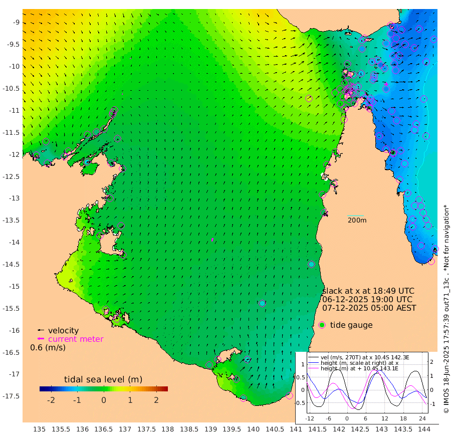 5cm/s -53T +3cm/s rms + 7cm/s -42T. ARA-GOC87 57m 33cm/s 15T +3cm/s rms + 2cm/s -2T. ARA-GOC87 60m 4cm/s 162T +2cm/s rms + 3cm/s 61T. ARA-GOC87 47m -147cm Daru -149cm Bobo Island -111cm Meer Island Barge -134cm Bramble Cay -145cm Unnamed Cay -154cm Pearce Cay -144cm Stephens Island -142cm Merrie England Shoals -145cm Mutacomal Reef -137cm Darnley Island Barge -121cm East Cay -139cm Yorke Island Barge -142cm Rennel Island -146cm Aureed Island -144cm Dungeness Reef -114cm Zagai Island -114cm Yam Island -99cm Dauan Island -80cm Saibai Island -128cm Phipi Reef -132cm Warrior Reef - West -44cm Mabuiag Island Barge -138cm Half Way Island -134cm Coconut Island -141cm Dugong Islet -122cm Poll Island -125cm Kirkcaldie Reef -112cm Suarji Island -108cm Sue Islet -19cm Hawkesbury Island -90cm Alert Patches -95cm Twin Island -32cm Badu Island -90cm St Pauls (Moa Island) -47cm Kubin (Moa Island) -68cm Ince Point -53cm Thursday Island -58cm Nardana Patches -55cm Turtle Head -31cm Round Island -28cm Goods Island 9cm Booby Island -2cm White Rocks Area 55cm Carpentaria -74cm Papou Point 8cm Bampfield Head 16cm Crab Island 2cm Red Wallis Island -47cm Packe Island -141cm Harrington Reef -26cm Herald Camp -21cm Sharp Point -40cm Red Island Point -62cm Possession Island -83cm Alpha Rock -113cm Frederick Point -133cm Wyborn Reef Light -126cm Tetley Island -103cm Triangle Reef -131cm Turtle Head Island -109cm Maclennan Cay -90cm Raine Island -134cm Mcsweeny Reef -129cm Collette Reef -106cm Shadwell Reef -142cm Hannibal Island -135cm Round Point 37cm Vrilya Point -122cm Cape Grenville -121cm Hicks Island -129cm Sir Charles Hardy Island -38cm Harvey Island -112cm Kay Reef -104cm Rocky Island -100cm Chapman Island -90cm Ham Reef -98cm Jubilee Reef -96cm Night Island -93cm Unnamed Reef No. 3 -106cm Morris Island -97cm 1st 3 Mile Opening -102cm Creech Reef -103cm Fife Island -121cm Eden Reef -105cm Stanley Island -117cm Normanby River -5cm Yabooma Island -31cm Hutchison River -4cm Elcho Island -1cm North West Crocodile Island -5cm Cape Wessel -5cm Stevens Island -55cm Guluwuru Island -5cm Hopeful Bay -3cm Auster Point -3cm Two Island Bay -45cm Cadell Strait -98cm Mallison Island -42cm Melville Bay (Gove Harbour) -38cm Truant Island -31cm Cape Arnhem -15cm Cape Grey -17cm Hawk Island 20cm Milner Bay (Groote Eylandt) 8cm Cape Beatrice 30cm West Island 31cm Centre Island -60cm Mornington Island -57cm West Wellesley Islands -88cm Bountiful Island -74cm Albert River Mouth -51cm Sweers Island -79cm Karumba -93cm Nassau River Offshore -95cm Christmas Creek -49cm Archer River -28cm Boyd Point -41cm Weipa (Humbug Point) 10cm Pennefather River 13cm Cullen Point