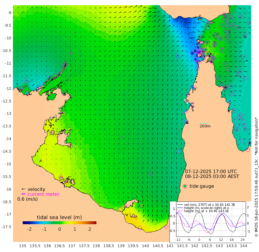 22cm/s 18T +3cm/s rms + 7cm/s -42T. ARA-GOC87 57m 31cm/s 10T +3cm/s rms + 2cm/s -2T. ARA-GOC87 60m 24cm/s 26T +2cm/s rms + 3cm/s 61T. ARA-GOC87 47m -37cm Daru -37cm Bobo Island -61cm Meer Island Barge -61cm Bramble Cay -47cm Unnamed Cay -53cm Pearce Cay -51cm Stephens Island -48cm Merrie England Shoals -39cm Mutacomal Reef -46cm Darnley Island Barge -71cm East Cay -36cm Yorke Island Barge -47cm Rennel Island -37cm Aureed Island -47cm Dungeness Reef -26cm Zagai Island -40cm Yam Island -64cm Dauan Island -45cm Saibai Island -77cm Phipi Reef -43cm Warrior Reef - West -60cm Mabuiag Island Barge -40cm Half Way Island -41cm Coconut Island -38cm Dugong Islet -36cm Poll Island -44cm Kirkcaldie Reef -42cm Suarji Island -24cm Sue Islet -171cm Hawkesbury Island -58cm Alert Patches -52cm Twin Island -156cm Badu Island -44cm St Pauls (Moa Island) -132cm Kubin (Moa Island) -75cm Ince Point -91cm Thursday Island -87cm Nardana Patches -131cm Turtle Head -138cm Round Island -174cm Goods Island -181cm Booby Island -174cm White Rocks Area -115cm Carpentaria -48cm Papou Point -179cm Bampfield Head -152cm Crab Island -172cm Red Wallis Island -157cm Packe Island -34cm Harrington Reef -174cm Herald Camp 3cm Sharp Point -120cm Red Island Point -77cm Possession Island -29cm Alpha Rock -43cm Frederick Point -33cm Wyborn Reef Light -32cm Tetley Island -60cm Triangle Reef -39cm Turtle Head Island -66cm Maclennan Cay -76cm Raine Island -43cm Mcsweeny Reef -47cm Collette Reef -60cm Shadwell Reef -51cm Hannibal Island -67cm Round Point -127cm Vrilya Point -62cm Cape Grenville -67cm Hicks Island -80cm Sir Charles Hardy Island -18cm Harvey Island -71cm Kay Reef -74cm Rocky Island -82cm Chapman Island -74cm Ham Reef -71cm Jubilee Reef -63cm Night Island -77cm Unnamed Reef No. 3 -76cm Morris Island -76cm 1st 3 Mile Opening -74cm Creech Reef -64cm Fife Island -89cm Eden Reef -74cm Stanley Island -76cm Normanby River -86cm Yabooma Island -104cm Hutchison River -78cm Elcho Island -76cm North West Crocodile Island -13cm Cape Wessel -44cm Stevens Island -7cm Guluwuru Island -48cm Hopeful Bay -26cm Auster Point -22cm Two Island Bay -54cm Cadell Strait 63cm Mallison Island -6cm Melville Bay (Gove Harbour) -4cm Truant Island 8cm Cape Arnhem 30cm Cape Grey 36cm Hawk Island 78cm Milner Bay (Groote Eylandt) 66cm Cape Beatrice 103cm West Island 100cm Centre Island 45cm Mornington Island 52cm West Wellesley Islands 29cm Bountiful Island 53cm Albert River Mouth 96cm Sweers Island 37cm Karumba -31cm Nassau River Offshore -80cm Christmas Creek -109cm Archer River -107cm Boyd Point -134cm Weipa (Humbug Point) -91cm Pennefather River -126cm Cullen Point